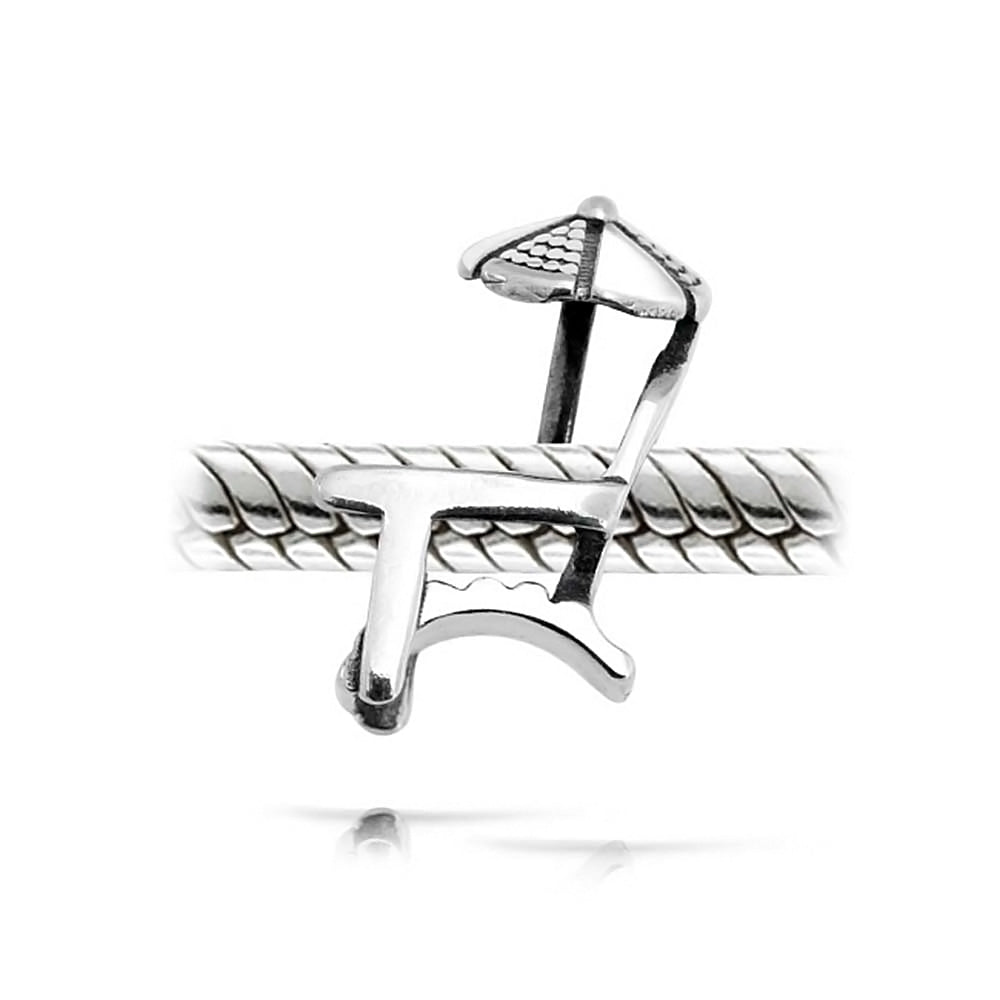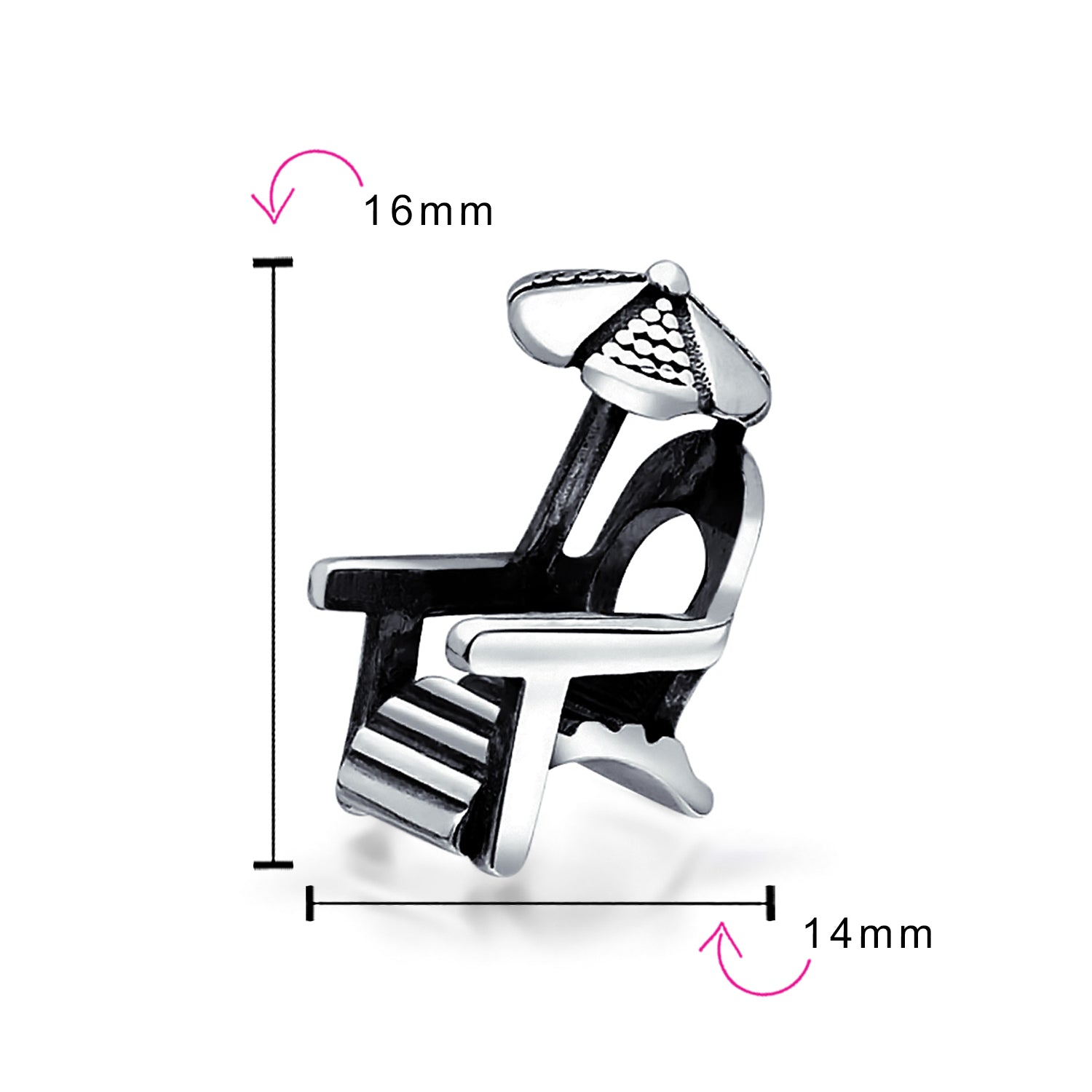 - Relax under a beach umbrella with our stylish sterling silver beach chair bead. Perfect for beach, travel, or summer-themed bracelets. Evoke vacation memories with this adorable bead. A fun addition to your sterling silver bead collection. Ideal gift for friends seeking an oxidized silver charm. Bead core measures 5mm.