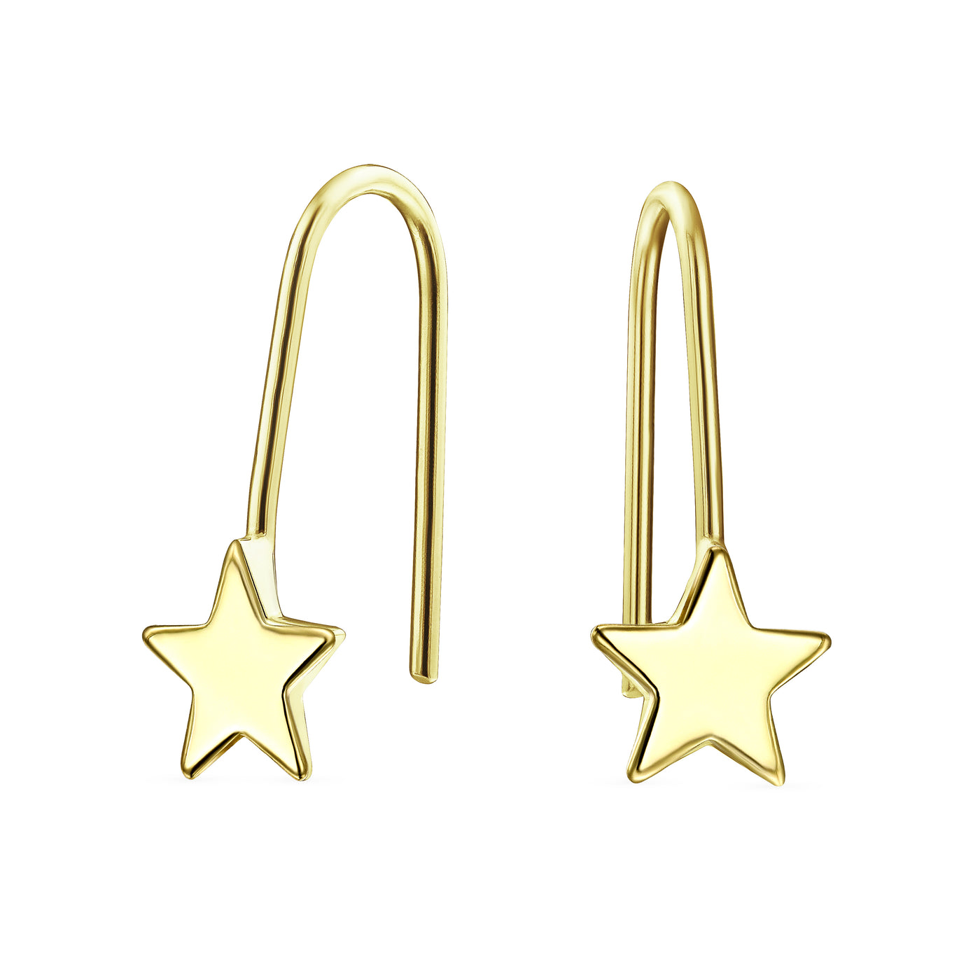 Minimalist Celestial Dangle Earrings North Star Threader in Sterling Silver - Bling Jewelry