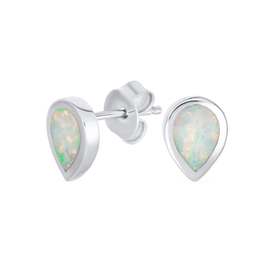 - Perfect for October birthdays with pierced ears these small bezel SET pear shape studs have beautiful created opal. They are subtle enough to match any outfit but gorgeous enough to stand out.