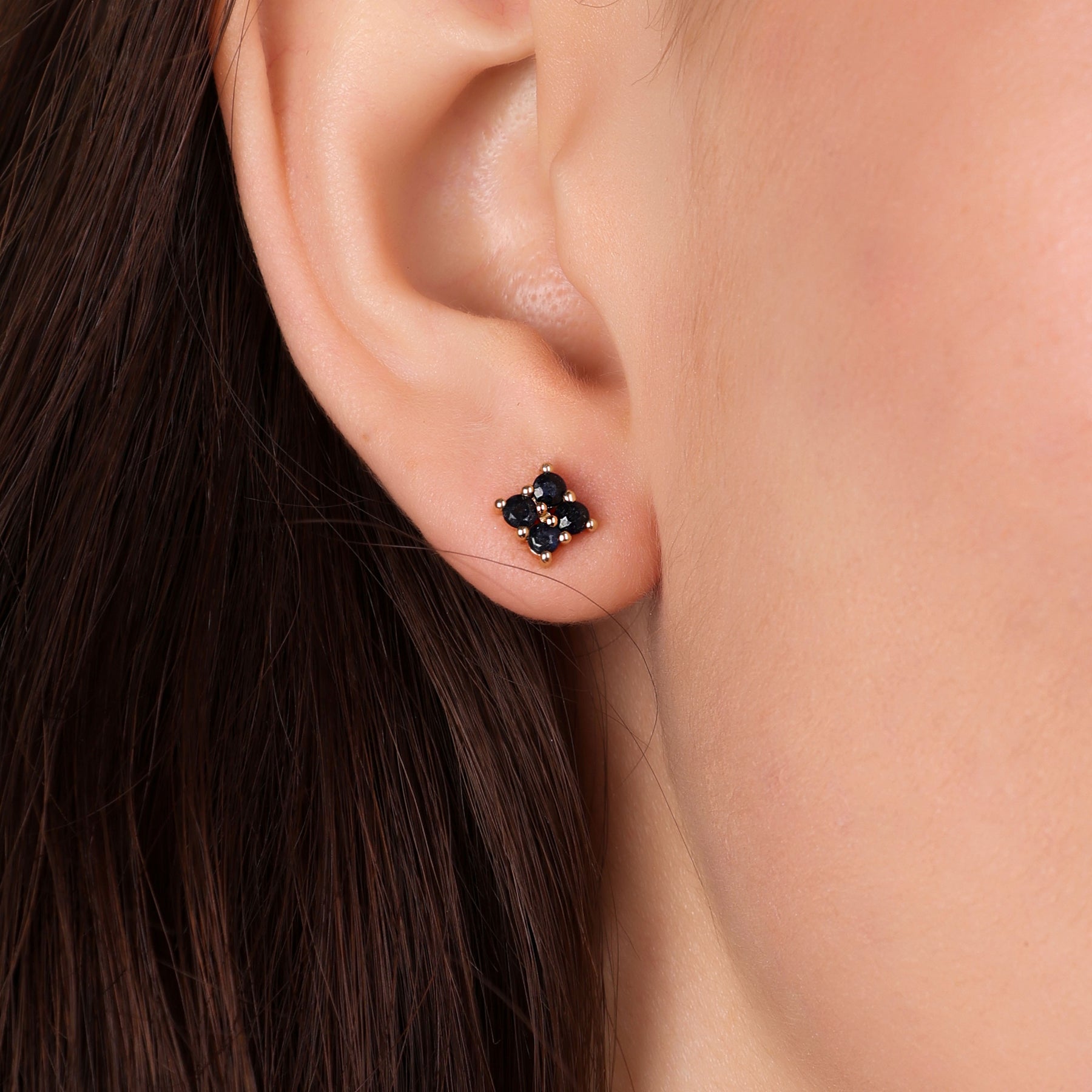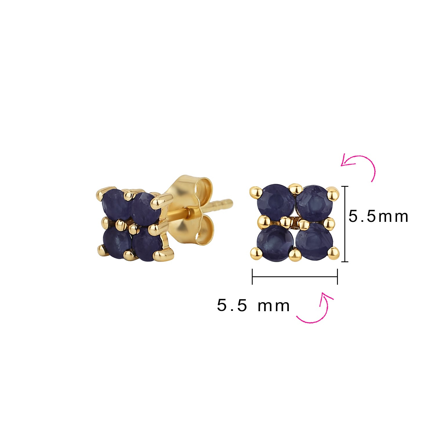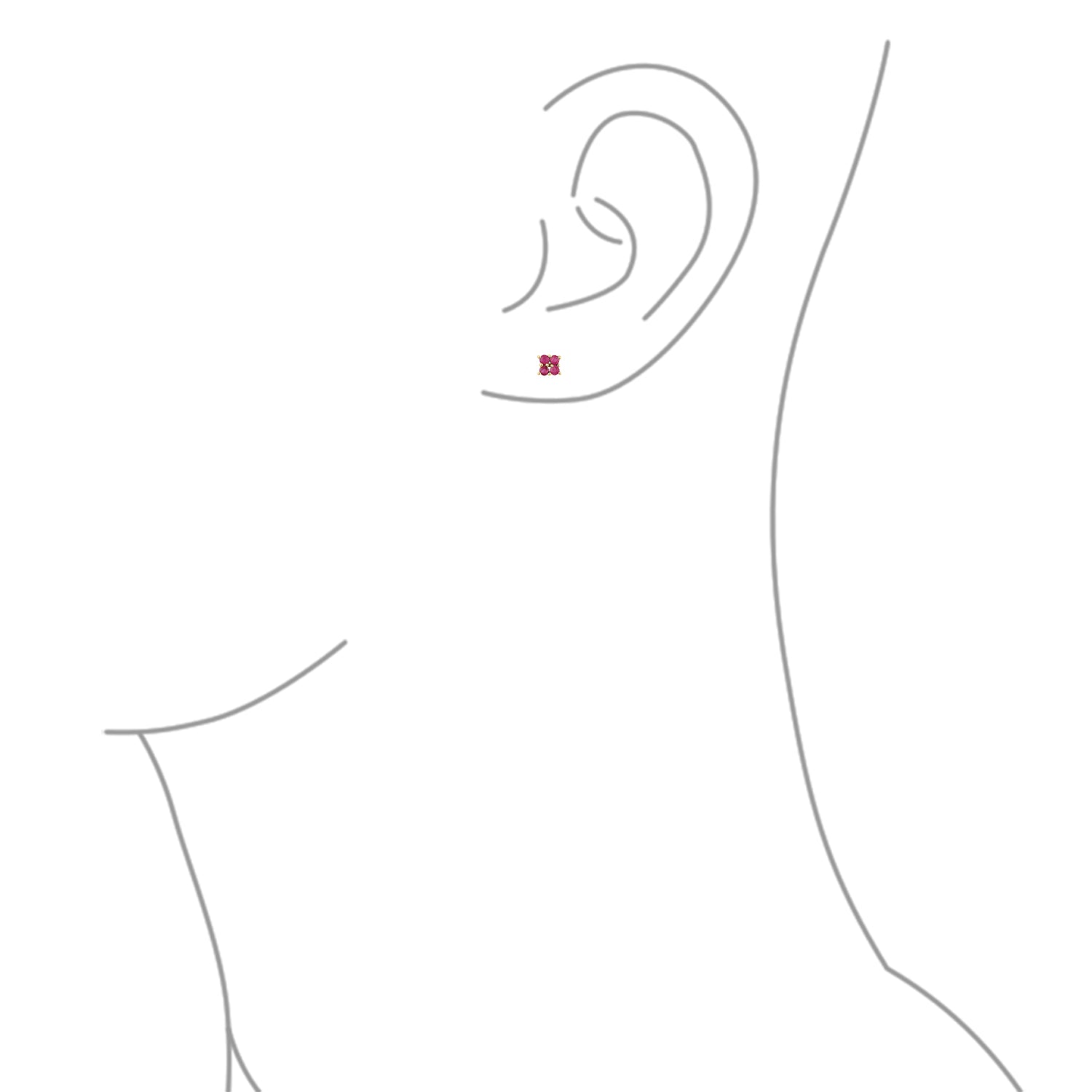 - These petite stud earrings showcase square stud earrings adorned with four Ruby gemstones. Rubies are considered a symbol of deep emotions and are commonly used in engagement rings and other romantic jewelry pieces. Ruby is also the birthstone for the month of July.