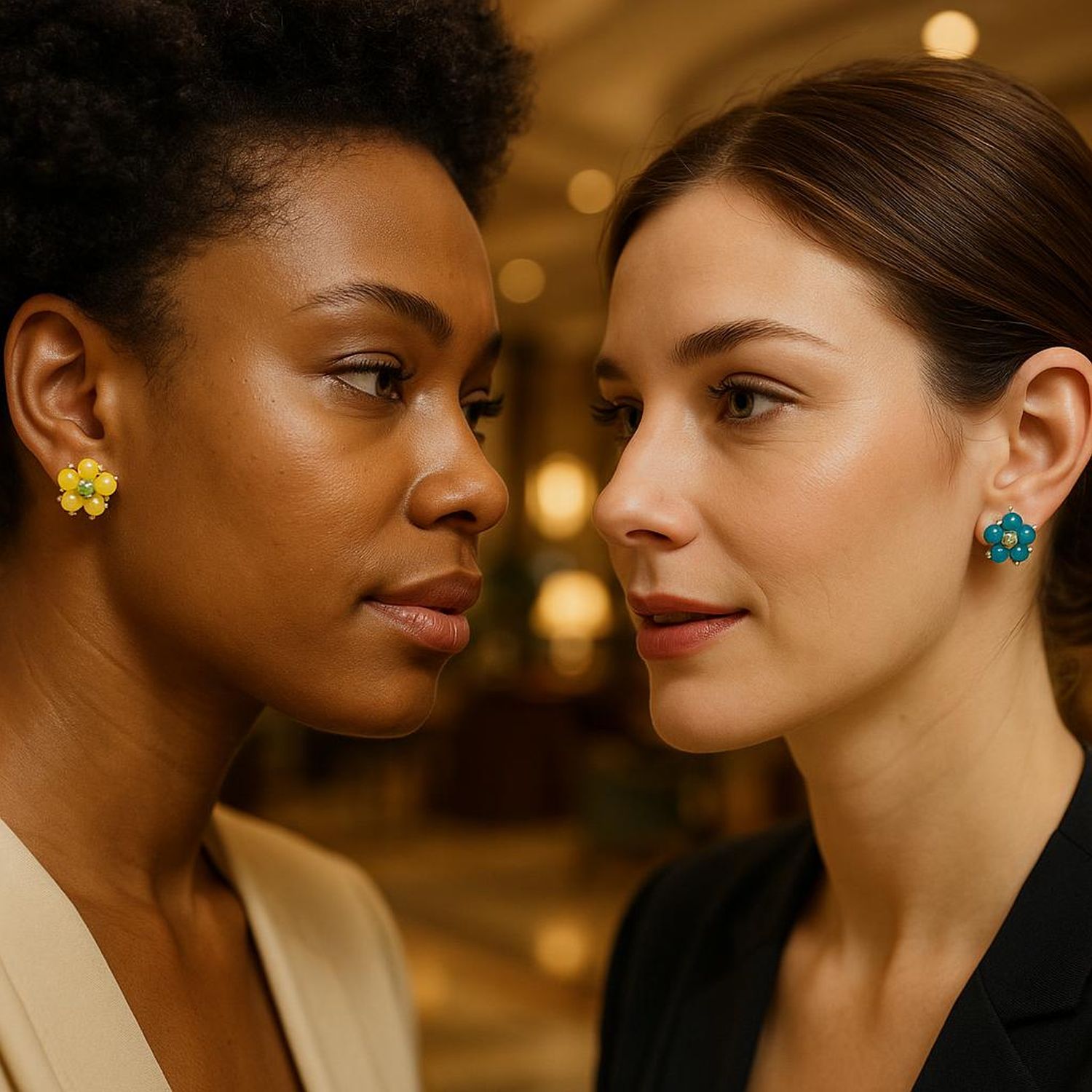 - Enhance your style with a touch of vibrant femininity with these elegant stud & clip-on earrings. Crafted with high-quality materials, these earrings are built to last and will effortlessly add a pop of color to any outfit.