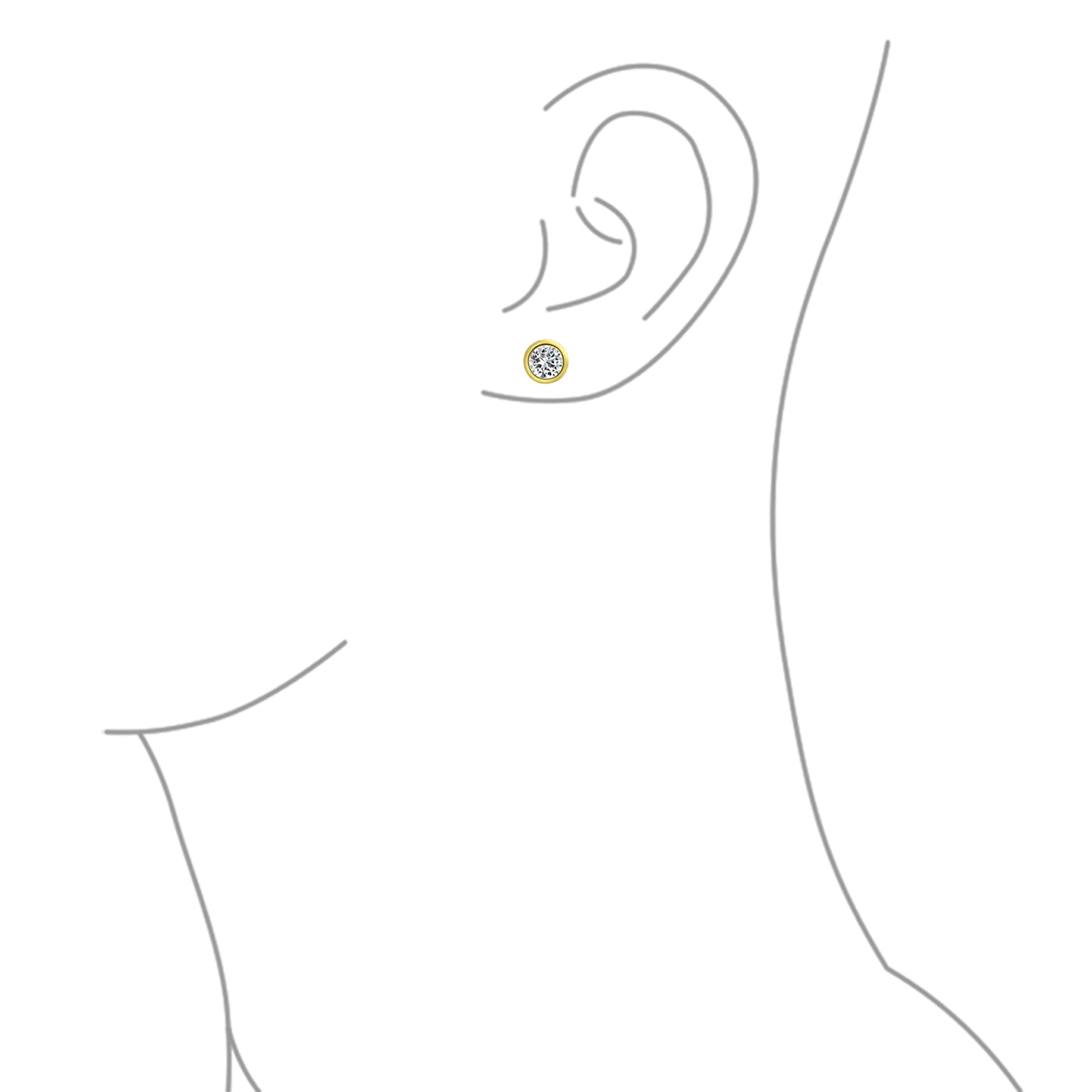 - Introducing our stunning bezel stud earrings, crafted with utmost precision from high-quality .925 sterling silver and elegantly gold plated for an exquisite touch. These earrings are designed to captivate, featuring clear round cz stones delicately set in a bezel setting. They effortlessly enhance any ensemble in your wardrobe, adding just the right amount of sparkle to make you stand out. Perfect for gifting, these chic and glamorous studs are sure to impress anyone on your list. Elevate your style with these timeless and versatile earrings.