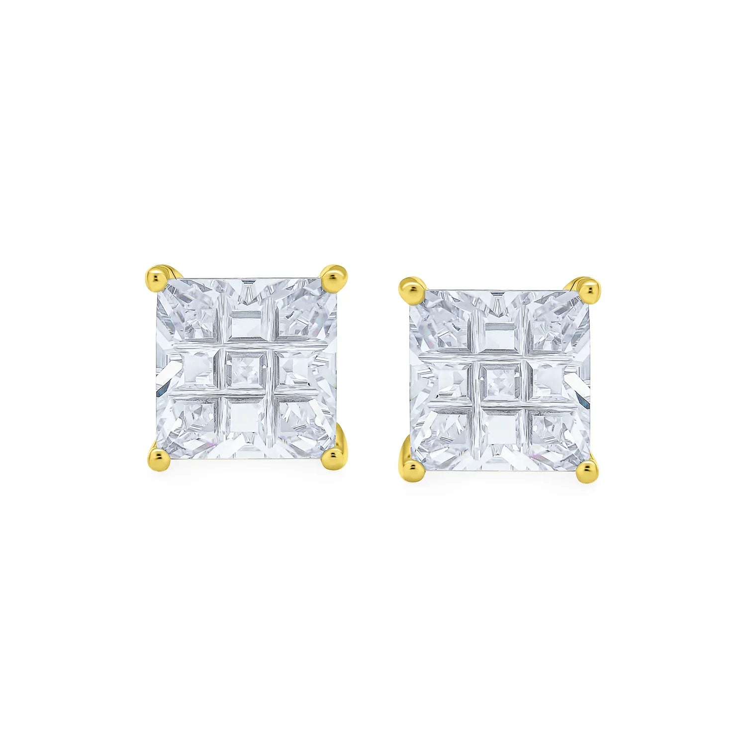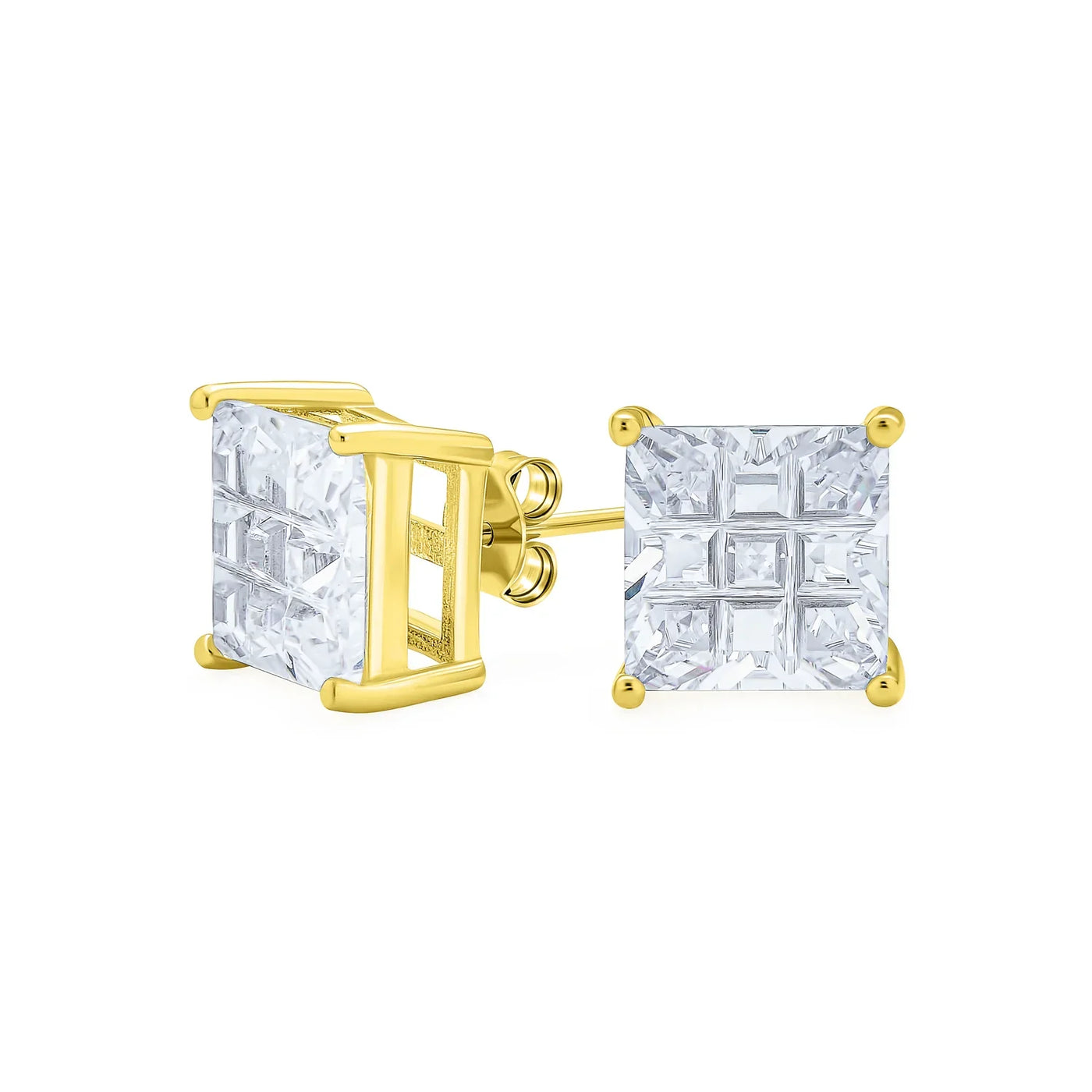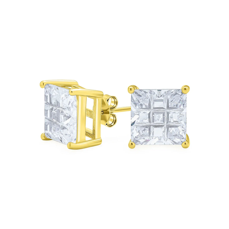 - Shine like a star when you wear our Gold Plated silver stud earrings. Introducing our unique checkerboard stone that boasts an invisible cut design, our finely crafted square studs will be your favorite pair of small stud earrings before long. Not every outfit calls for large jewelry. Sometimes just a hint of sparkle is all you need to look chic and stylish. A cubic zirconia earring makes a great gift for friends and family with pierced ears, especially if someone on your gift list wears April birthstone jewelry. Order yours today.