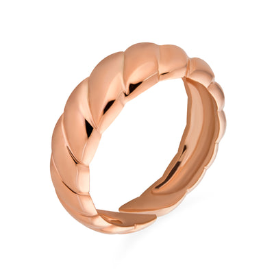 - This rose gold plated sterling silver Croissant ring features a braided design for added texture. Perfect for any outfit, from casual to formal. Ideal as a unique holiday or birthday gift. Add this stylish braided ring to your collection today.