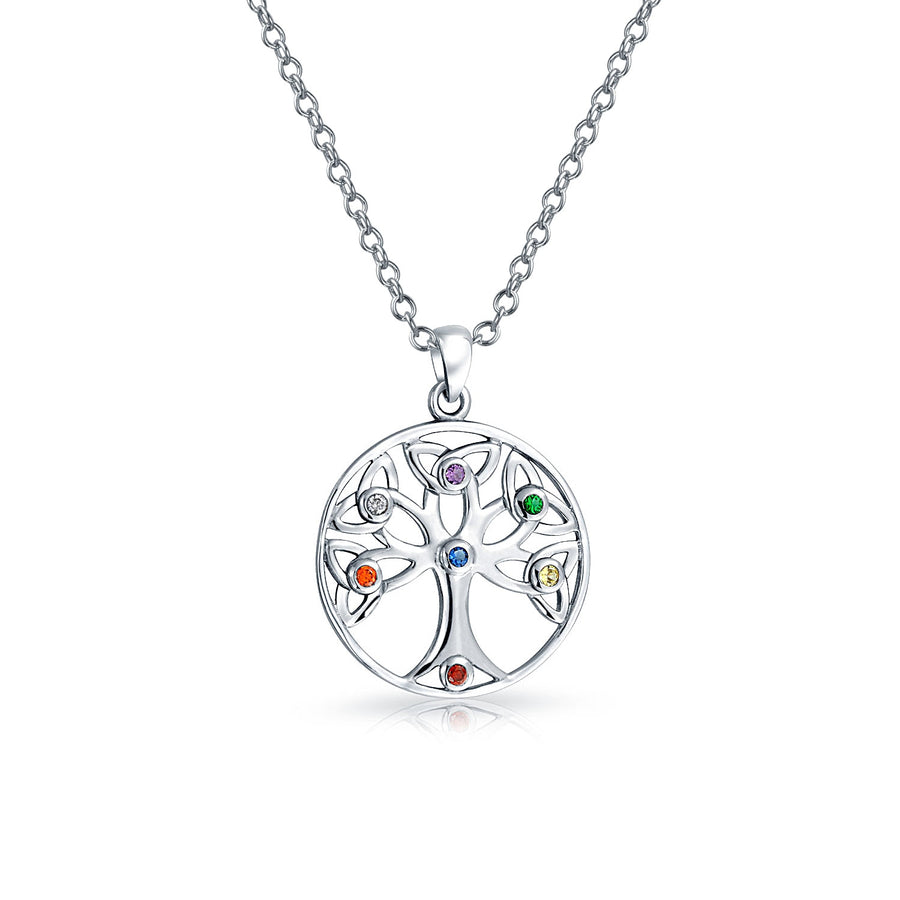 Circle Tree Of Life Pendant Celtic Knot CZ Necklace Sterling Silver