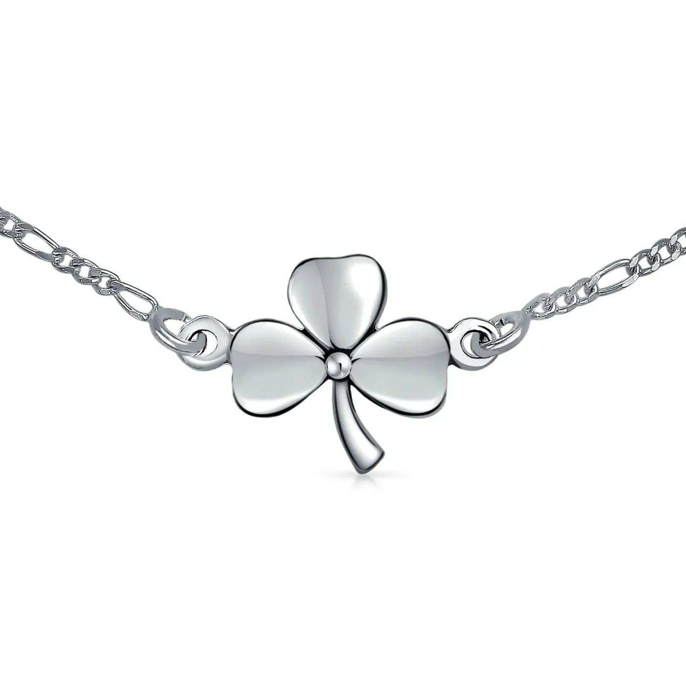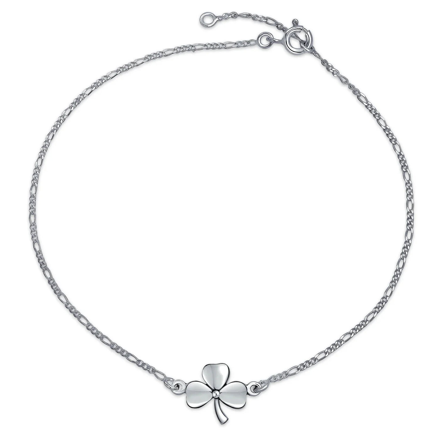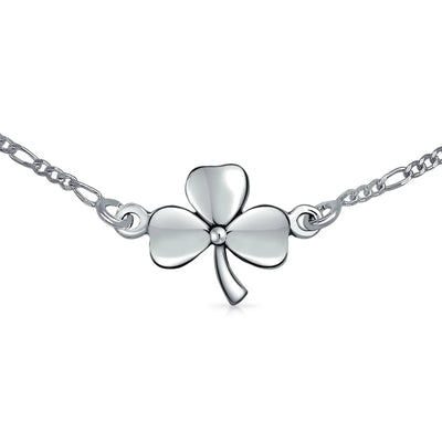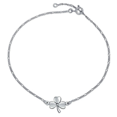- Today might be your lucky day with this clover shamrock anklet. Bring luck with this delicate .925 sterling silver piece. Unlike most clover jewelry, this unique anklet is crafted from quality materials. Perfect for any occasion, including St. Patrick's Day. Sterling silver clover Ankle Bracelets make the perfect gift for friends needing luck. Order your silver clover Ankle Bracelet today.