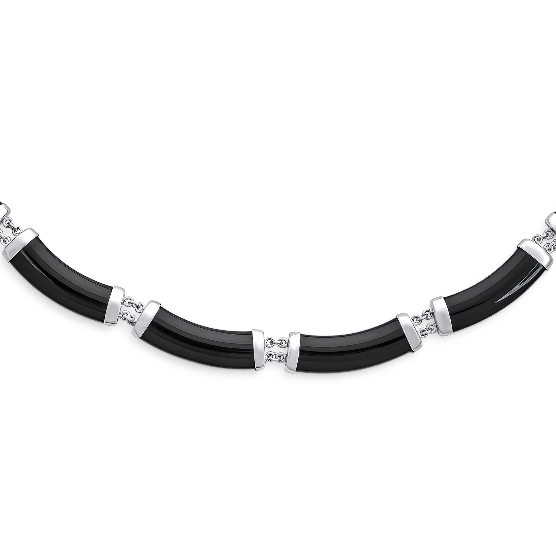 - Black Onyx is the anniversary gemstone for the 10th year of marriage. Onyx is a beloved gemstone. Channel positive energy and add instant polish to any ensemble with this divine, curved tube link station collar necklace featuring lusciously Onyx .925 silver caps on this strand of Onyx.