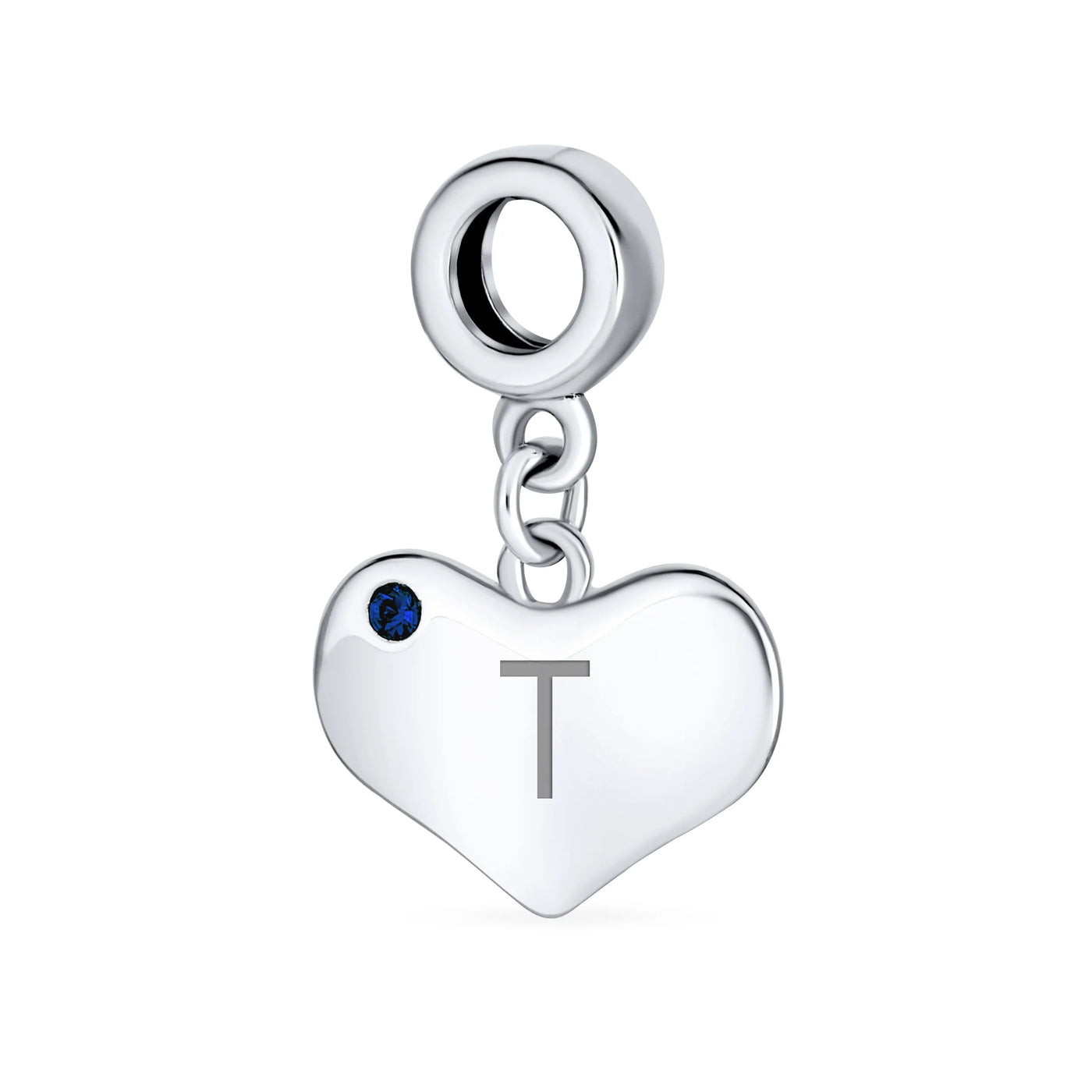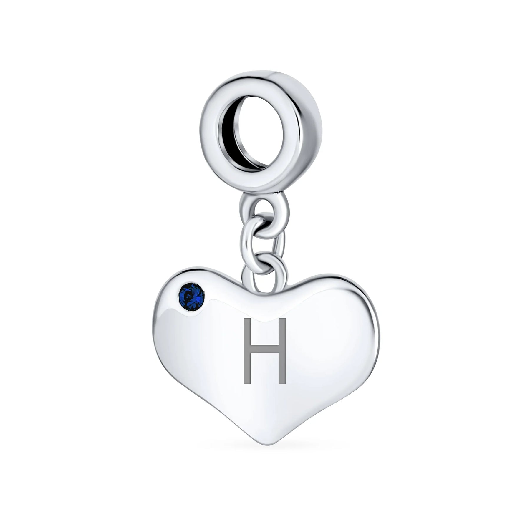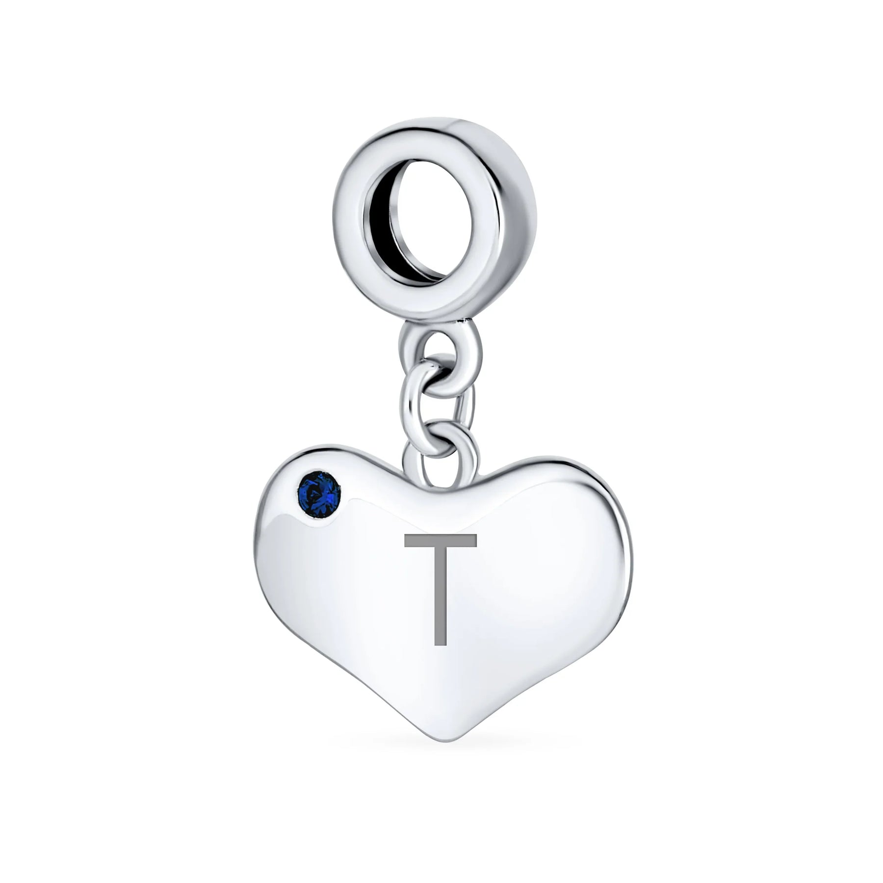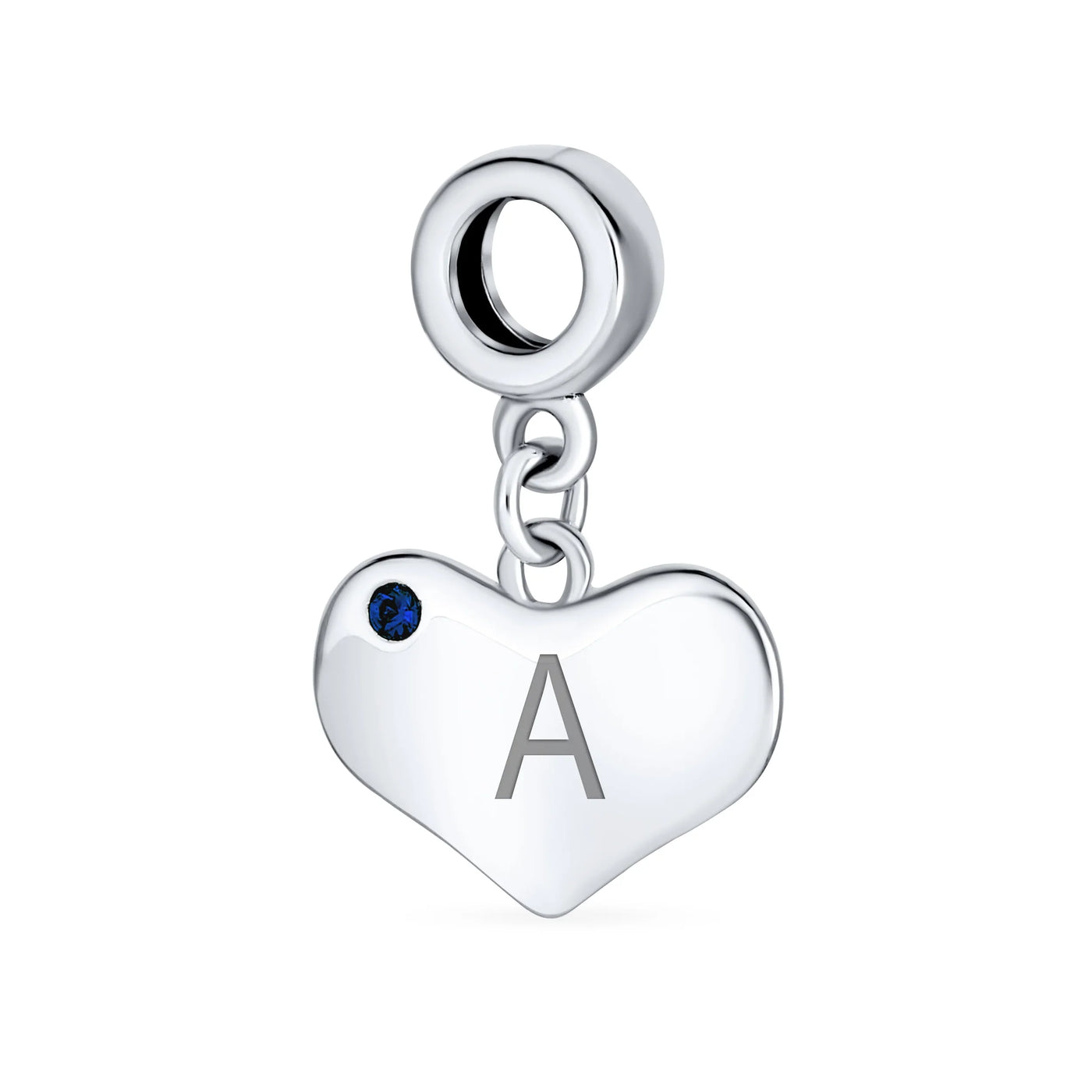 - This modest fashion heart shaped valentines charm hangs from a 4.5mm unthreaded core and holds a single, elegant blue simulated sapphire September birth month, perfect for bringing that unique something to your bead story.