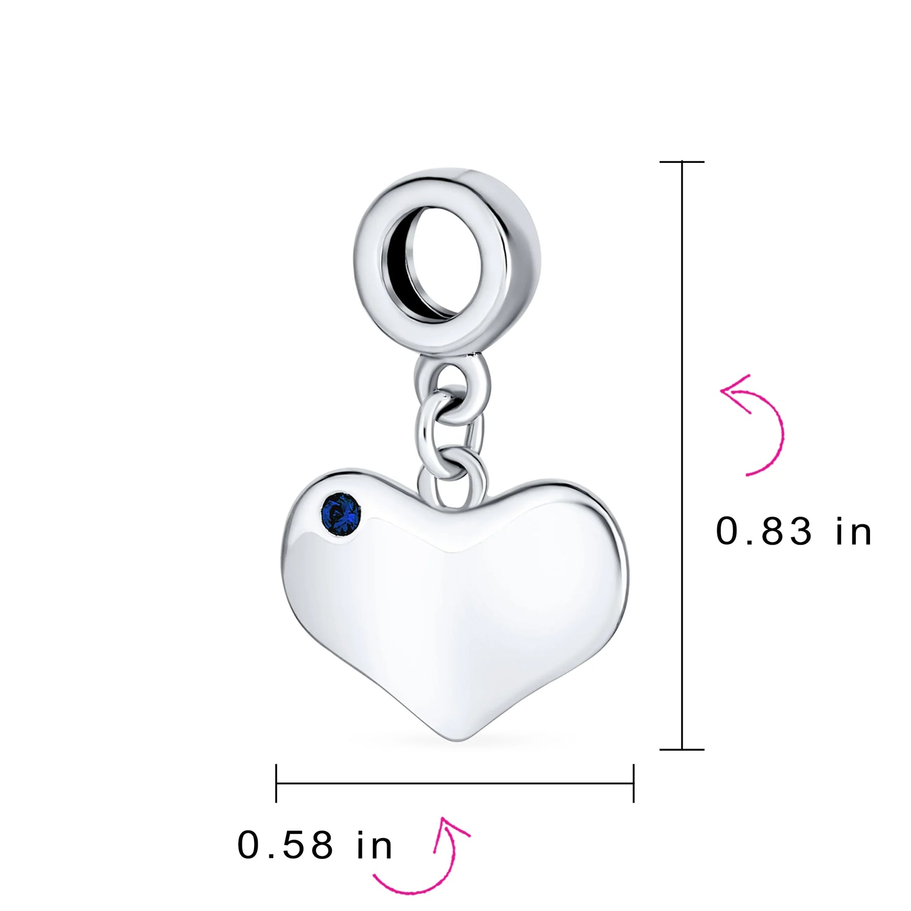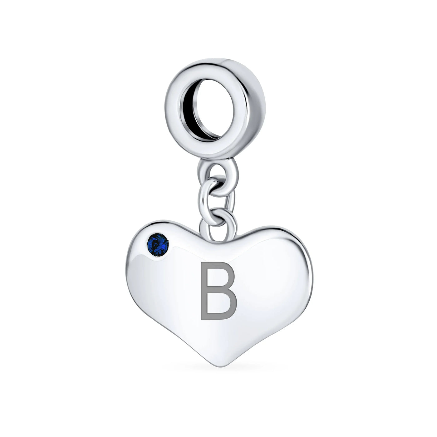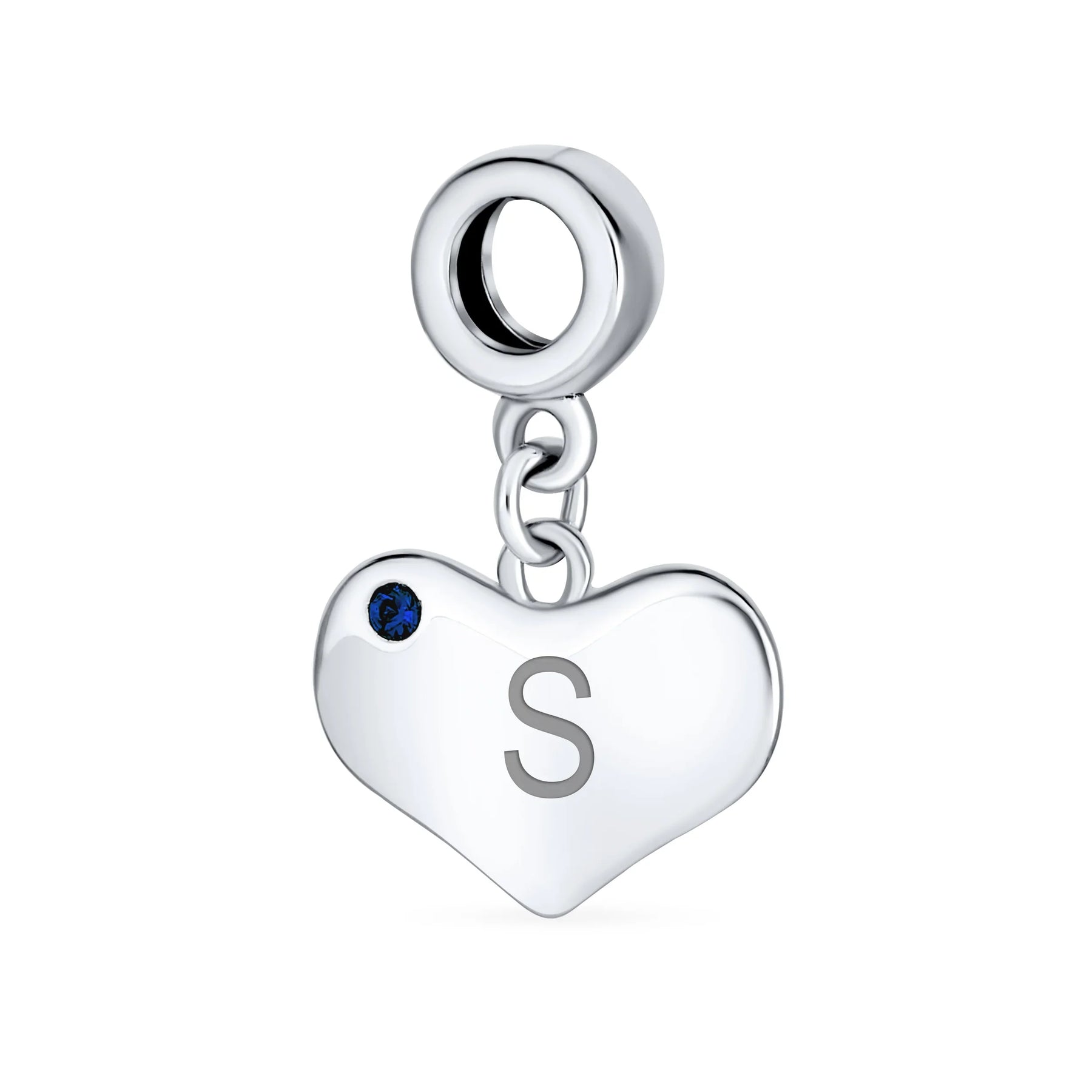 - This modest fashion heart shaped valentines charm hangs from a 4.5mm unthreaded core and holds a single, elegant blue simulated sapphire September birth month, perfect for bringing that unique something to your bead story.