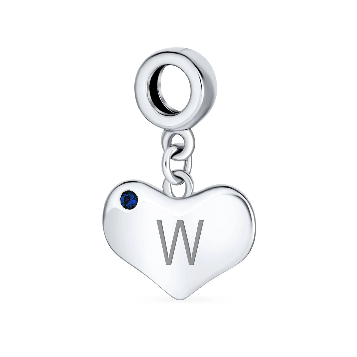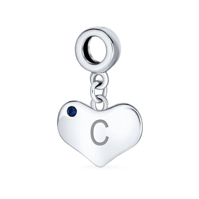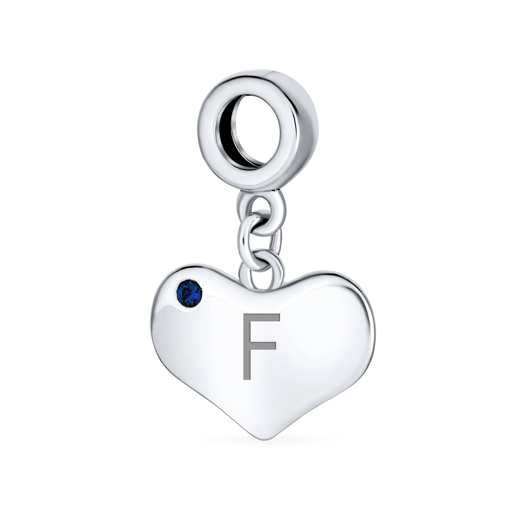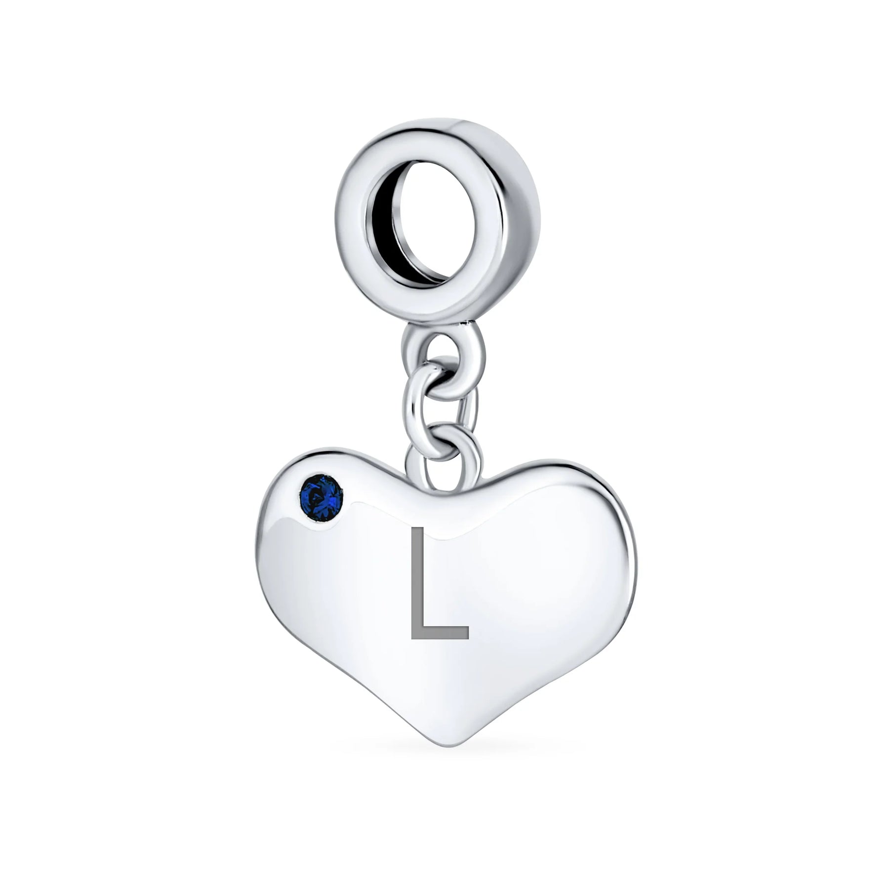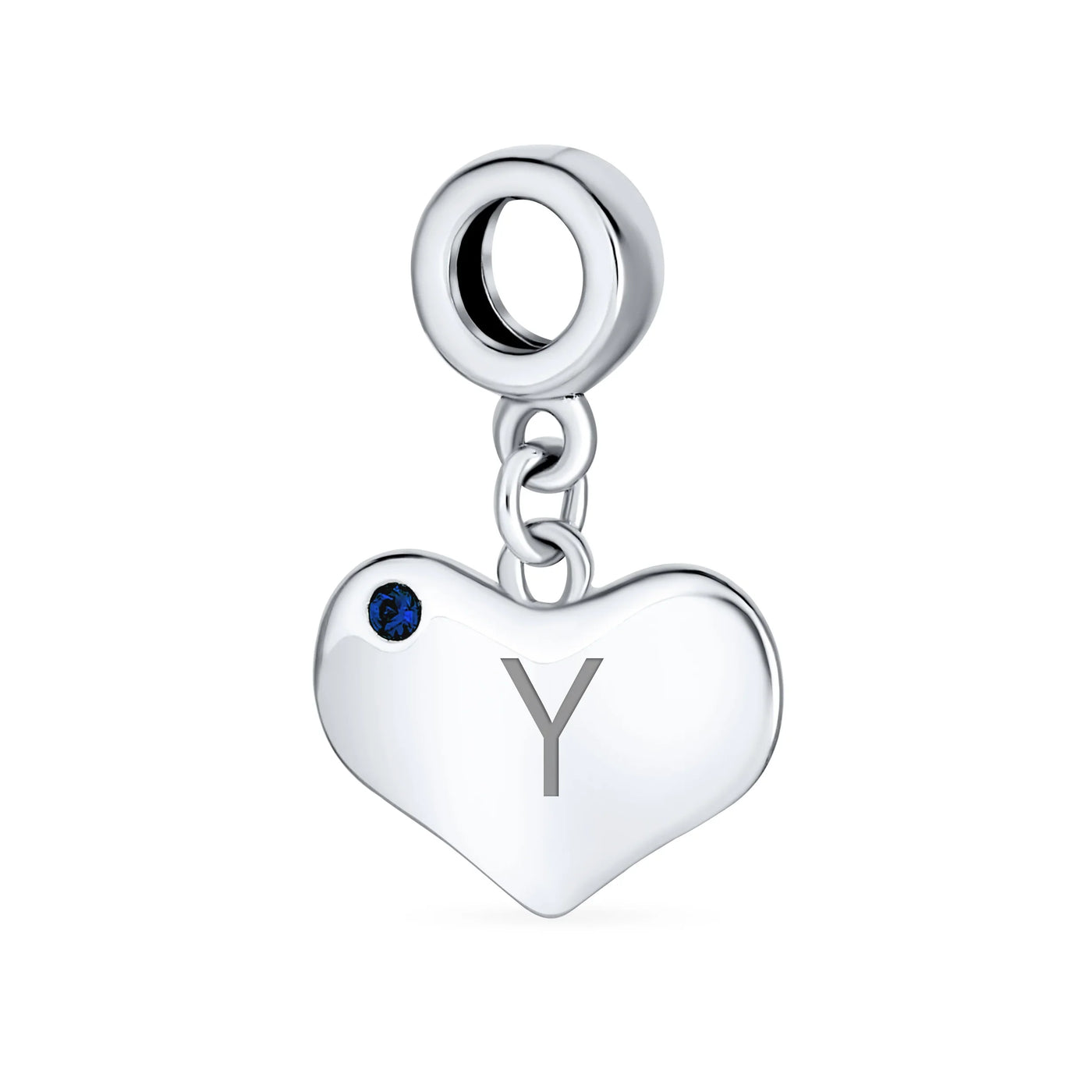 - This modest fashion heart shaped valentines charm hangs from a 4.5mm unthreaded core and holds a single, elegant blue simulated sapphire September birth month, perfect for bringing that unique something to your bead story.