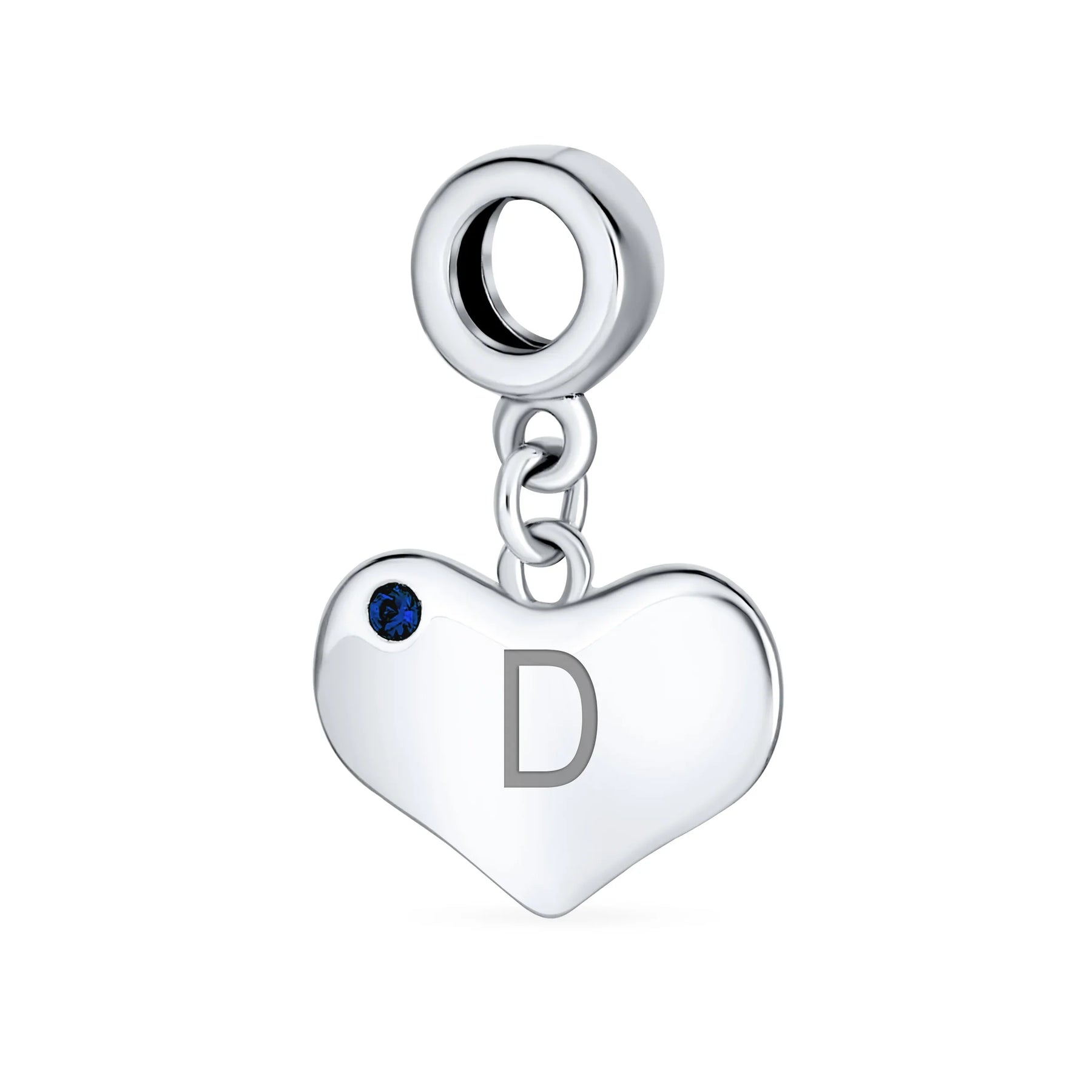 - Move your heart to your beads bracelet with this sterling silver dangle heart charm. Perfect for March birthdays, featuring a simulated Aquamarine crystal. Show your love with this stunning birthstone charm.