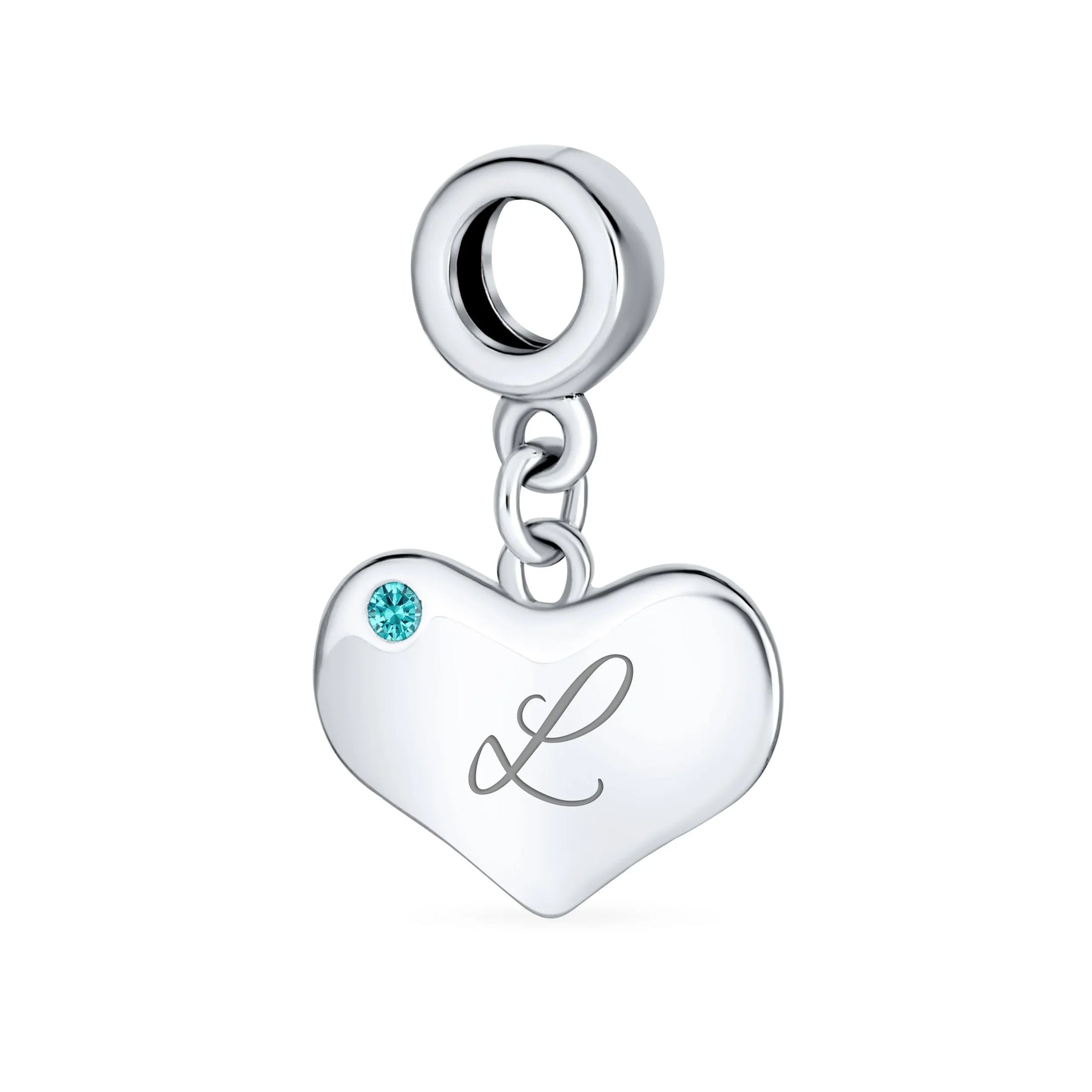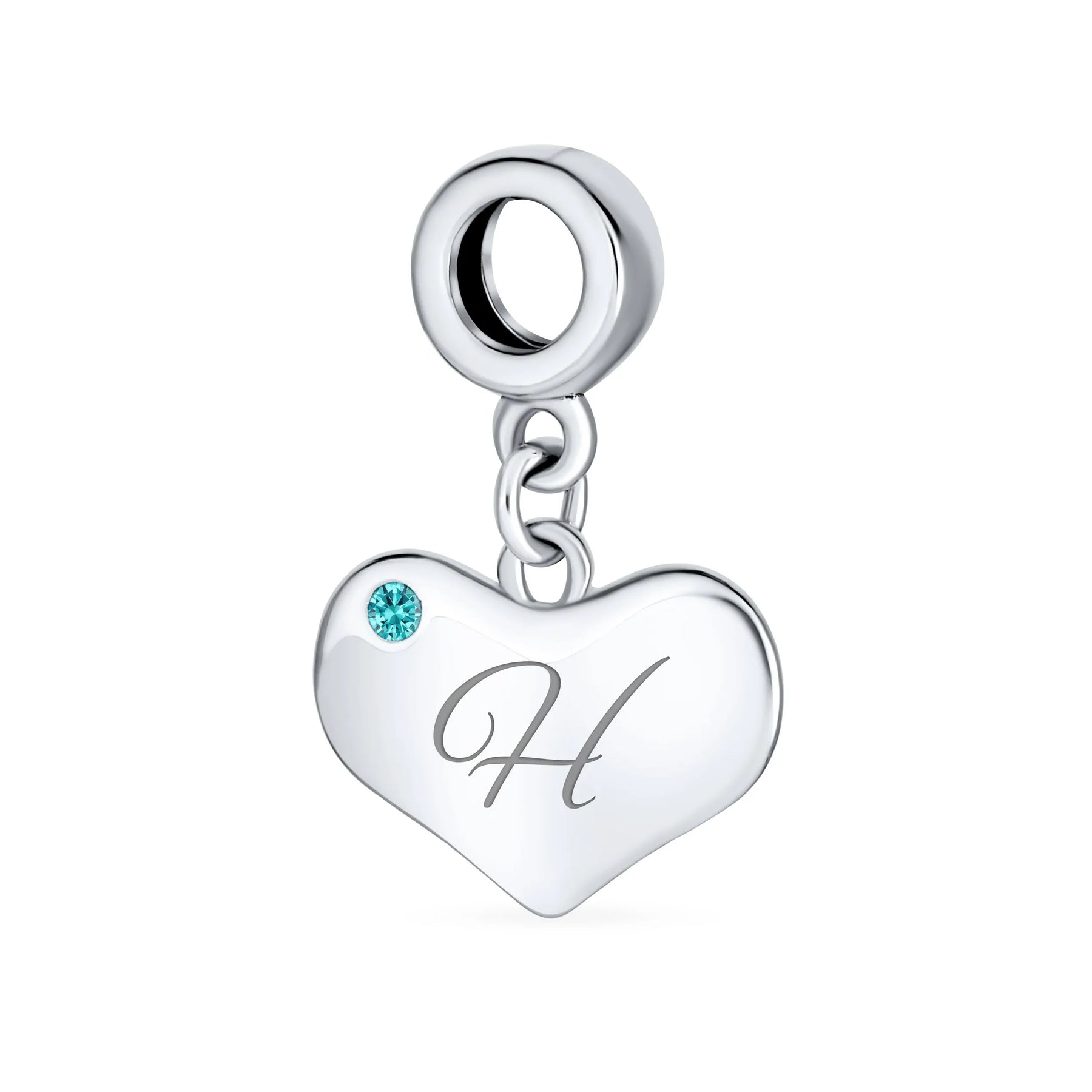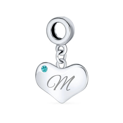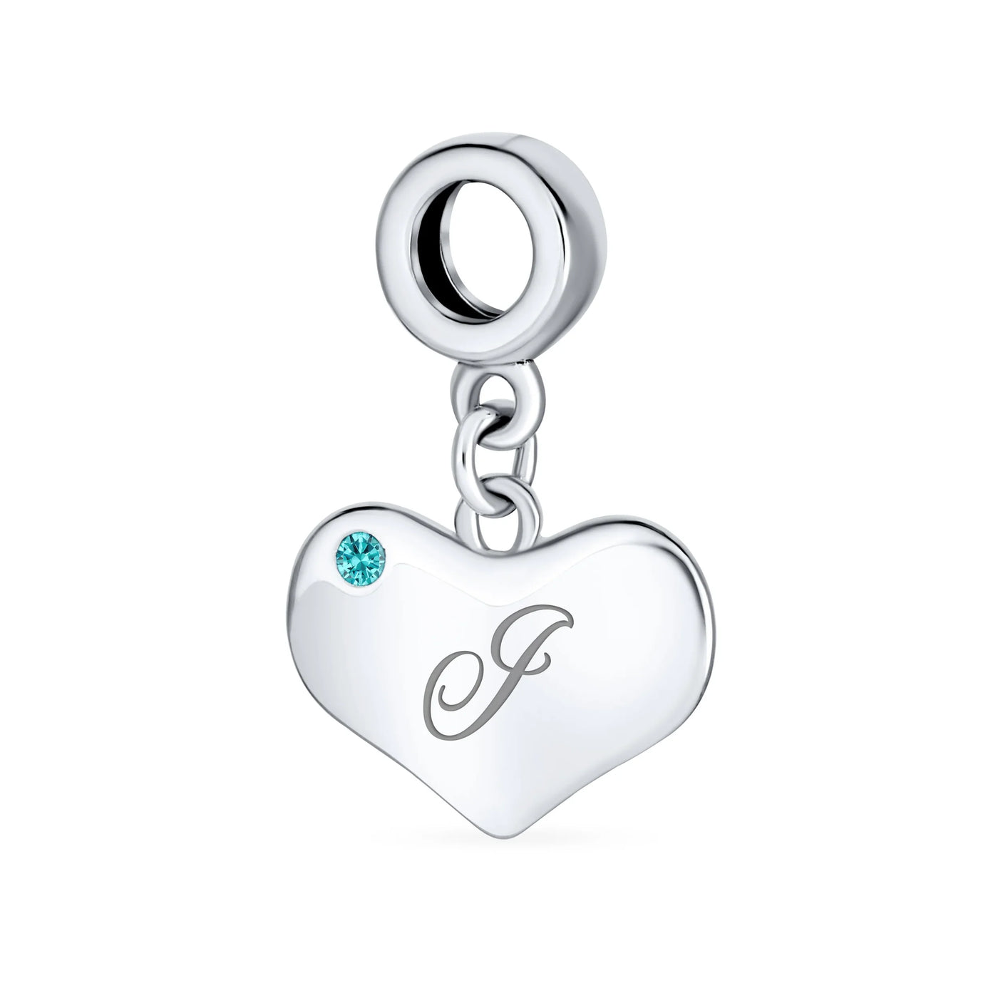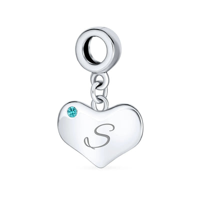 - Move your heart to your beads bracelet with this sterling silver dangle heart charm. Perfect for March birthdays, featuring a simulated Aquamarine crystal. Show your love with this stunning birthstone charm.