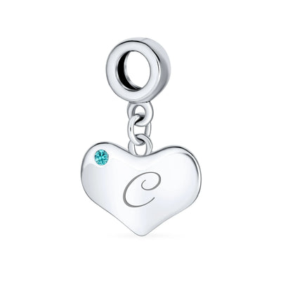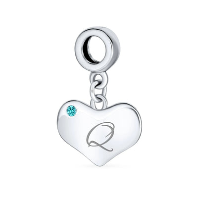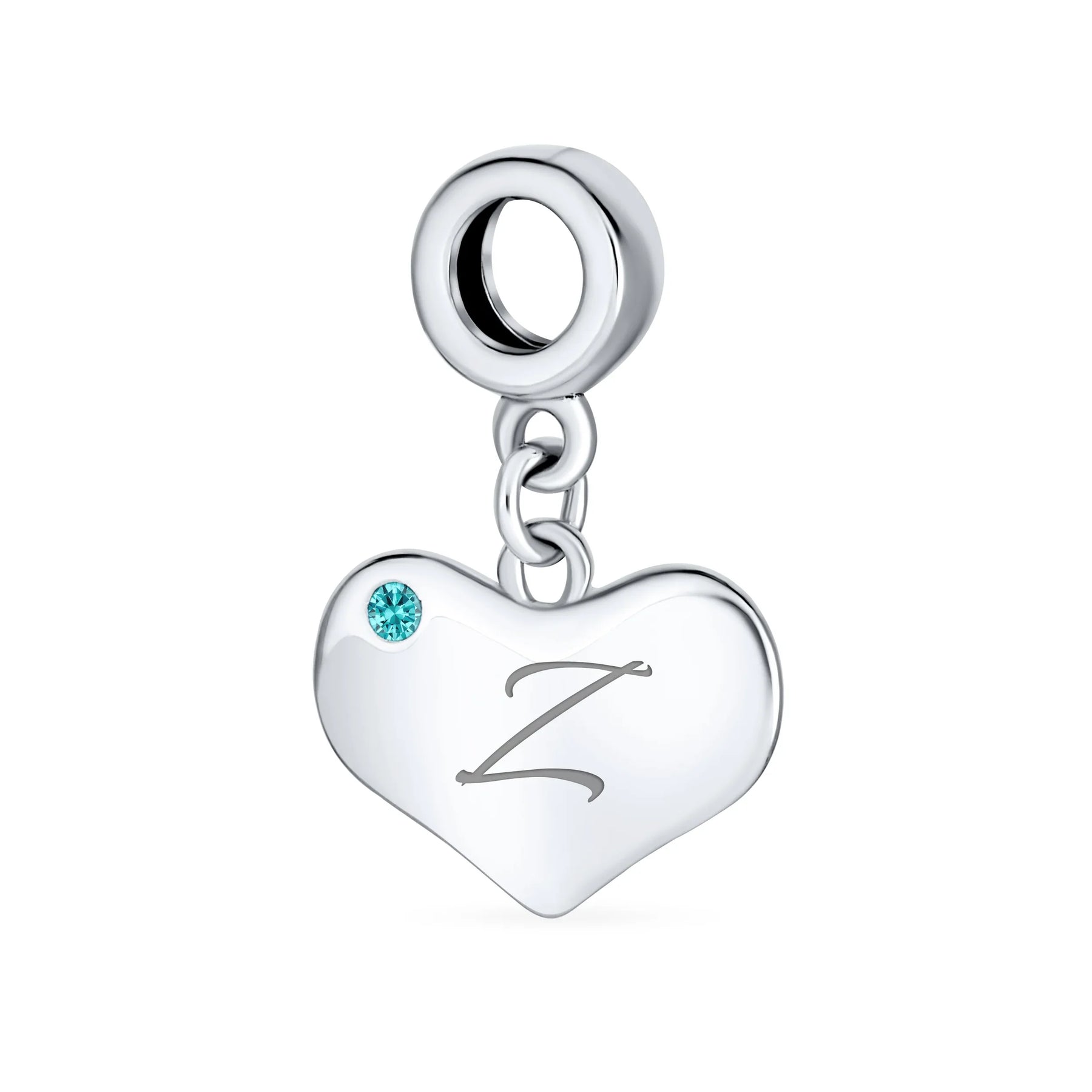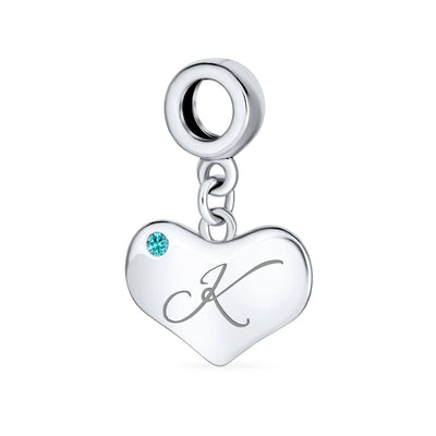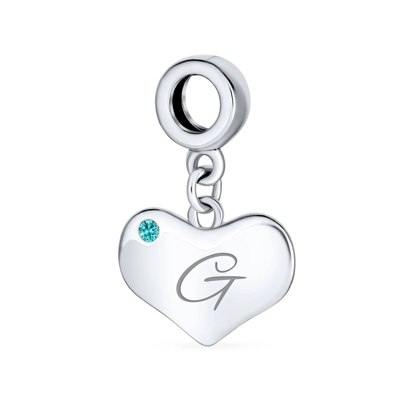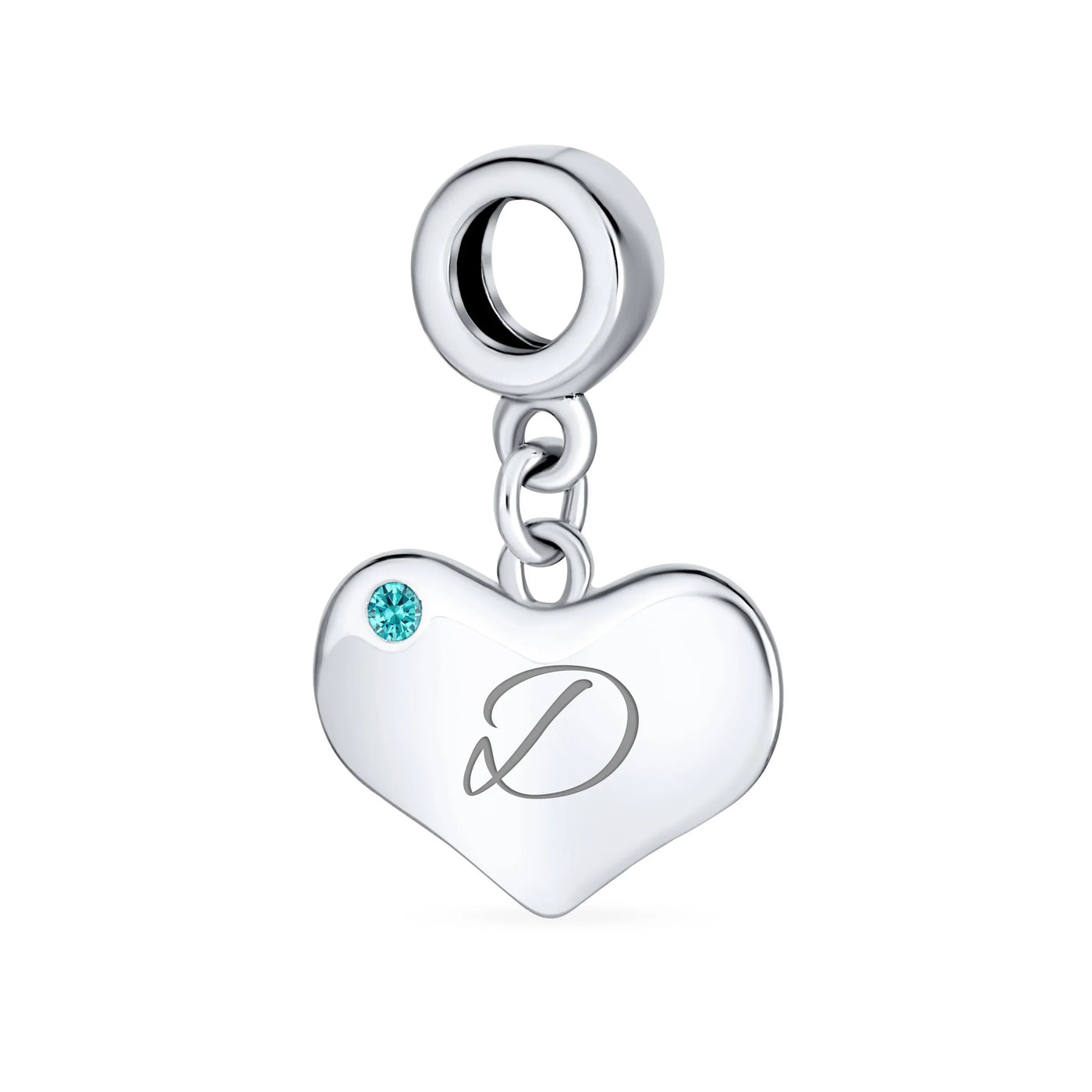 - Move your heart to your beads bracelet with this sterling silver dangle heart charm. Perfect for March birthdays, featuring a simulated Aquamarine crystal. Show your love with this stunning birthstone charm.