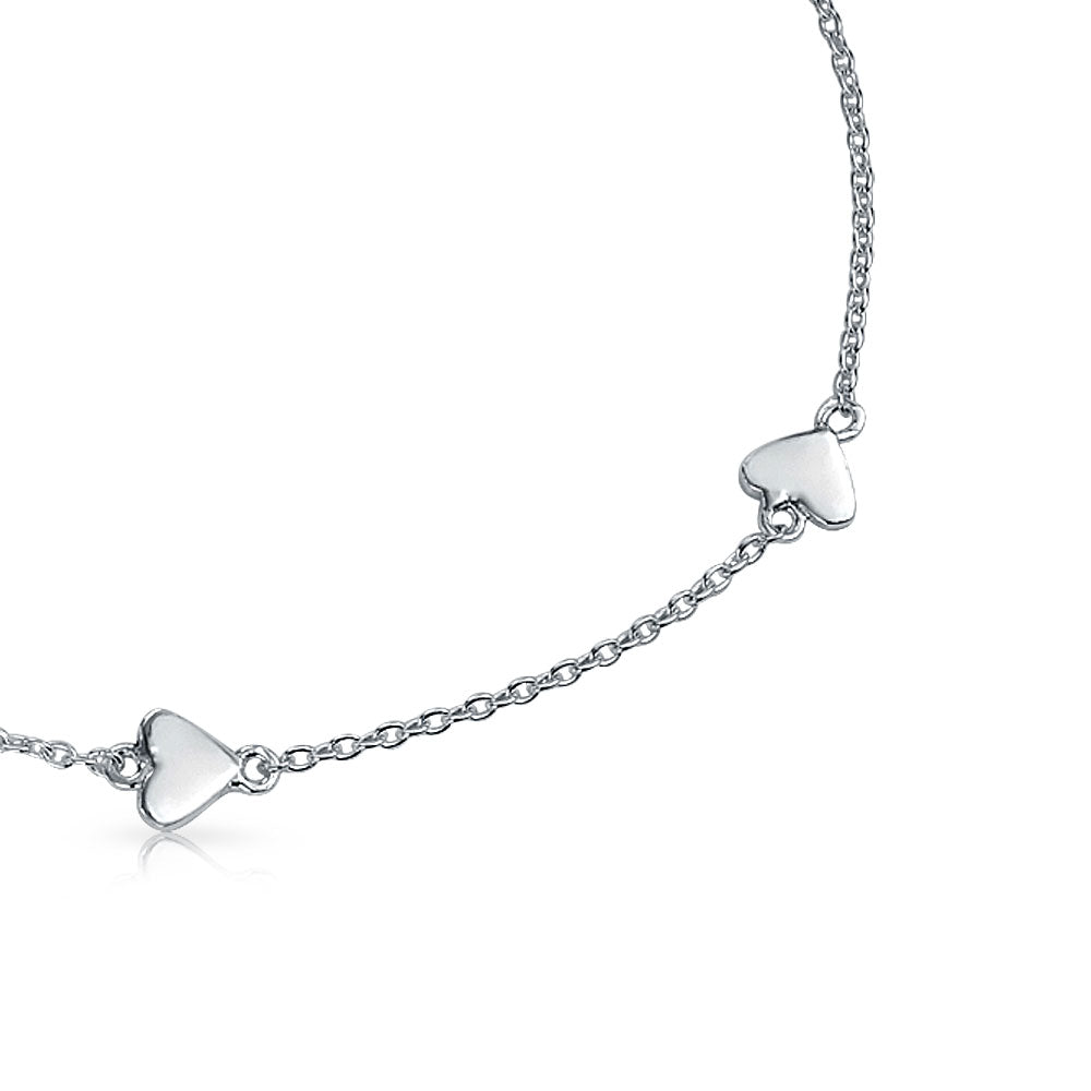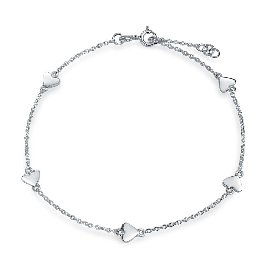 - Hearts are flirty and feminine, the many dangling hearts are flat and add a very pretty look to the sterling silver heart ankle foot bracelet. Delicate dainty but strong charm heart anklet is on rolo chain. It a perfect gift for women of all ages and any occasion. It fastens securely with a spring ring clasp that features an extender.