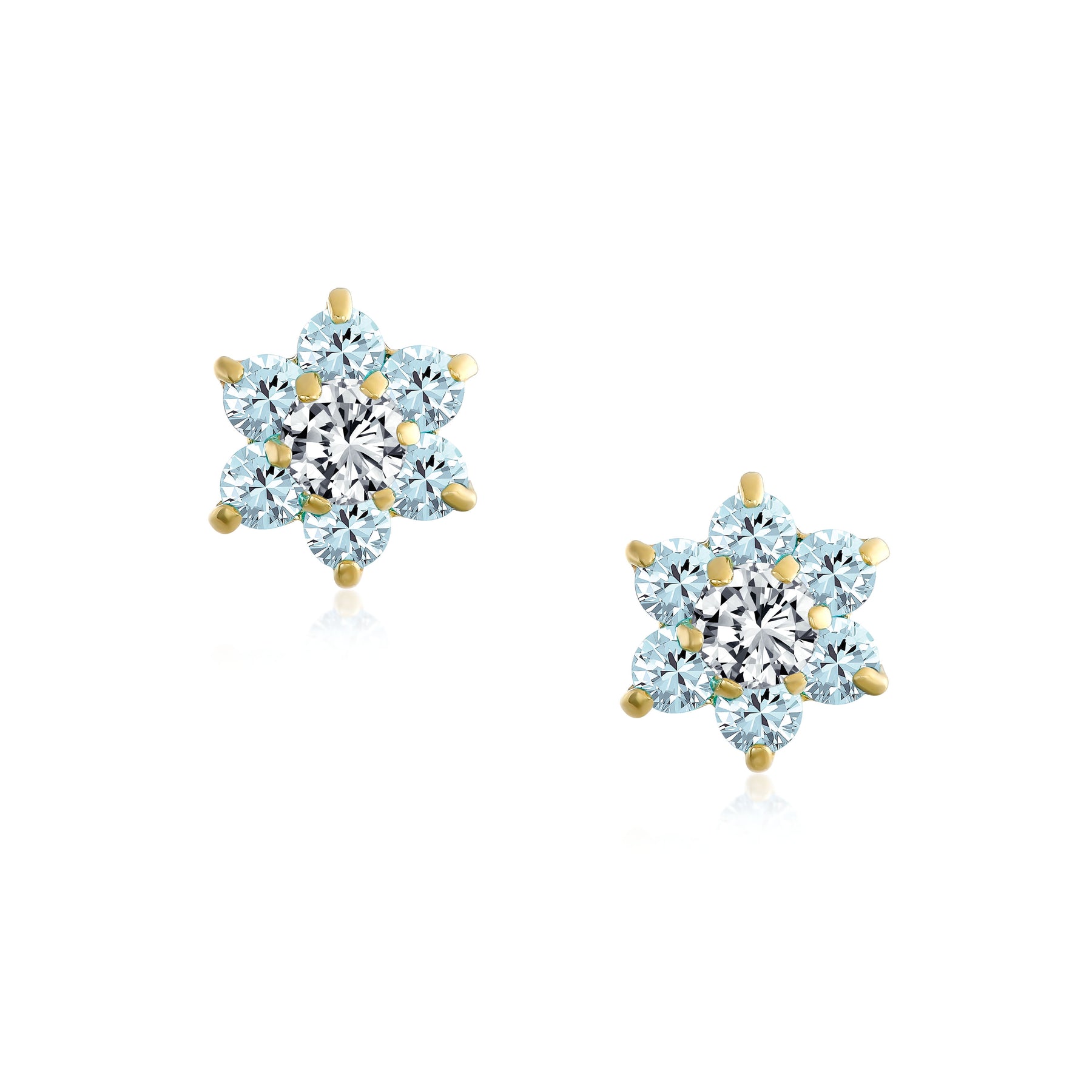 • Super cute jewelry for your super style, these flower stud earrings are a perfect classic pair. The vividly colorful design features a clear cz, accentuated by six dazzling Simulated color CZs creating a floral pattern. Composed of gleaming 14k gold, this flower jewelry is adorable, and makes ideal gifts for people born in March. The lightweight feel and screw back post means our cz and gold jewelry will sit comfortably on your ears, so order today.