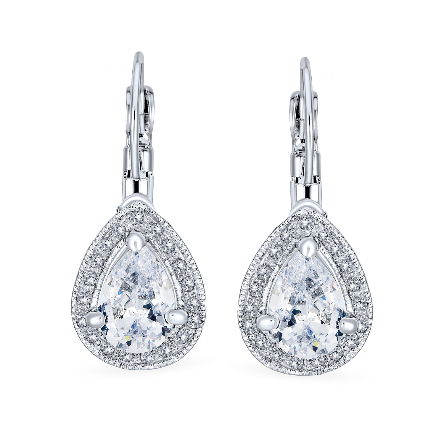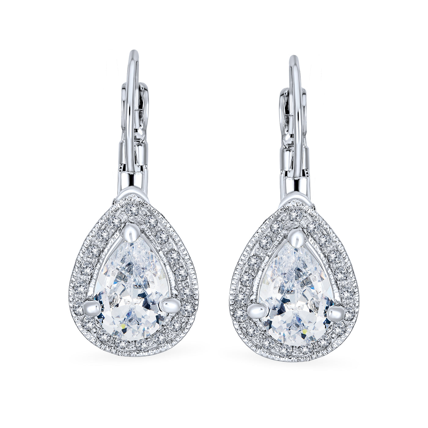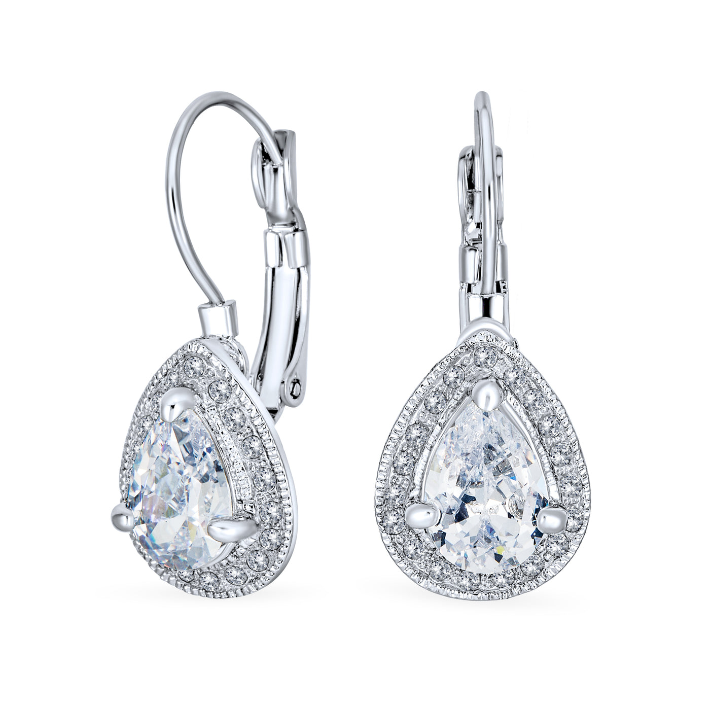 • Perfect for a blushing bride, these stunning leverback earrings are made of rhodium-plated alloy and feature a breathtaking 2.25ct teardrop CZ crystal surrounded by sparkling crystal accents. An ideal choice for those with an April birthday.