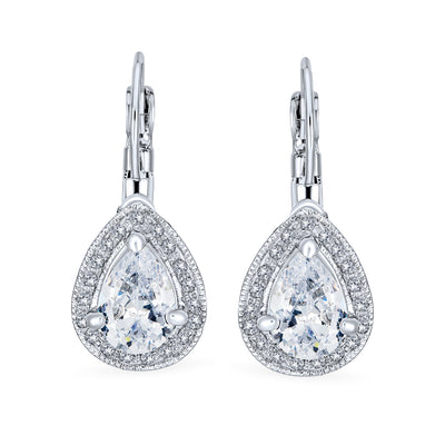 2.25CT Prom Crystal Halo Teardrop CZ Earrings Silver