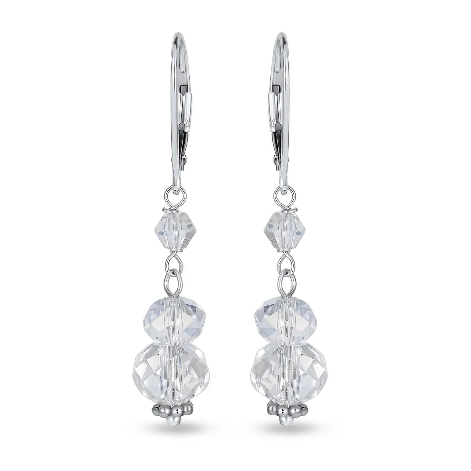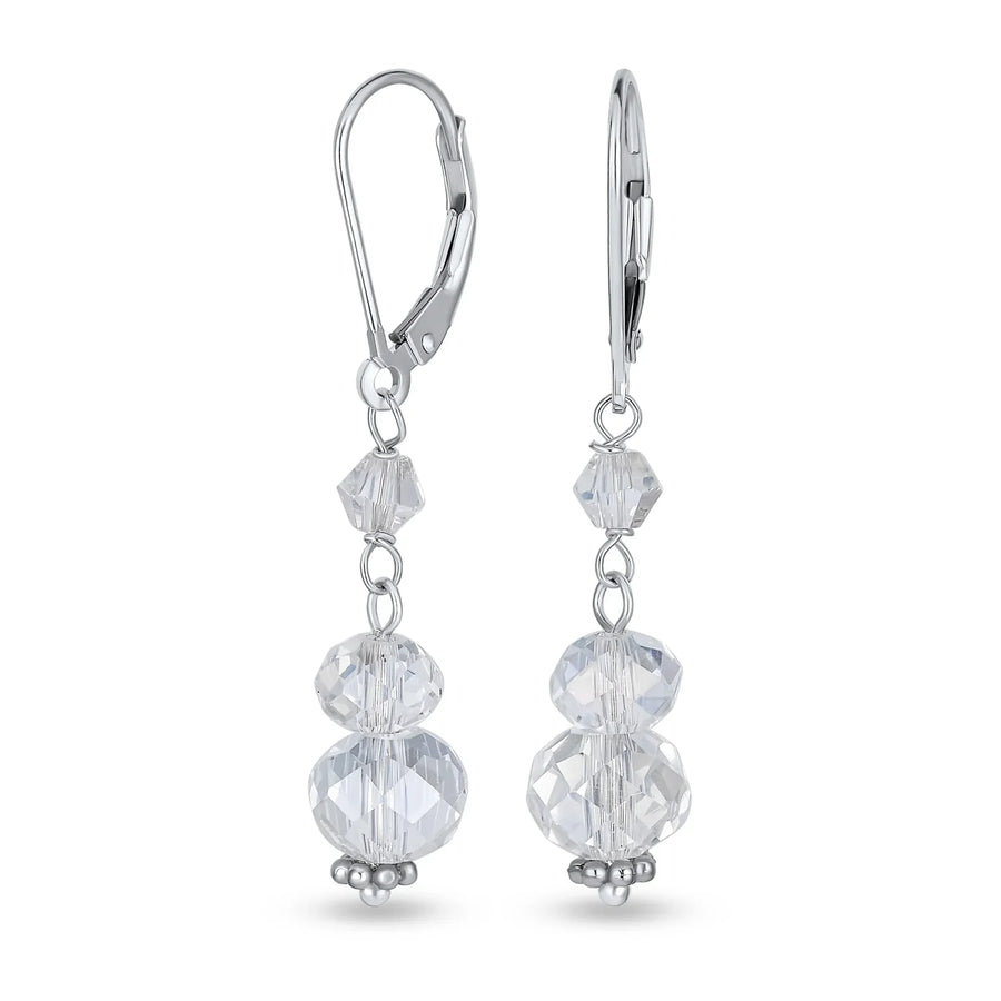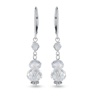 - These silver leverback earrings are designed with three round, faceted stones that slowly graduate in size from a 4mm crystal bead at the top to an 8mm Aurora Borealis faceted crystal at the bottom.