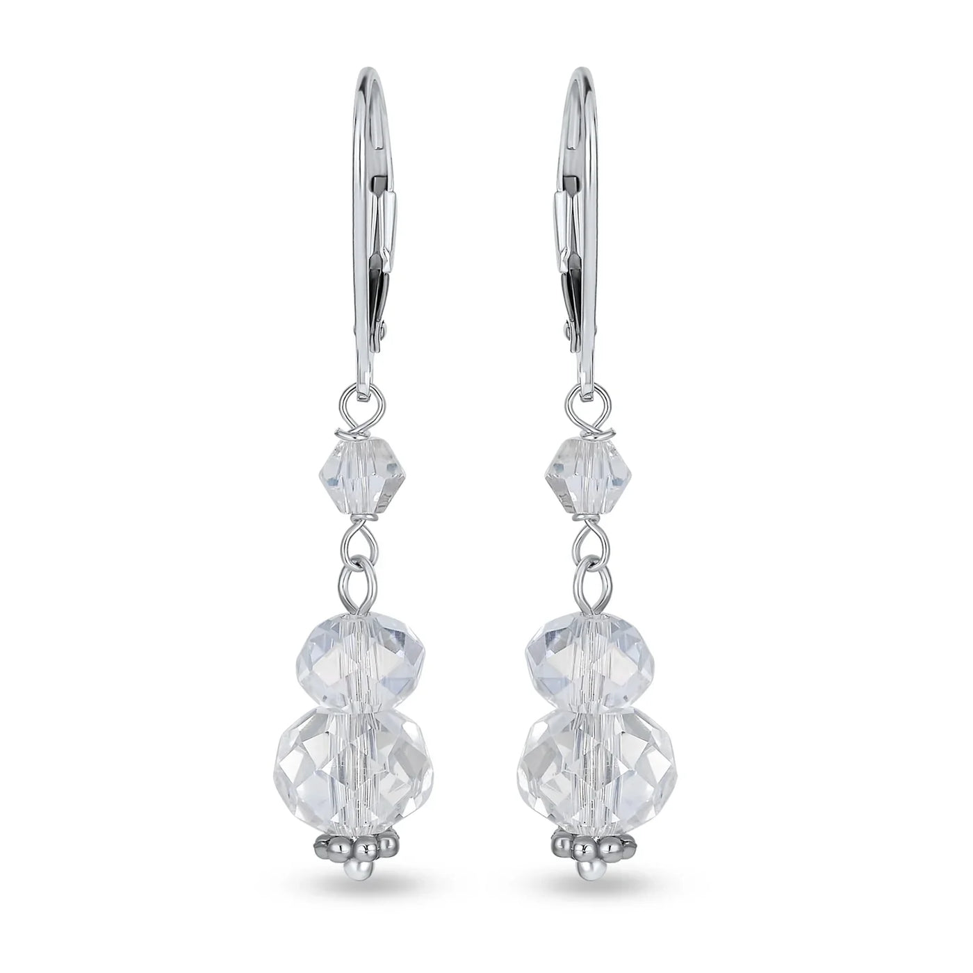 - Dazzle in these feminine Aurora Borealis crystal Rondelle lever back earrings. Add a hint of sparkle to frame your face stylishly. Crafted on 925 sterling silver lever backs for comfort, these earrings pack a fashionable punch. Each earring features a tiny silver-plated alloy spacer Rondelle with a subtle flower design. Designed with three round, faceted stones, they graduate from a 4mm to an 8mm crystal. Weighing just 2.6 grams, they are lightweight and perfect for everyday wear. Enhance your look effortlessly.