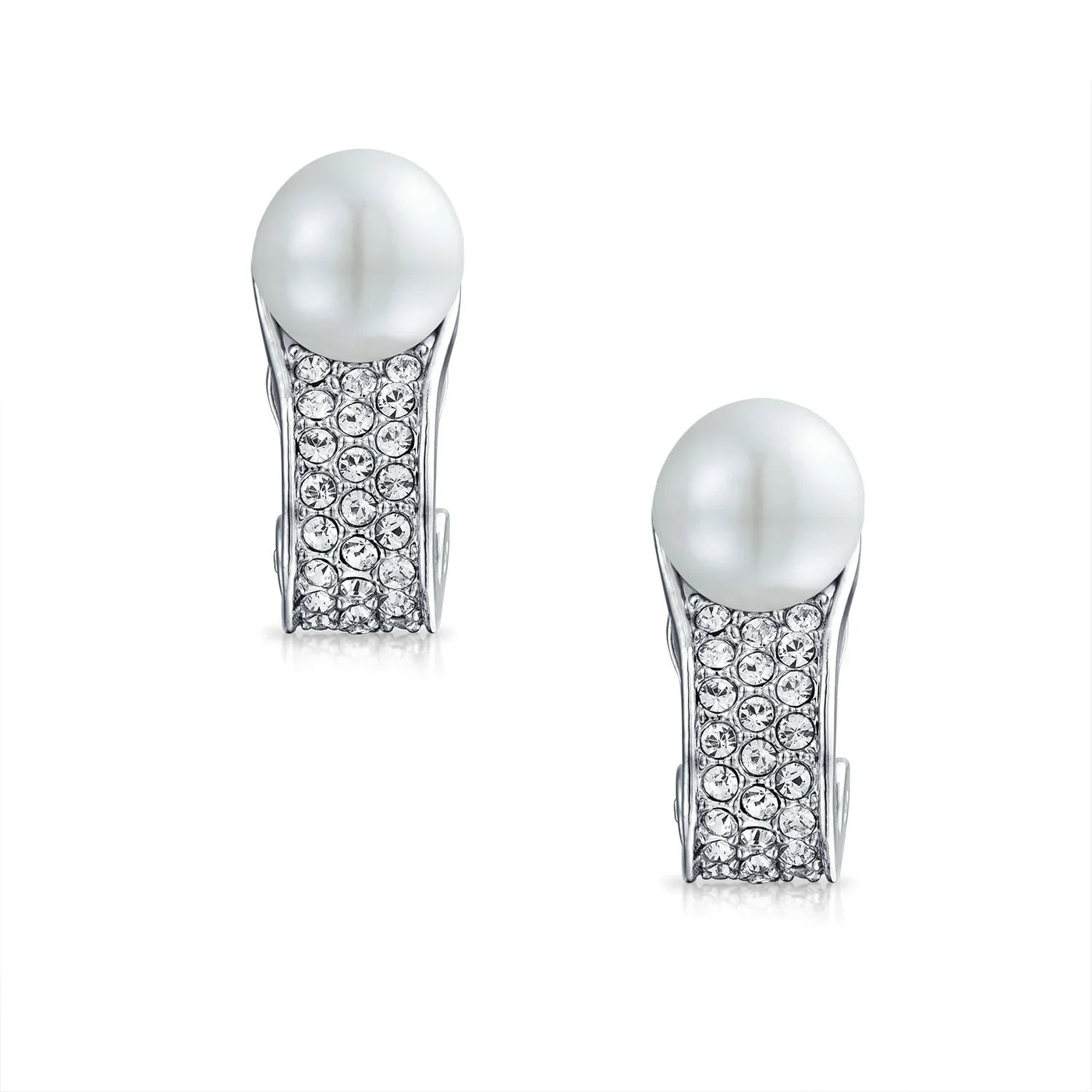 Bridal Crystal Pearl Huggie Clip-On Earrings for Non-Pierced Ears Silver Plated - Bling Jewelry