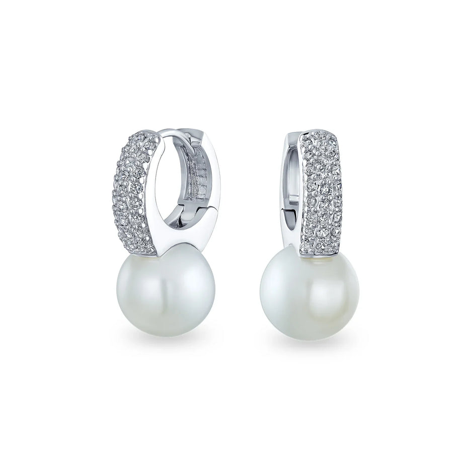 • These lustrous pearl earrings, featuring dazzling CZ glass pearls with diamond-like brilliance, are perfect for wedding jewelry or everyday wear.