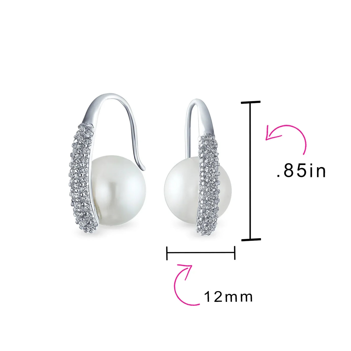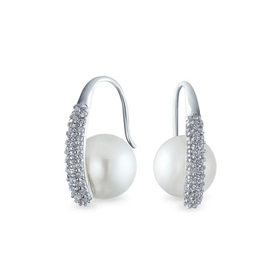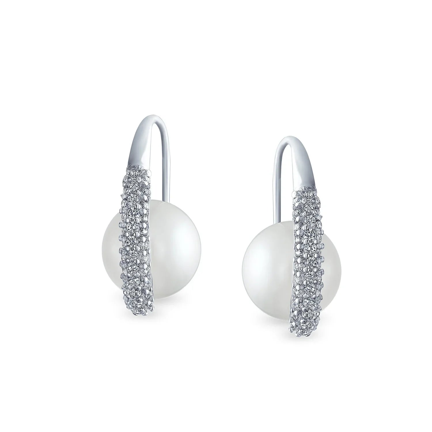 - Embrace elegance as a fashion-forward bride with these stylish bridal brass drop earrings, featuring a radiant 12mm white simulated pearl and shimmering pave CZ accents. Perfect for a June birthday gift.