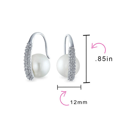 - For Pierced Ears Only, Ear Wire, Measure: 0.86 Inch L x 0.47 Inch W, Weight: 7.22 Gram, Pearl: 12 MM Diameter, Material: Brass, Cubic Zirconia, Simulated Pearl, Rhodium Plating