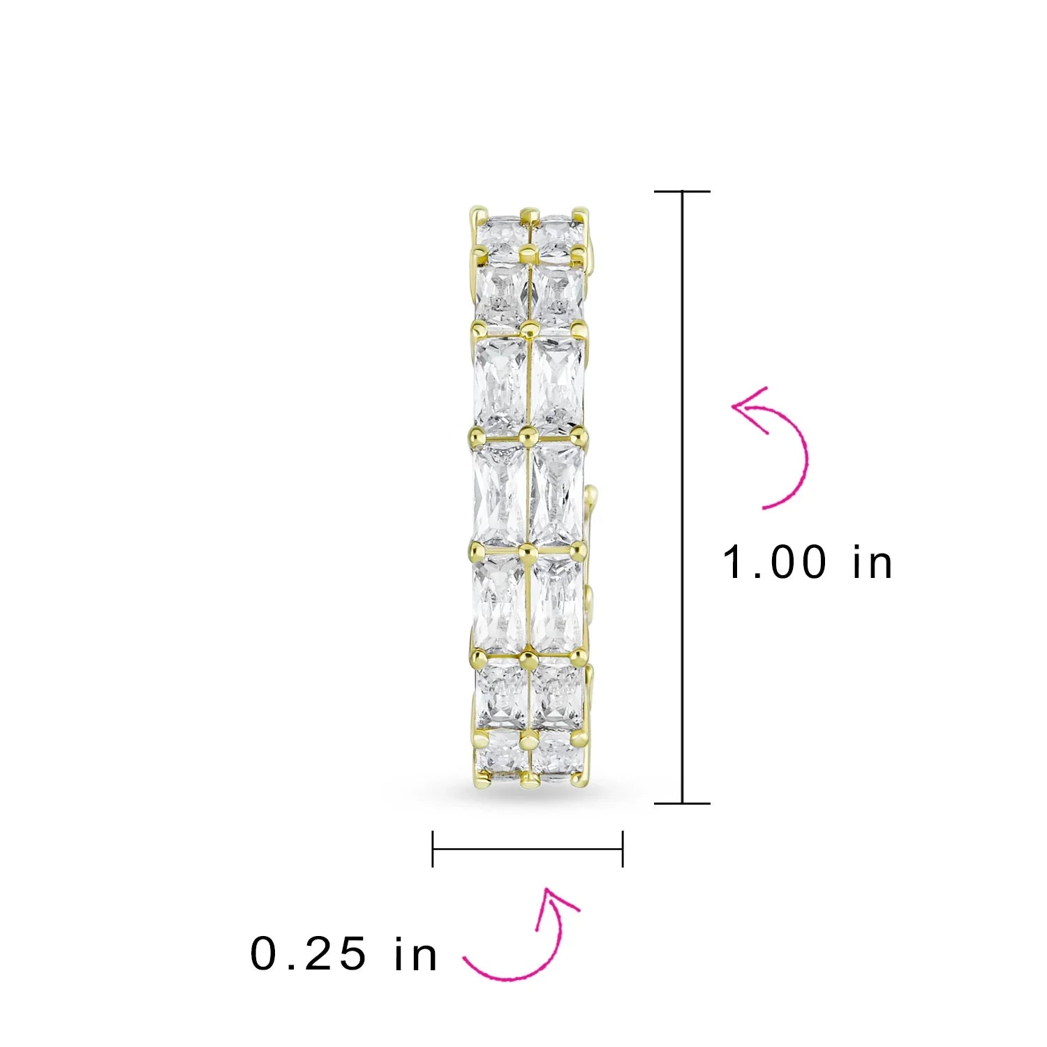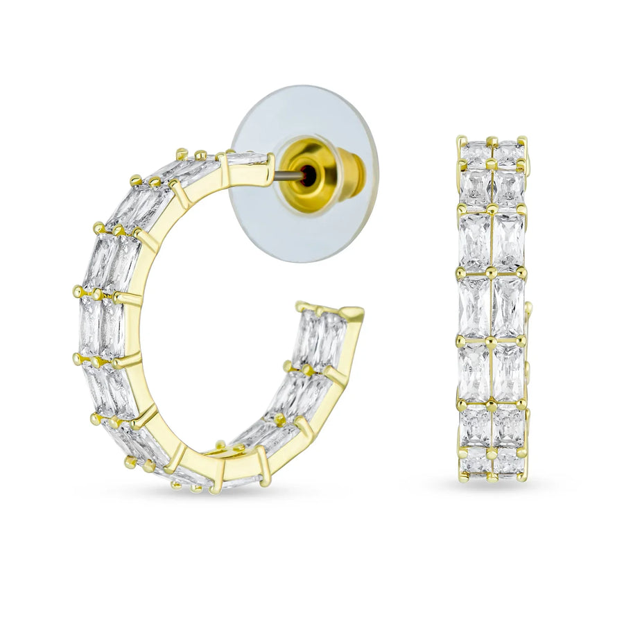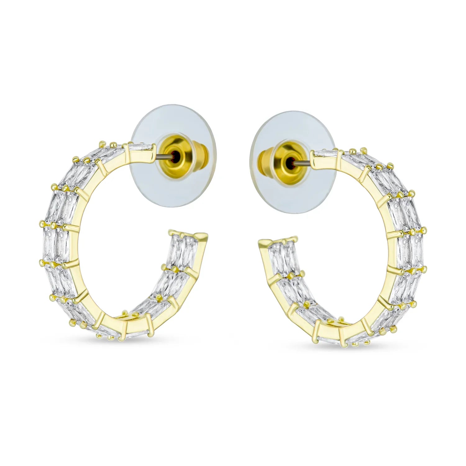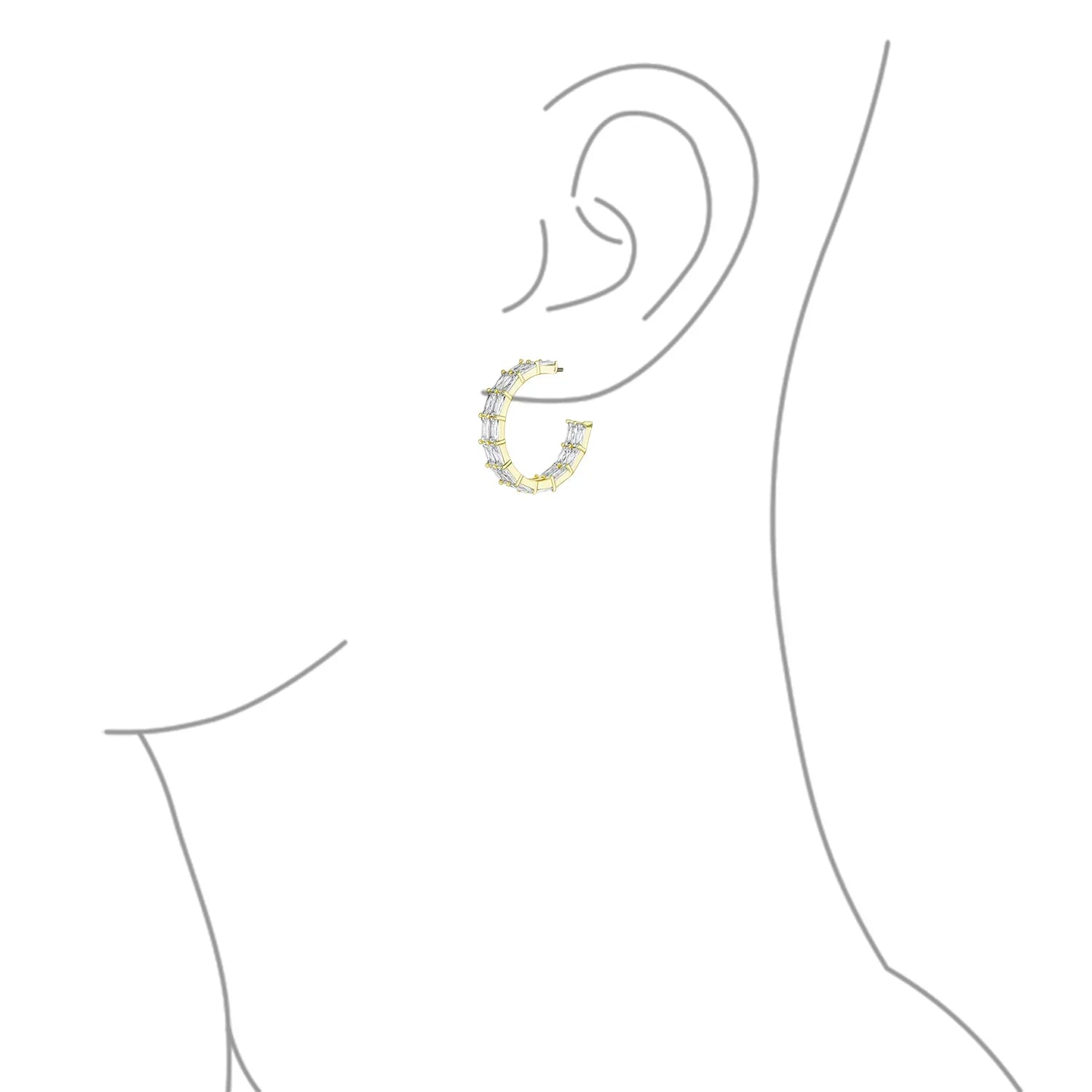 - Add a touch of elegance and sparkle to your look with these stunning bridal hoop earrings, featuring lustrous baguette CZ accents. Perfect for brides or as a sophisticated accessory, they make a lovely gift for an April birthday.