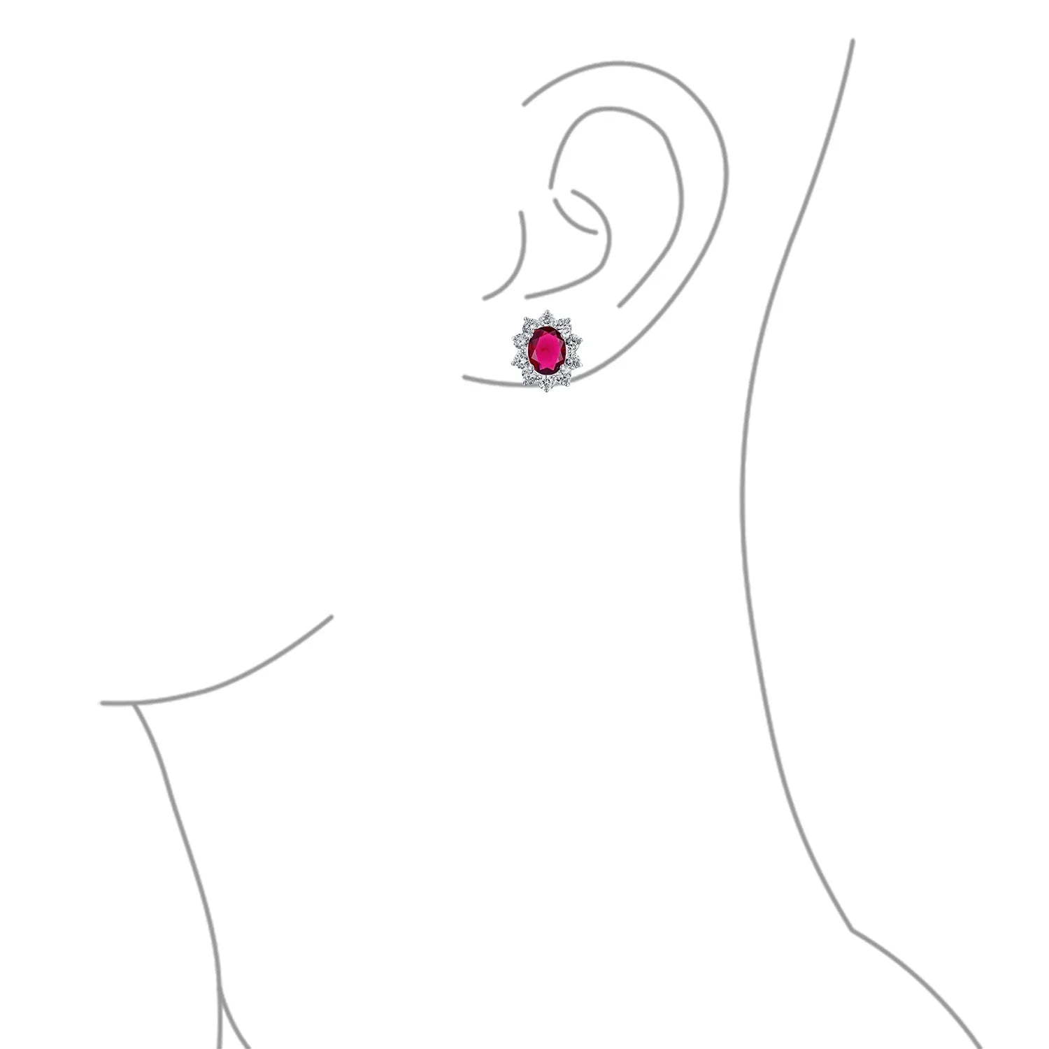 • STUNNING STYLE - Feel like royalty with these Red inspired, simulated Ruby CZ stud earrings. The shimmering CZ halo adds a touch of elegance and a floral feel to your look. Perfect for those born in May or anyone who loves a pop of color.