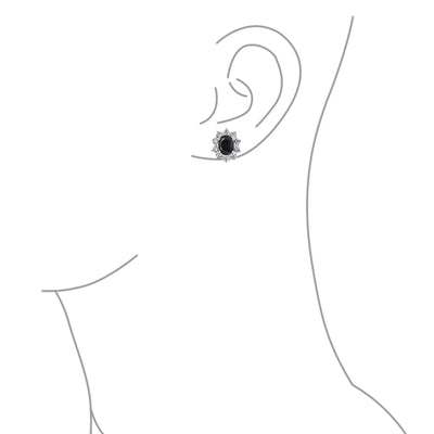 • Feel like royalty with our elegant CZ Crown Oval Compressed Turquoise Stud Earrings. Crafted with gleaming rhodium-plated brass, they feature an alluring oval stone. Surrounded by small, round clear cubic zirconia stones in a crown setting, they offer a majestic sparkle. Perfect for bridal parties or any special occasion, these affordable silver stud earrings make you feel like a princess. They also make a great gift for Valentine's Day or anyone on your holiday list.
