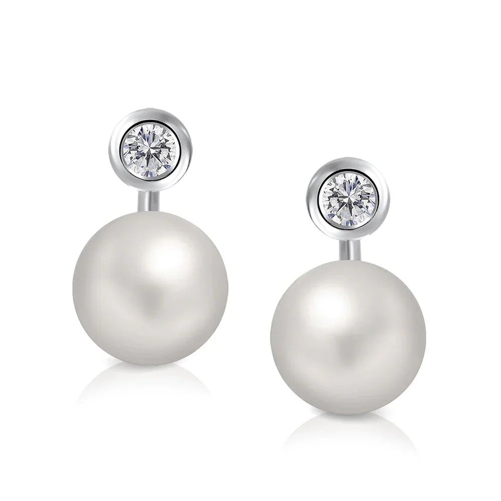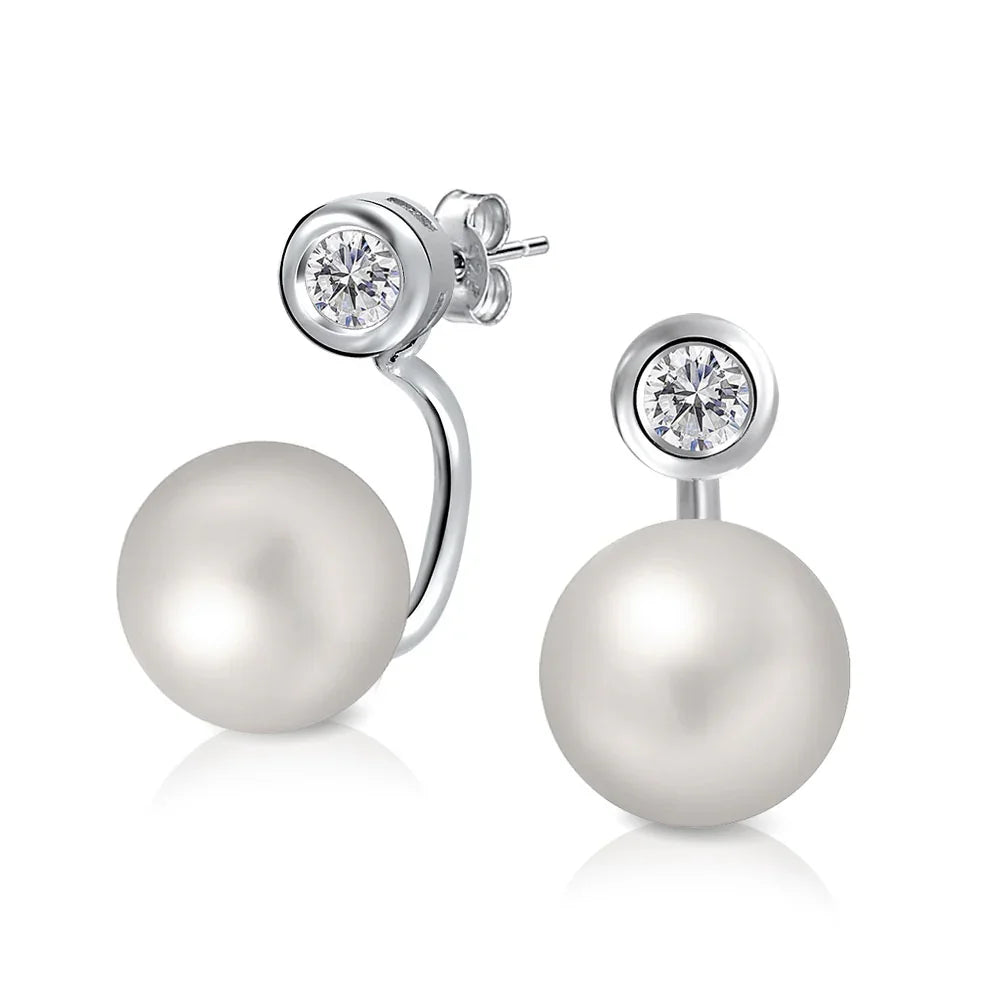 - Add a touch of glamour to your look with these stunning rhodium silver ear jacket earrings. The detachable ear jacket, featuring a simulated pearl, adds a unique and intriguing element to the classic solitaire CZ stud.