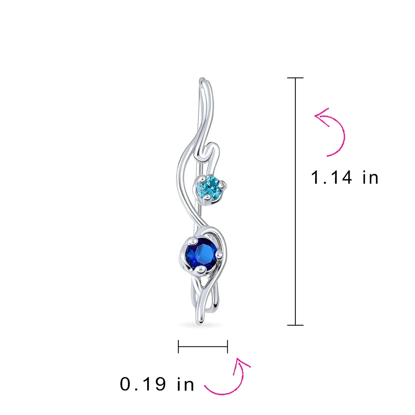 • Elevate your style with these exquisitely chic .925 silver ear Pin Climbers earrings. Featuring a modern swirl design and shimmering simulated sapphire and aquamarine cz stones, these earrings are perfect for adding a fashion forward touch to any outfit. Ideal for September birthdays.