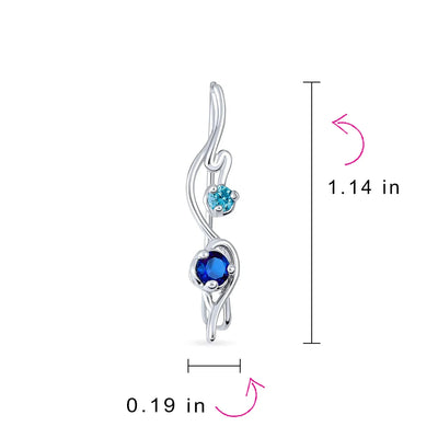 • Update your jewelry collection with our stunning sterling silver ear Pin Climbers. Perfect for gifting to a fashionable friend. Crafted from 925 sterling silver, rhodium plated to resist tarnish and stay shiny. Features simulated sapphire CZ and aquamarine CZ for a bright, beautiful look. Modern design swirls upward along the ear rim, lifting any look instantly. Ideal for first dates or important job interviews. These unique earrings add a wow factor to any outfit.