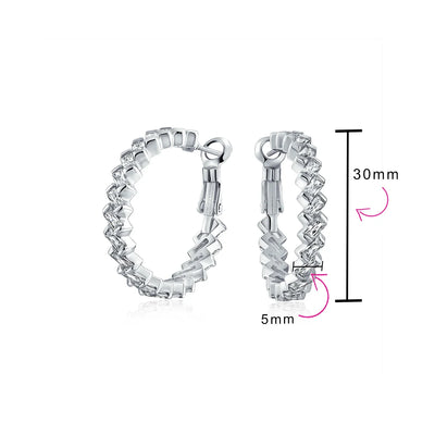 - ELEGANT DESIGN - Elevate your fashion statement with these exquisite bridal large hoop earrings. Featuring a divine baguette-cut cubic zirconia arrangement in an intricate, eye-catching staggered pattern, these earrings are secured with an omega back for comfortable wear, instantly enhancing your style.