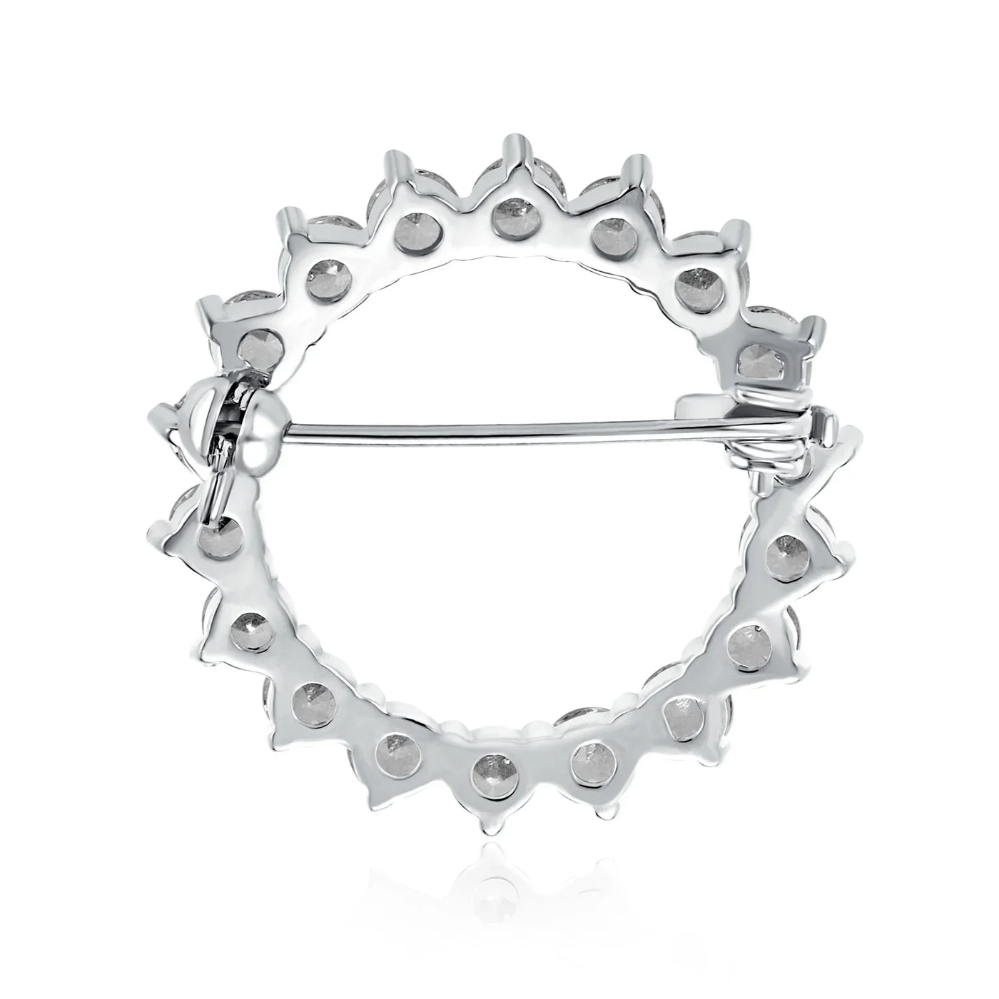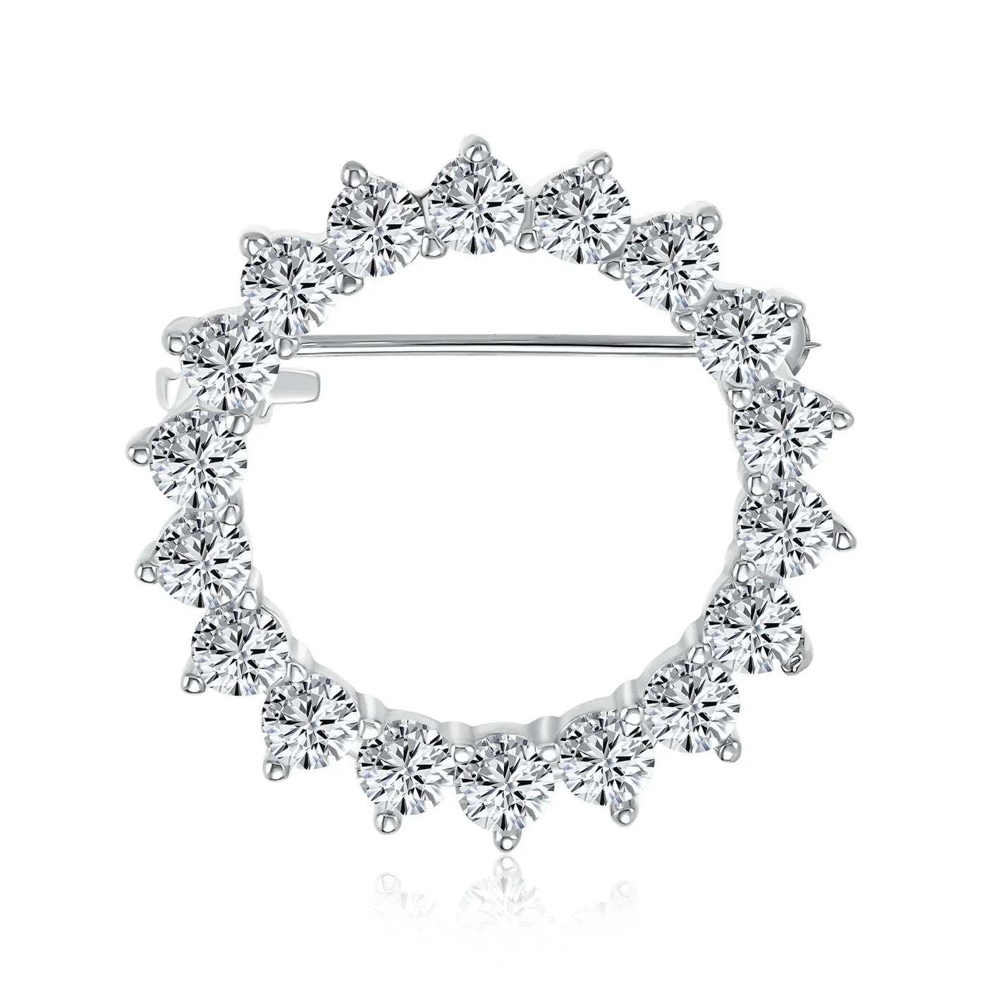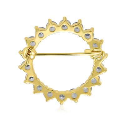 Bridal Marquise CZ Circle Brooche Pin for Wedding GoldSilver Plated Brass