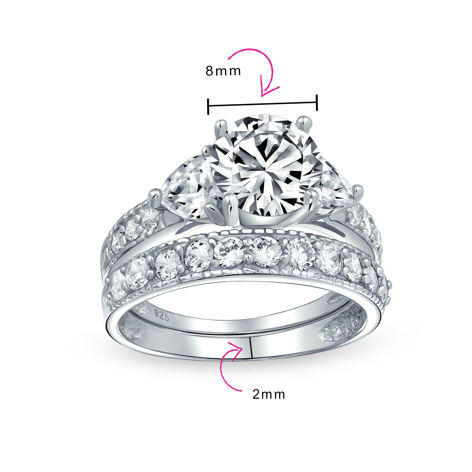 • Measure: 2mm Each Band Width, Weight: Approx.: 5 grams, Stone: 8mm, Material: .925 Sterling Silver Rhodium Plating Anti Tarnish Finish, Cubic Zirconia HYPOALLERGENIC - Lead-Free Nickle-free Each piece is stamped