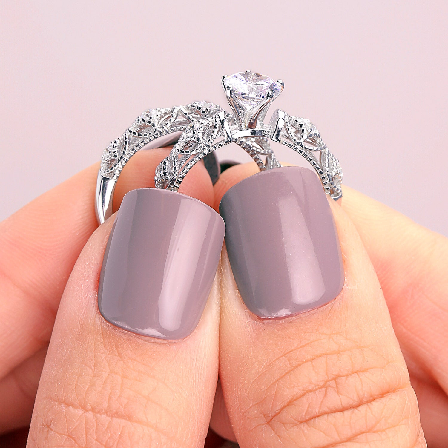 - Elegant and travel-ready, this European style ring set features a 1CT round cubic zirconia solitaire and filigree band in .925 sterling silver—perfect for promises, anniversaries, or stylish getaways.