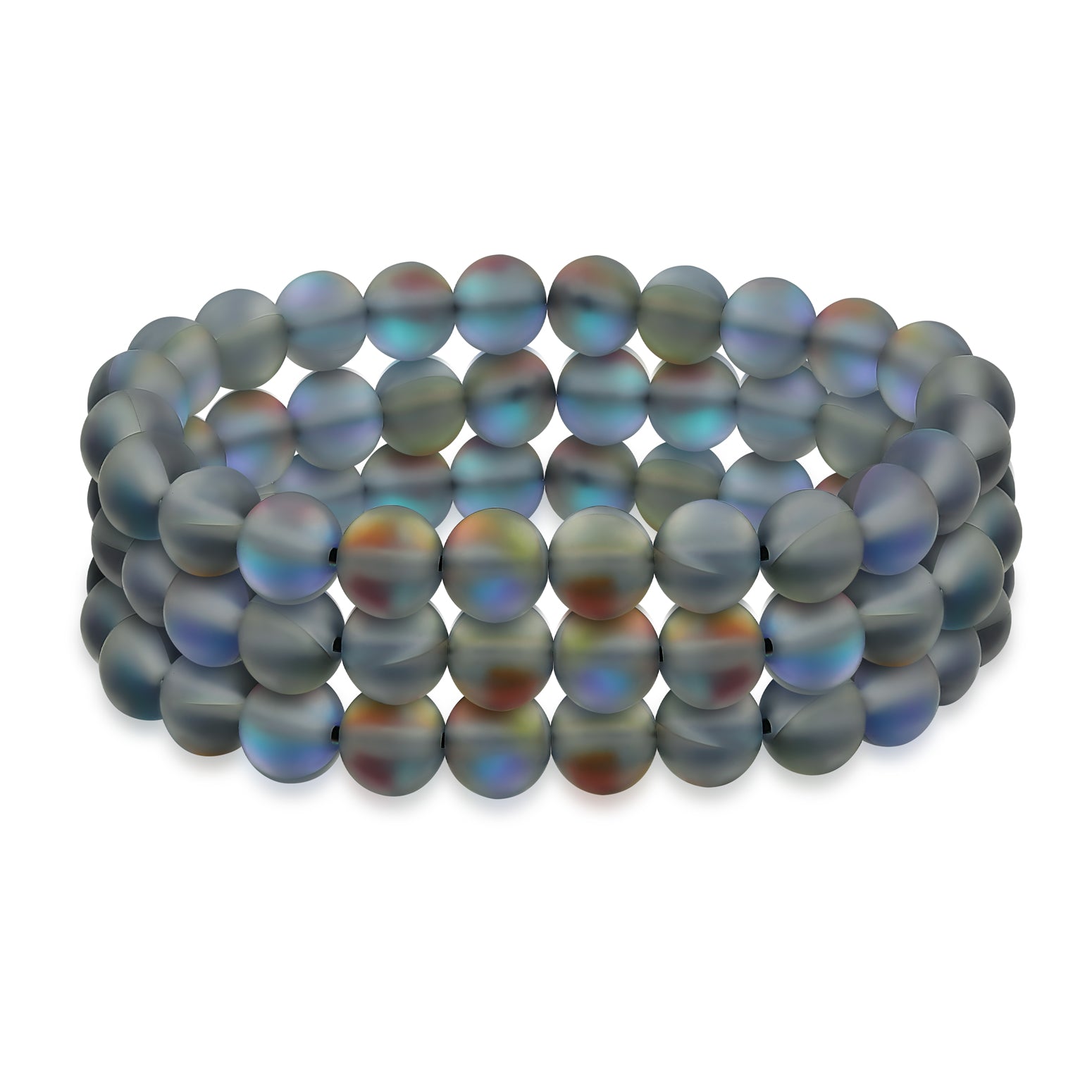 - Showcase your love for smoky gray blue with our Created Blue Moonstone bead bracelet. This stretchable bracelet is a must-have accessory for fashionable women. Wrap your wrist in vibrant grey-blue hues and embrace the bold trend. Perfect for stacking, you might want more than one. An excellent gift choice, especially for June birthdays. Order yours today!
