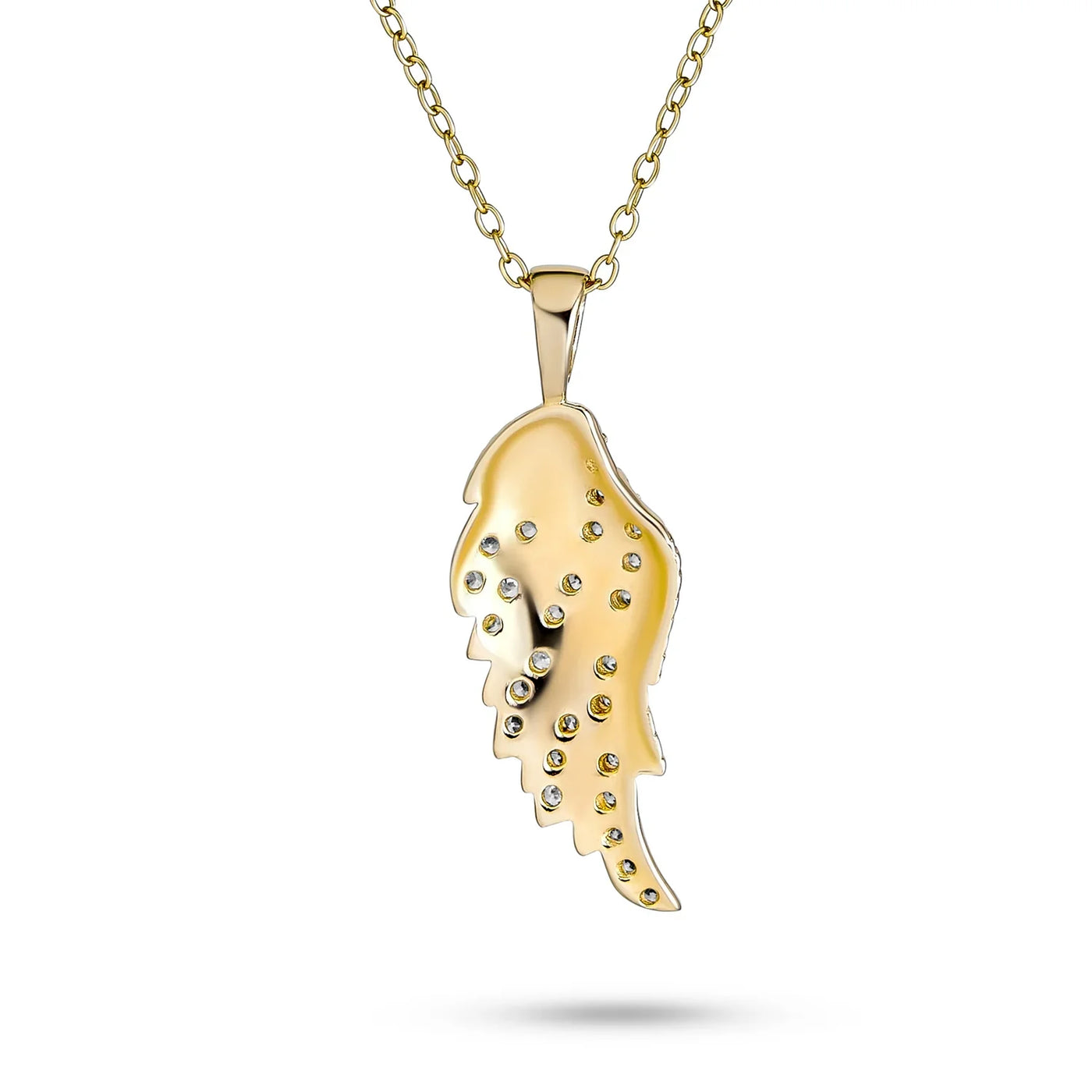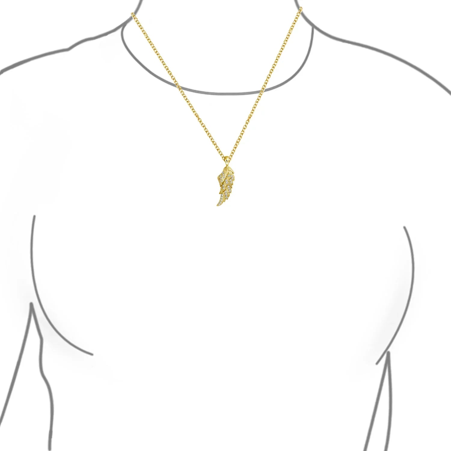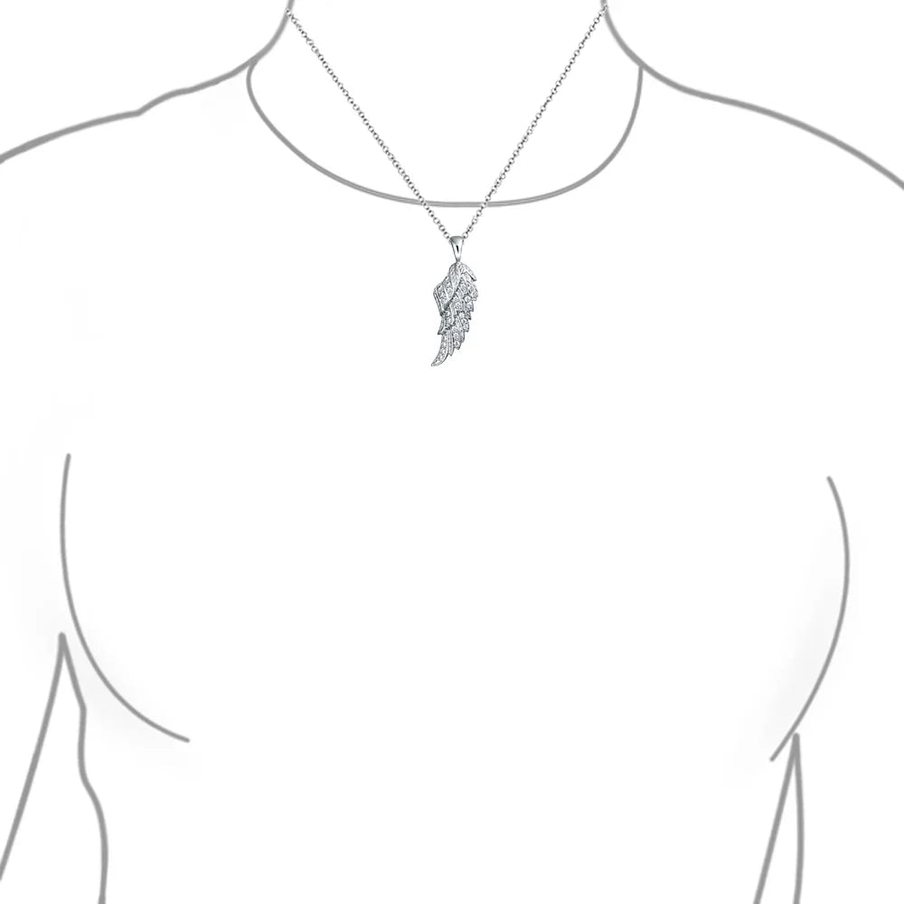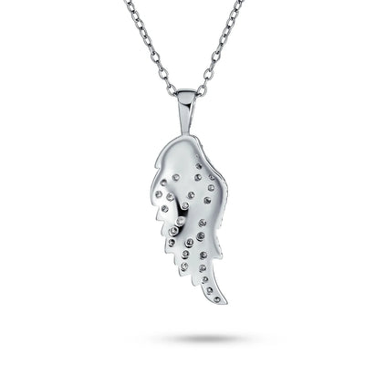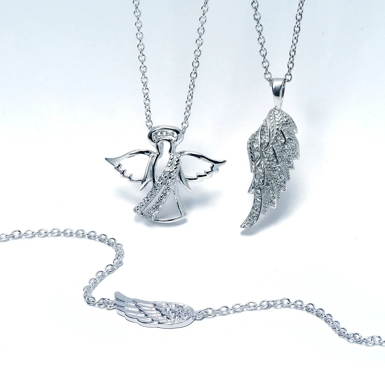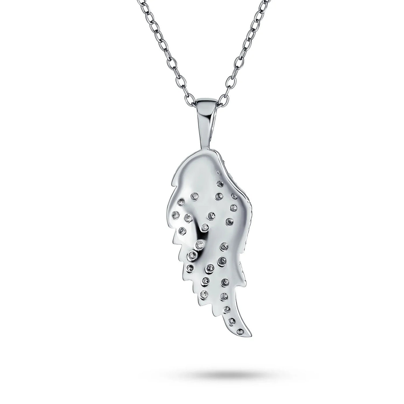 - Look angelic and ethereal. Buy this .925 Silver Angel Wing Feather Pendant Necklace with a 16in chain before it flies off the shelves. Buy this heavenly and enchanting version of the angel necklace today for yourself and special friends. This feather pendant is sprinkled with Cubic Zirconia and glitters day and night. A .925 Sterling Silver pendant with imagination, wit and whimsy.