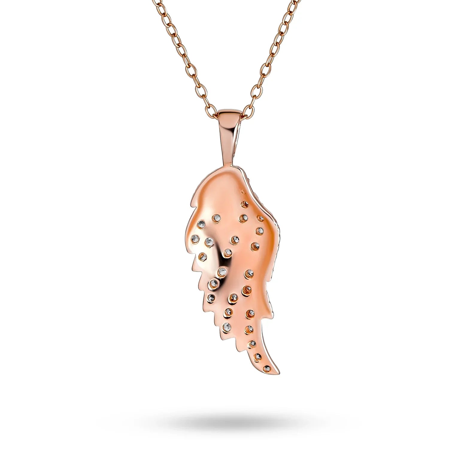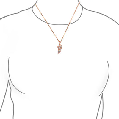 - Let someone you love know that youre watching over them with this 1.14in guardian angel wing pendant. This 16in rose gold plated necklace has pave CZ feathers for that extra detail that makes this the perfect gift for any loved one.