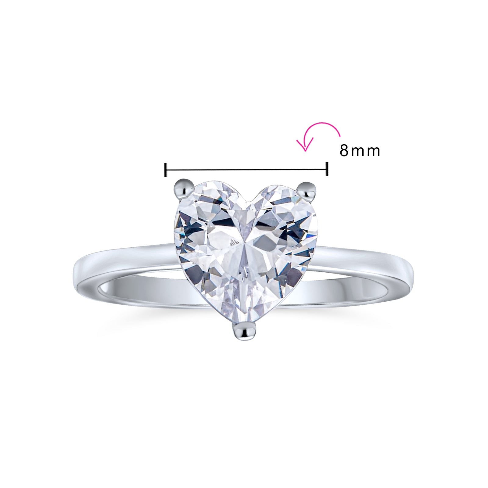 - Capture her heart with this elegantly feminine sterling silver engagement ring, featuring a radiant 2 CT heart-shaped CZ solitaire stone, beautifully set on a shimmering sterling silver band.