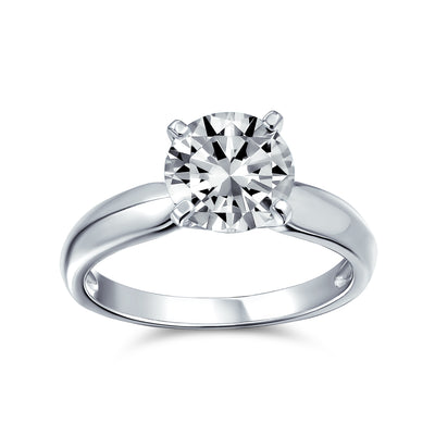 • These engagement rings are every glamour friend's dream. A CZ ring is perfect for popping the question. Featuring a sterling silver band and a 2.75 carat round cut stone, it offers massive glitter. The classic look ensures your bride-to-be radiates in every outfit. Order our CZ engagement ring today and start planning the perfect proposal.