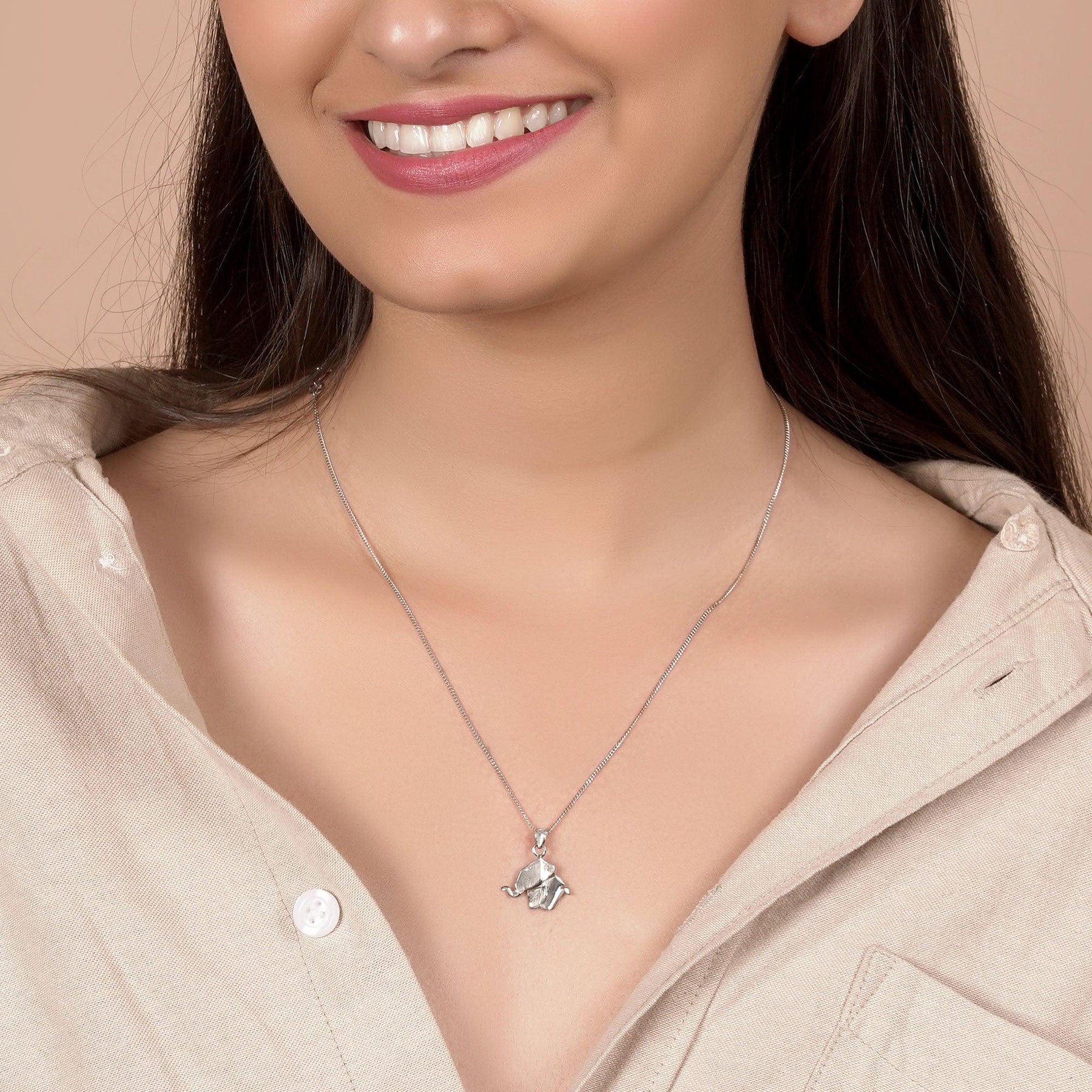 - Enhance your style with a touch of charm by wearing our origami animal series pendant necklace. Crafted from high-quality .925 silver, this necklace showcases a delightful origami elephant design that is sure to add instant cuteness to any outfit.