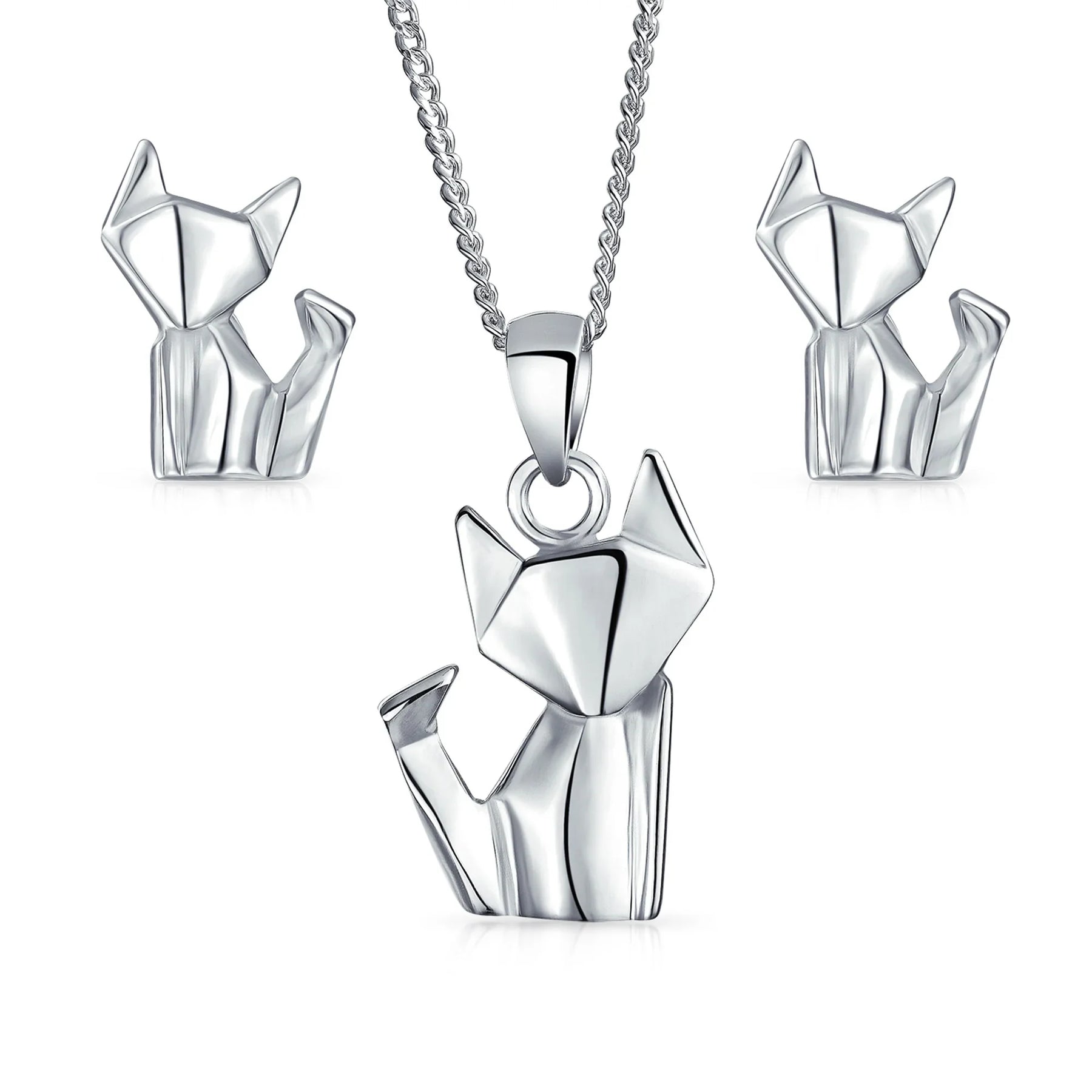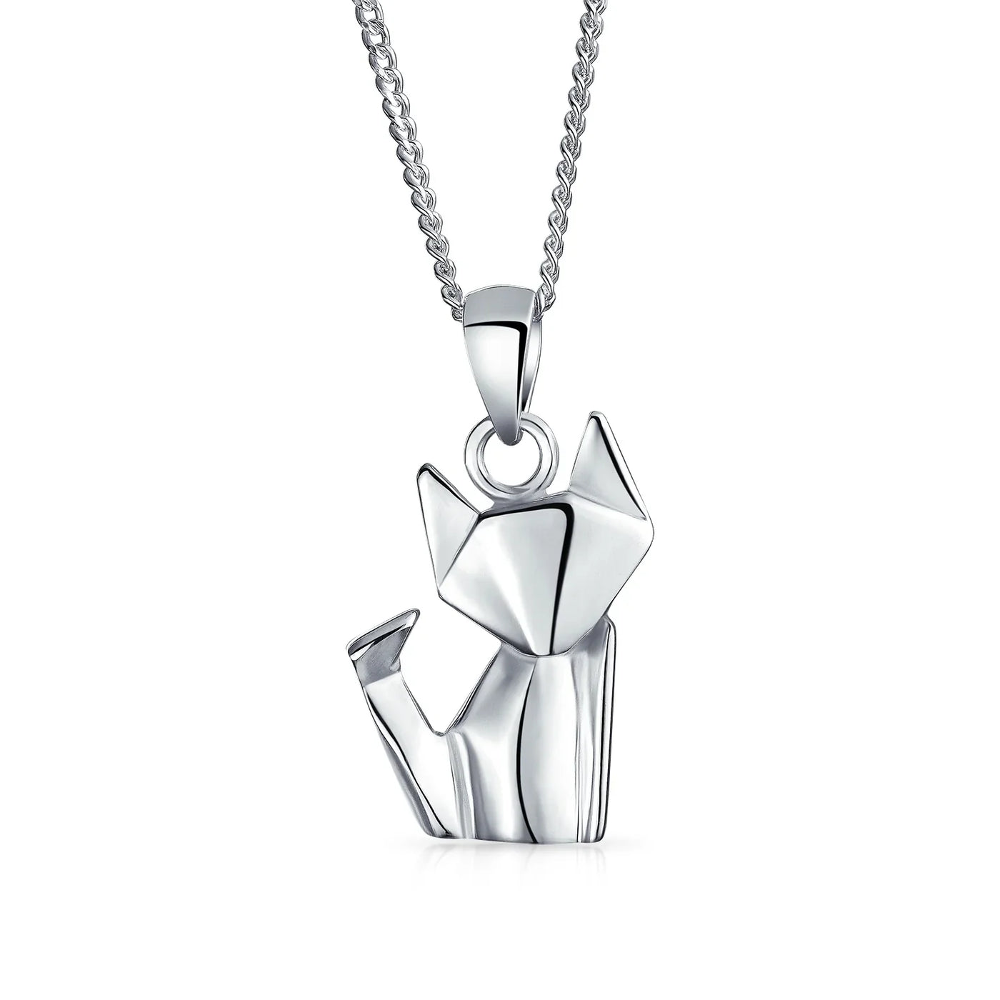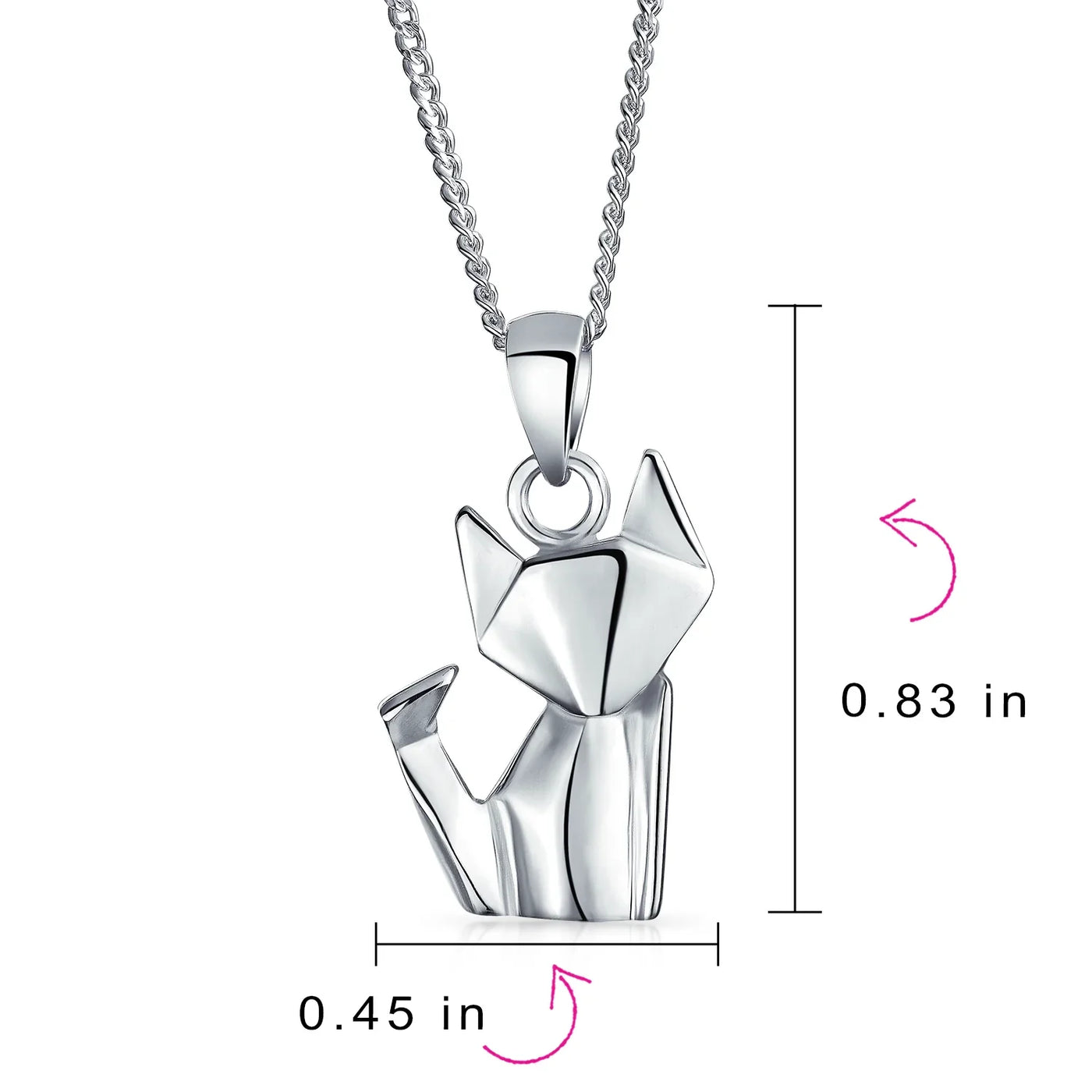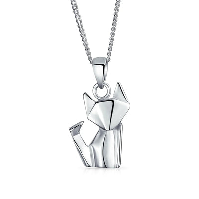 - Enhance your style with a touch of adorable charm from our origami animal series. Crafted from high-quality .925 silver, this pendant necklace showcases a delightful cat motif in a unique origami design. Drawing inspiration from the art of Japanese paper folding, this elegant pendant is suspended from a sleek sterling silver curb chain, adding a touch of sophistication to any outfit.