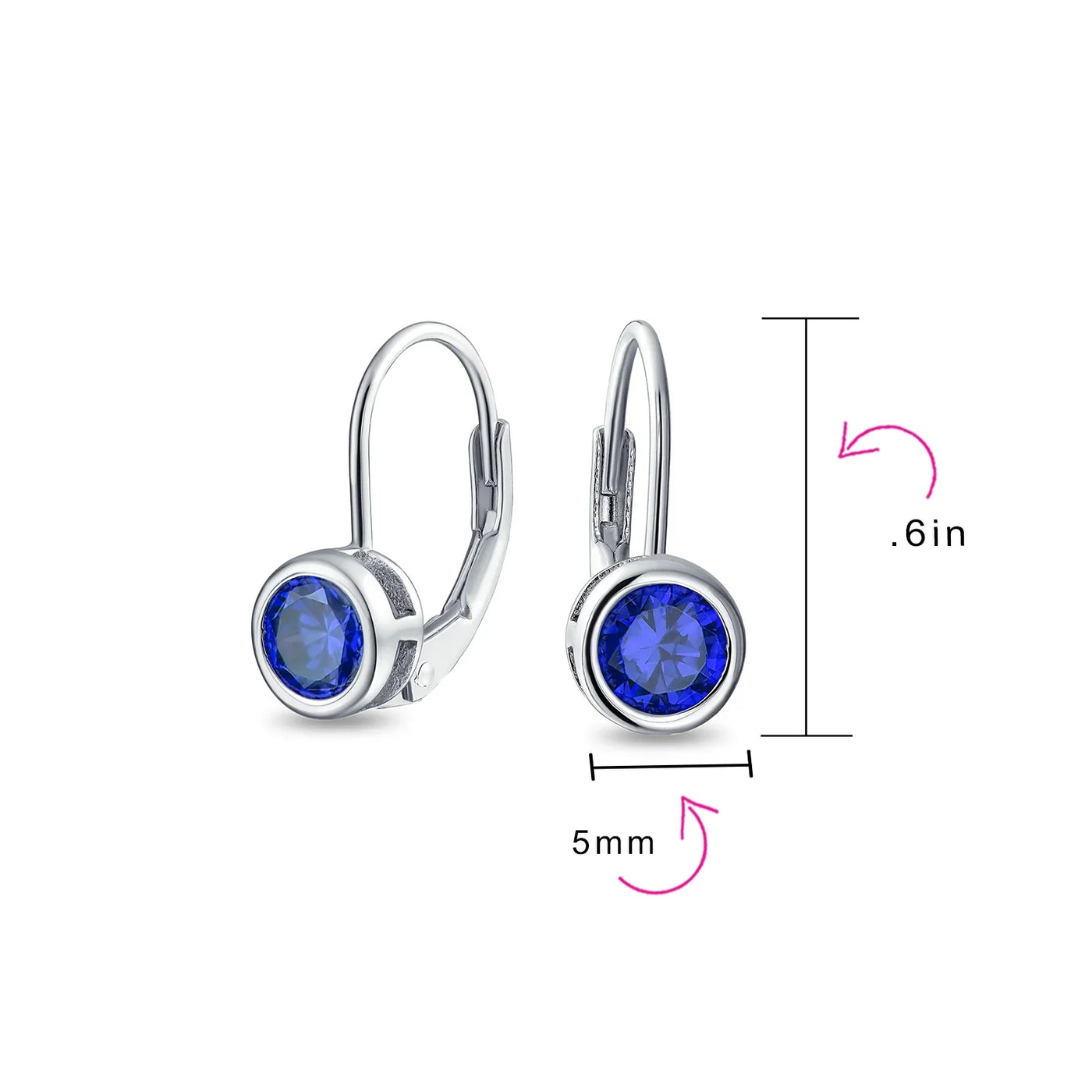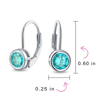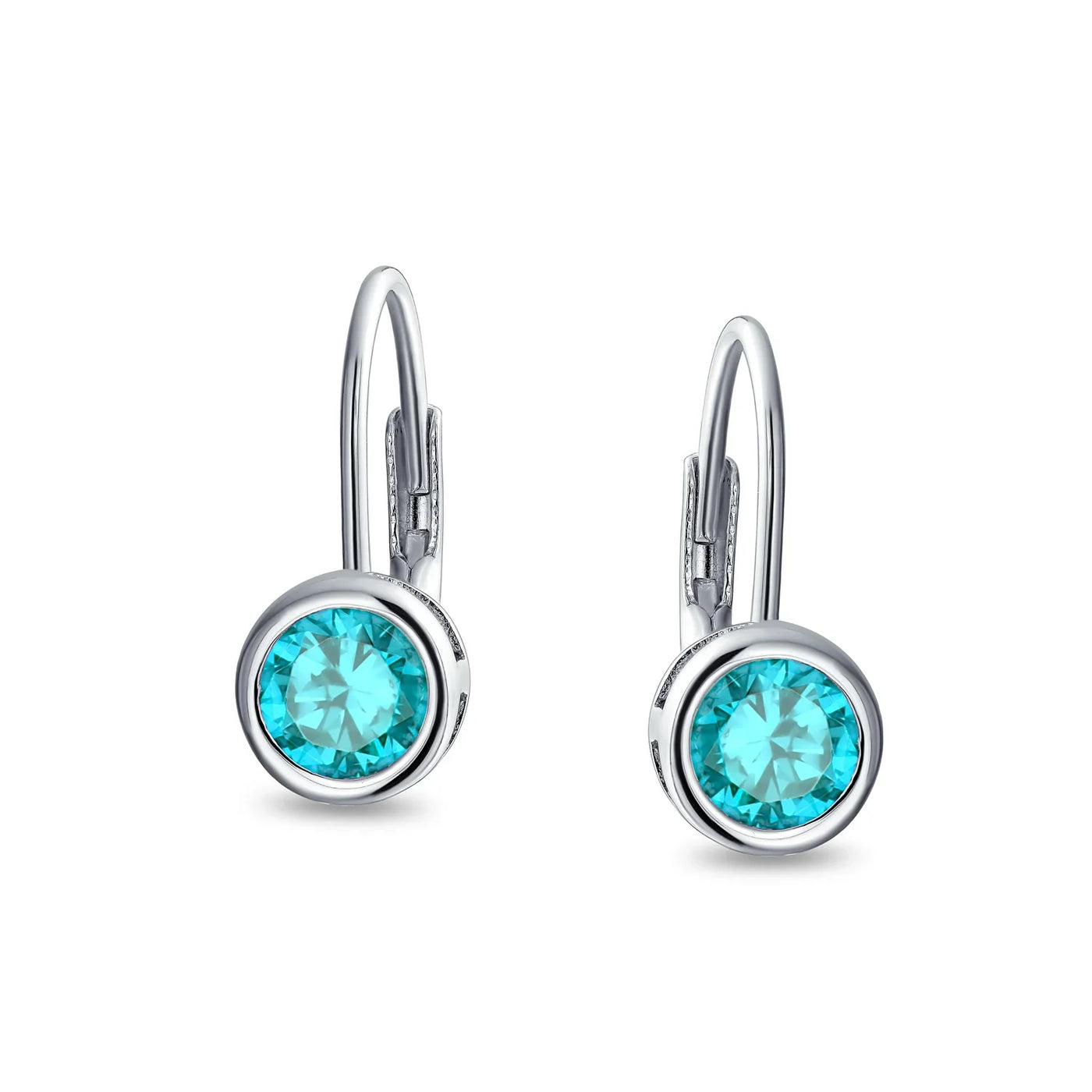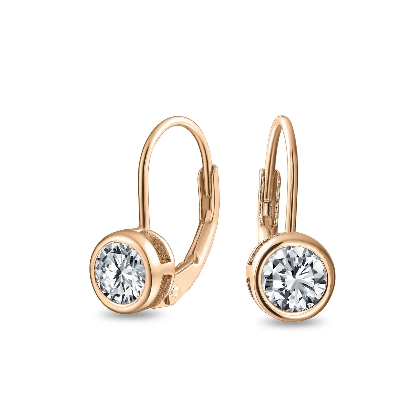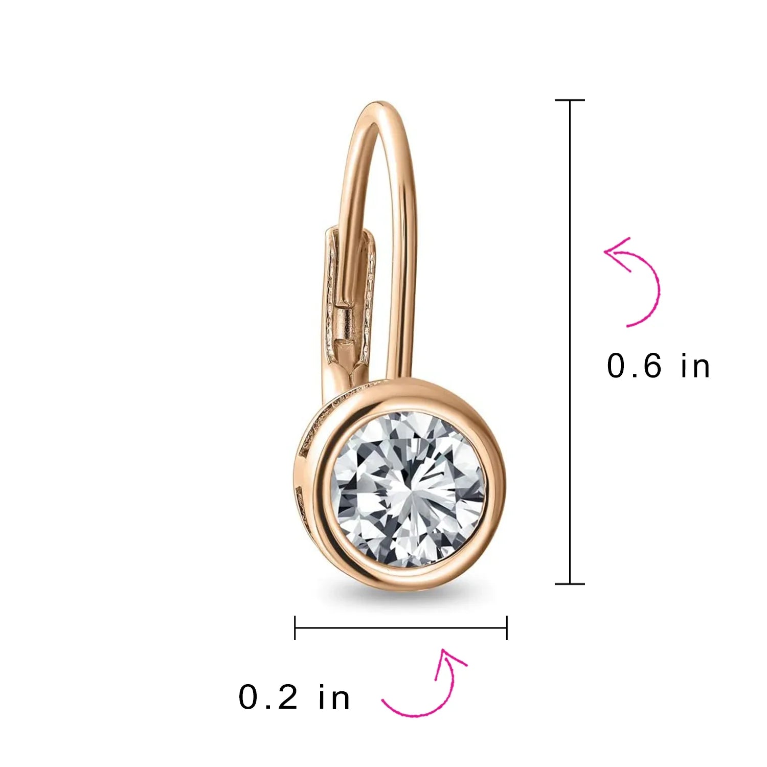 - A perfect choice for ladies who love to sparkle, our bezel lever back CZ drop earrings are a sensational accessory. Featuring a 5mm round clear cubic zirconia stone, these sterling silver earrings will make her shine. Affordable and stylish, these sterling silver round cut CZ lever back earrings are a must-have for fashionable women. Rhodium plated to resist tarnish, they maintain their shine for years. Add contemporary style to any outfit with these stunning cubic zirconia round earrings.