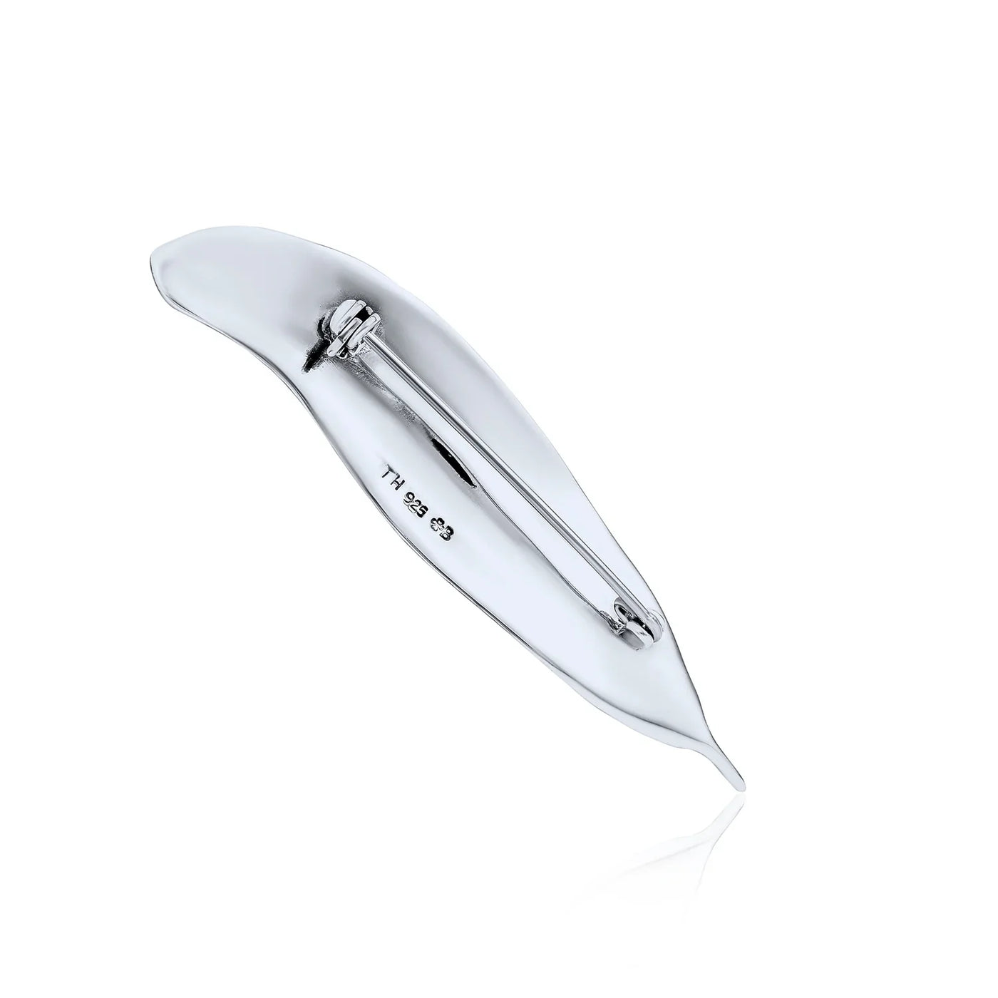 - Celebrate your love of nature with this stunning sterling silver leaf Brooch Pin. Perfect for fall, it makes an ideal gift. The gently curving design mimics a leaf blowing in the wind. Veins contrast beautifully with the polished mid rib. Pin it on your favorite sweater or blazer for year-round elegance. Enjoy a touch of nature's bounty.