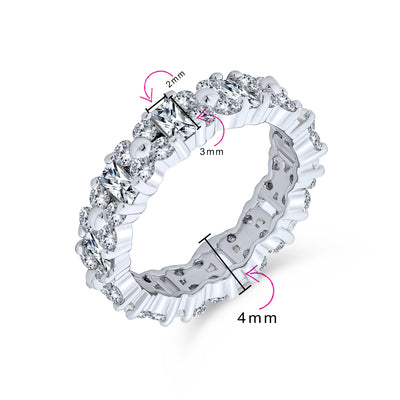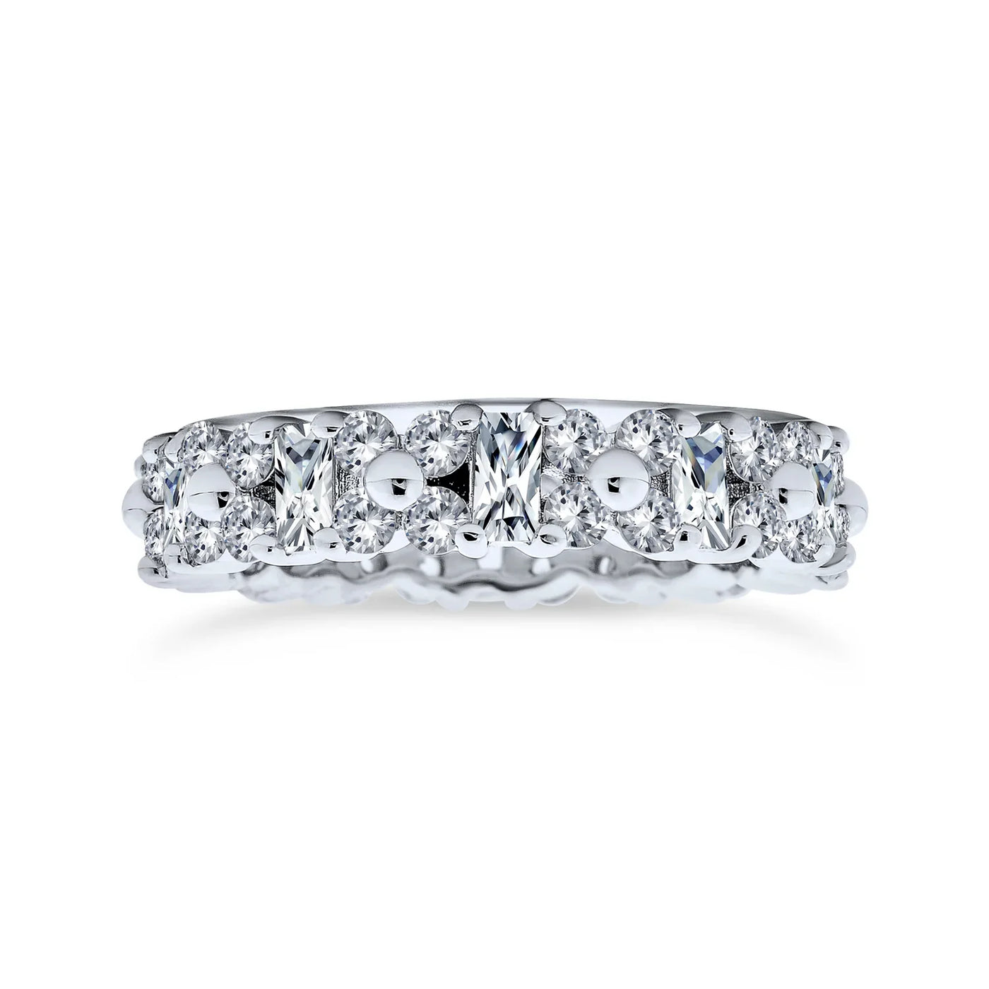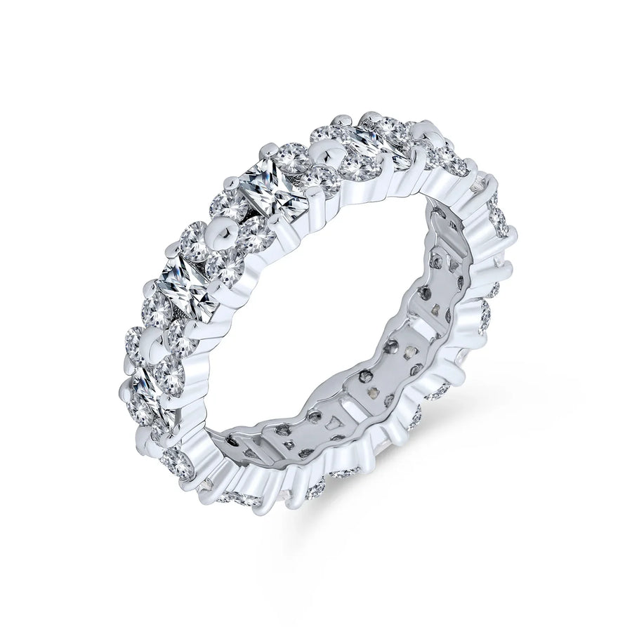 - Show your eternal love with our stunning eternity style Wedding Bands. This sterling silver ring features alternating cuts of sparkling CZ stones. The Emerald Cut and round cut stones add extra beauty to any outfit. Perfect for your big day, these rings make gorgeous Wedding Bands. Get one for your I Dos today.
