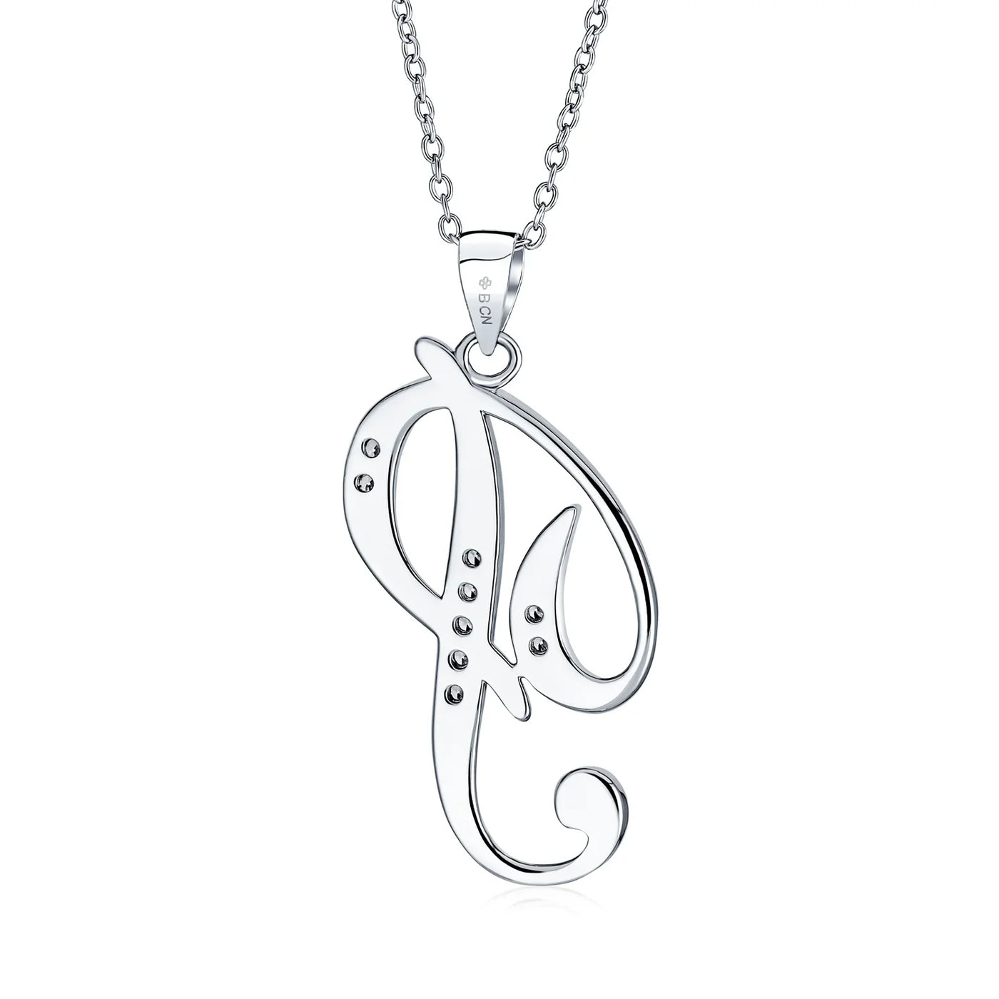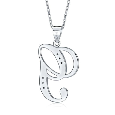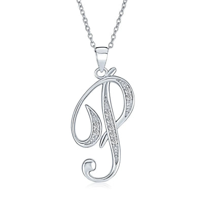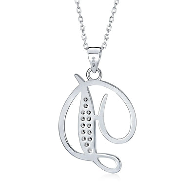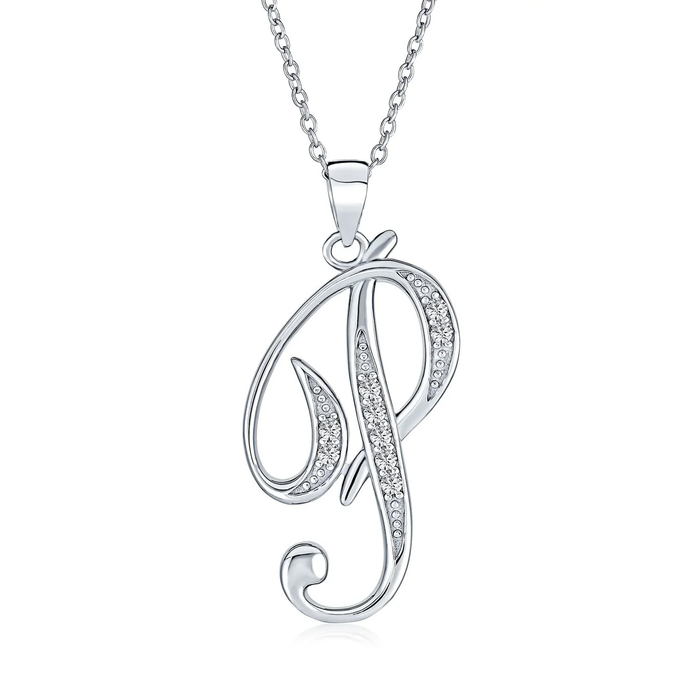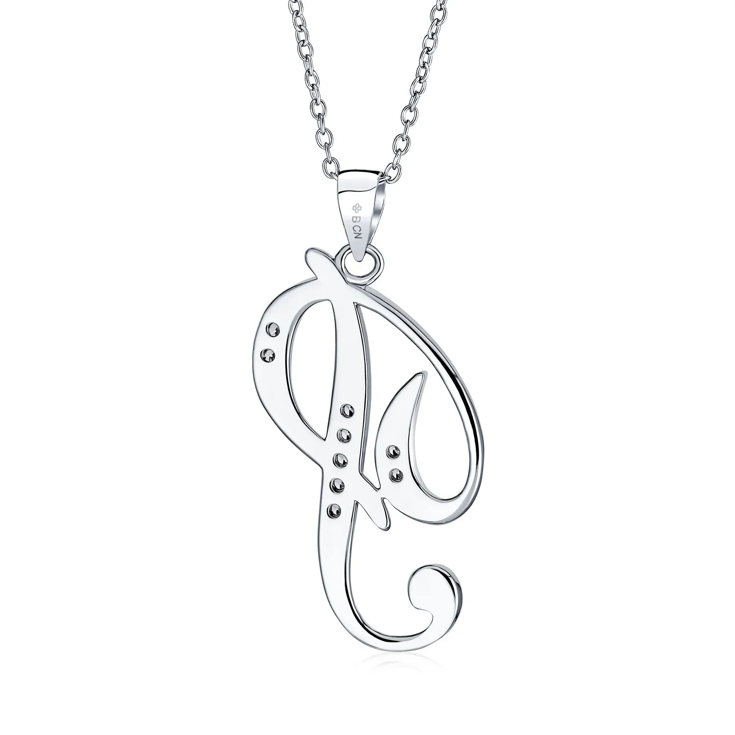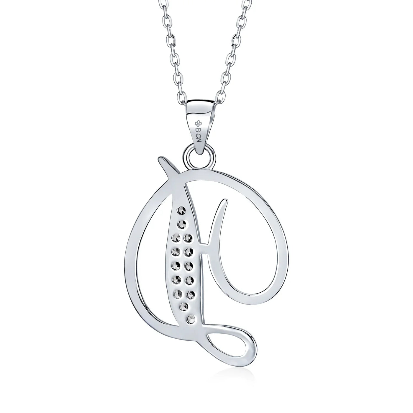 - This .925 Sterling Silver rhodium plated initial pendant sparkles with pave CZ stones, perfect for any occasion. Wear it casually or formally. Pair with other alphabet letters for a unique touch. Comes with a 16-inch chain, making it dangle beautifully. Ideal for birthdays, Mother's Day, or any special event. A stunning addition to any outfit and jewelry collection.