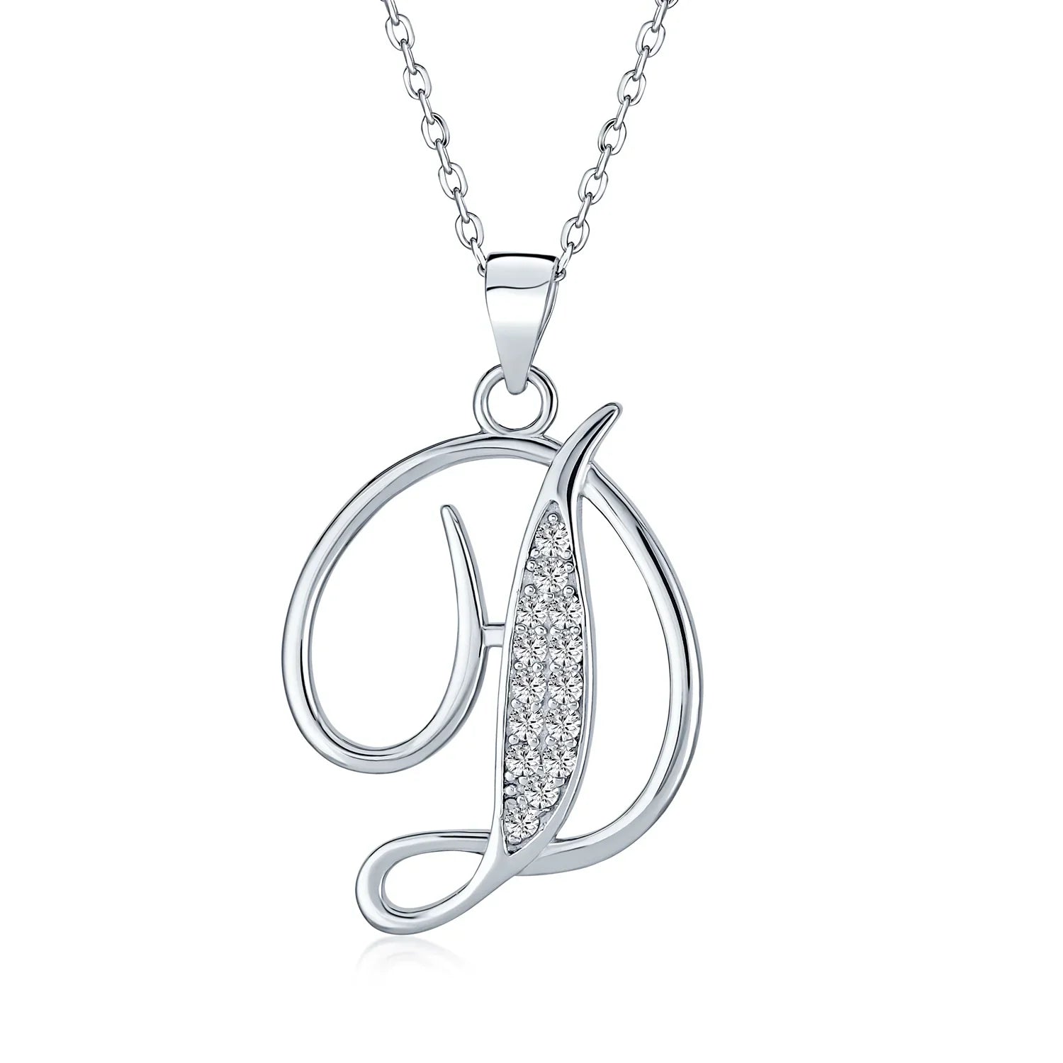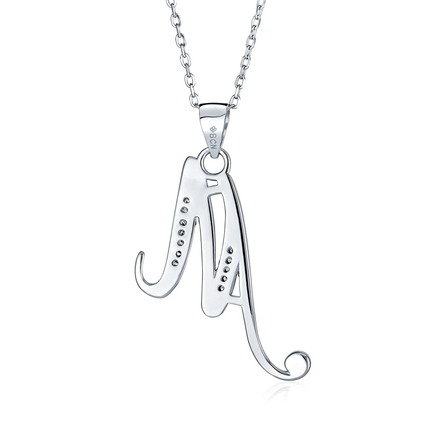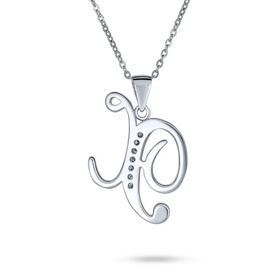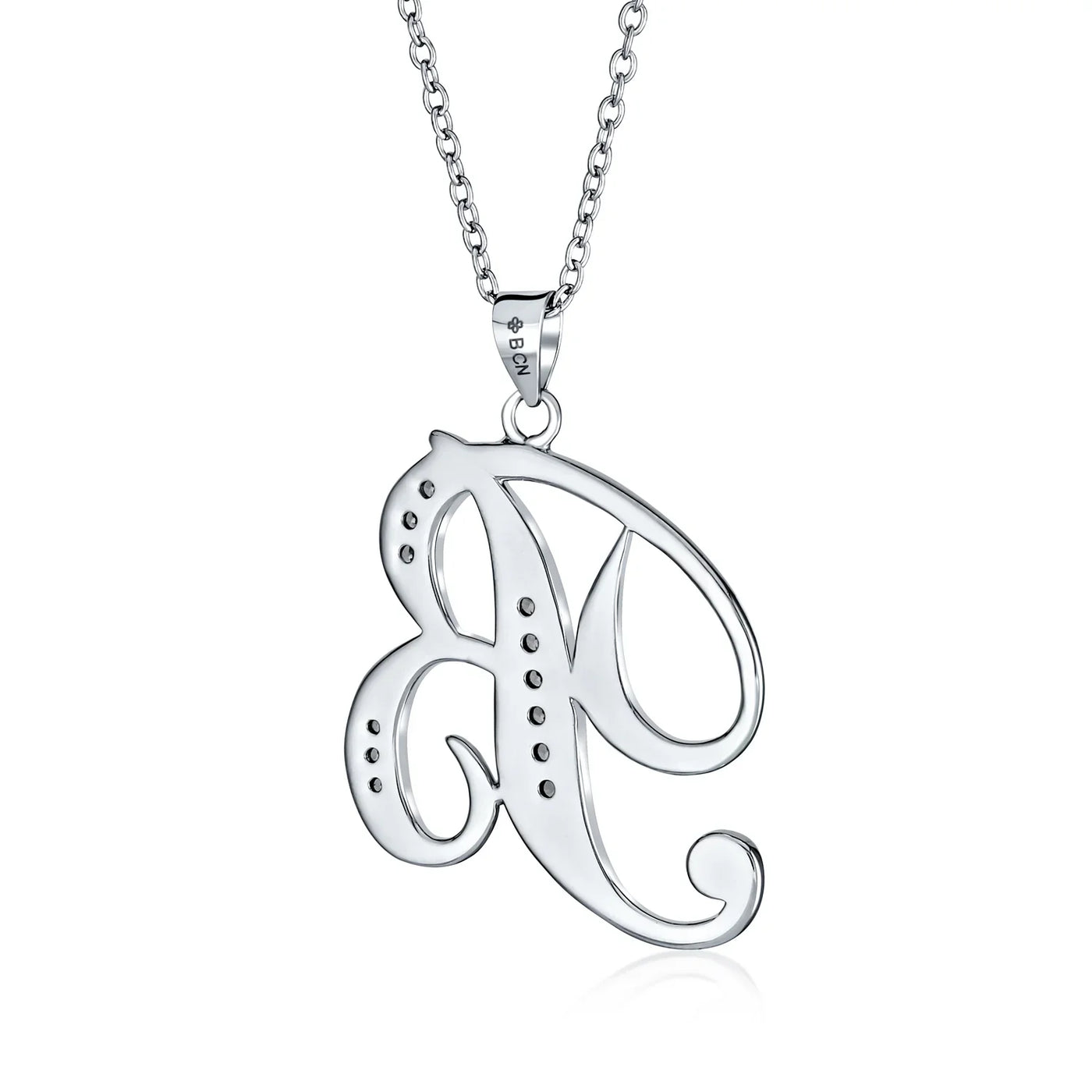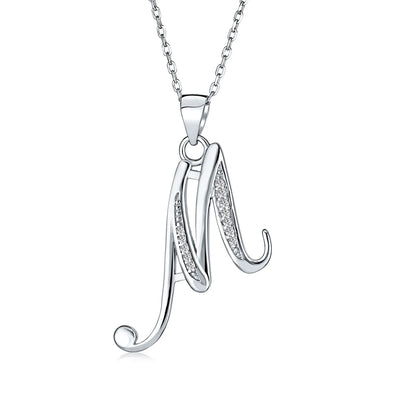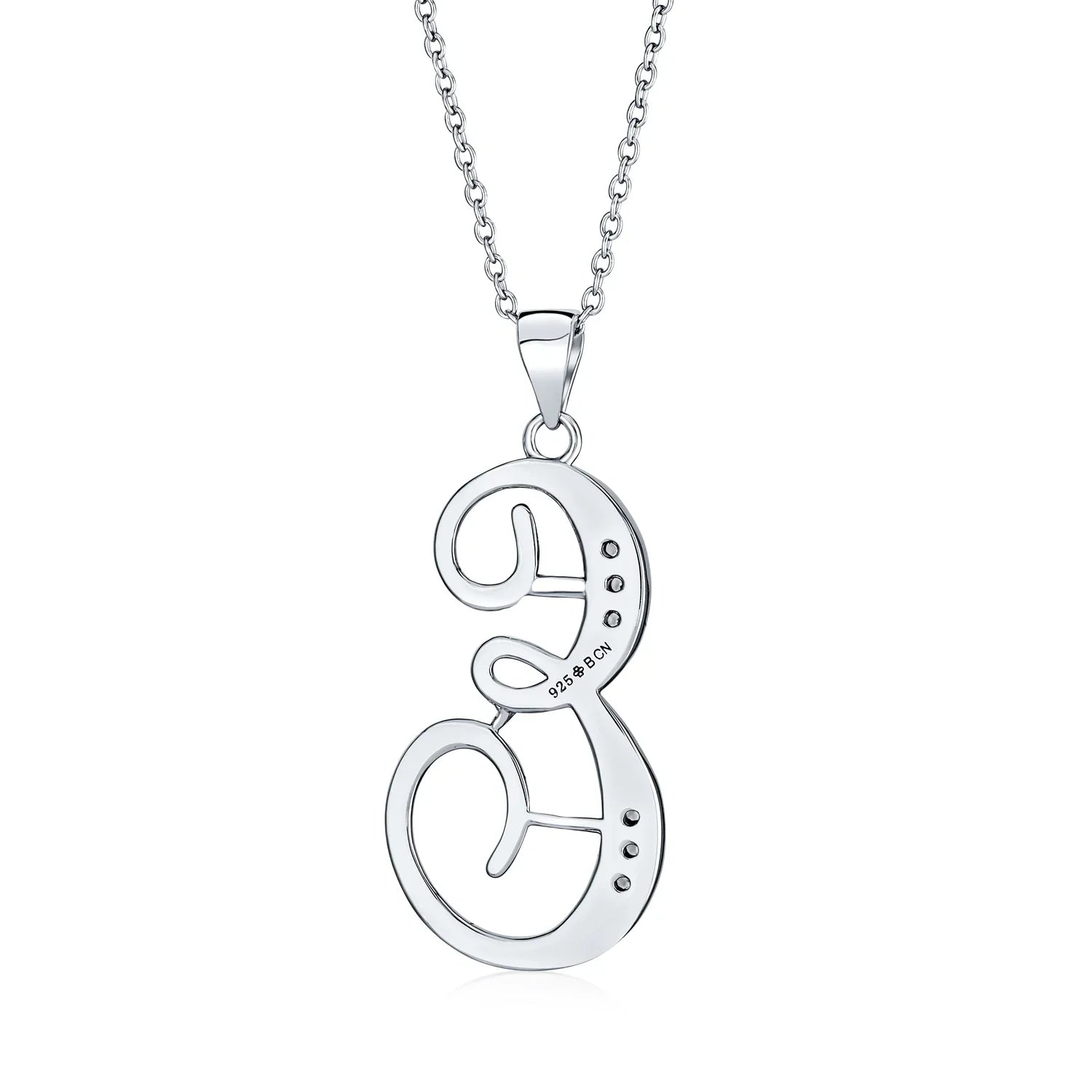 - This .925 Sterling Silver rhodium plated initial pendant sparkles with pave CZ stones, perfect for any occasion. Wear it casually or formally. Pair with other alphabet letters for a unique touch. Comes with a 16-inch chain, making it dangle beautifully. Ideal for birthdays, Mother's Day, or any special event. A stunning addition to any outfit and jewelry collection.