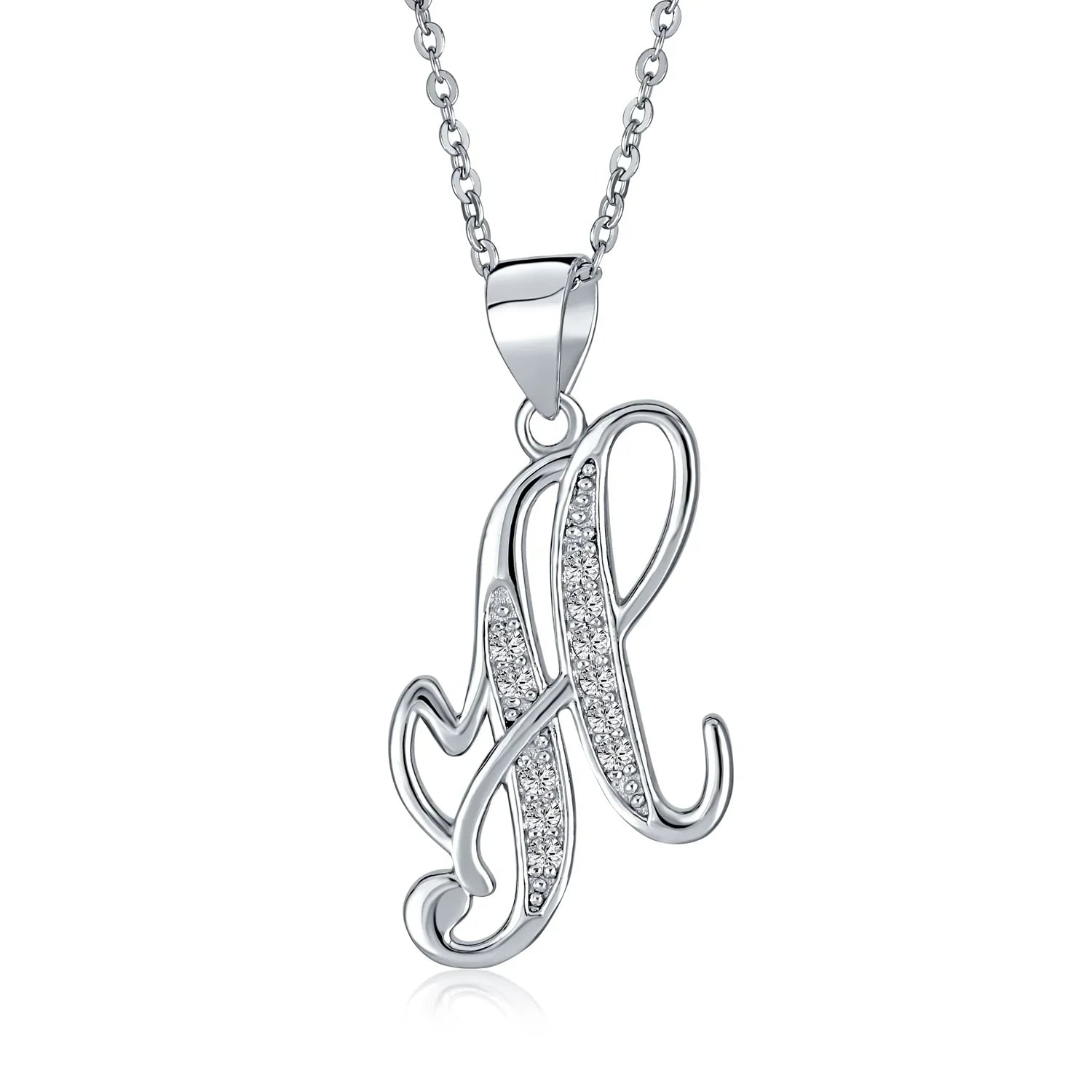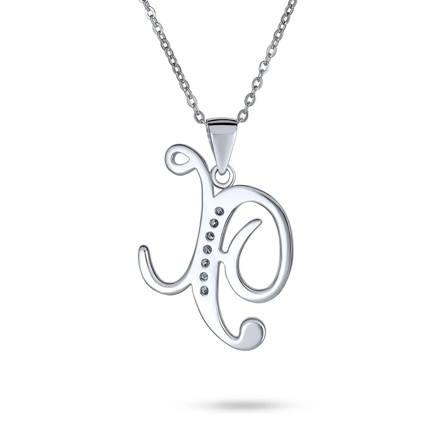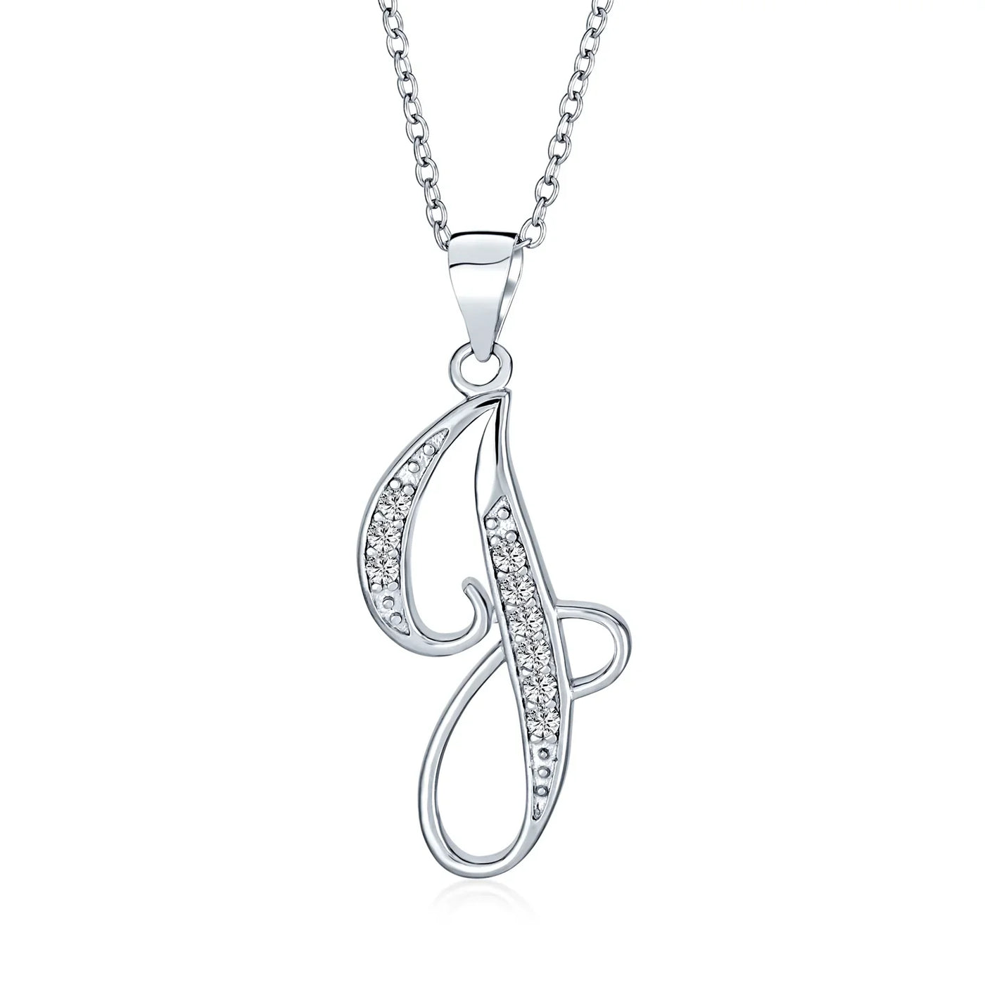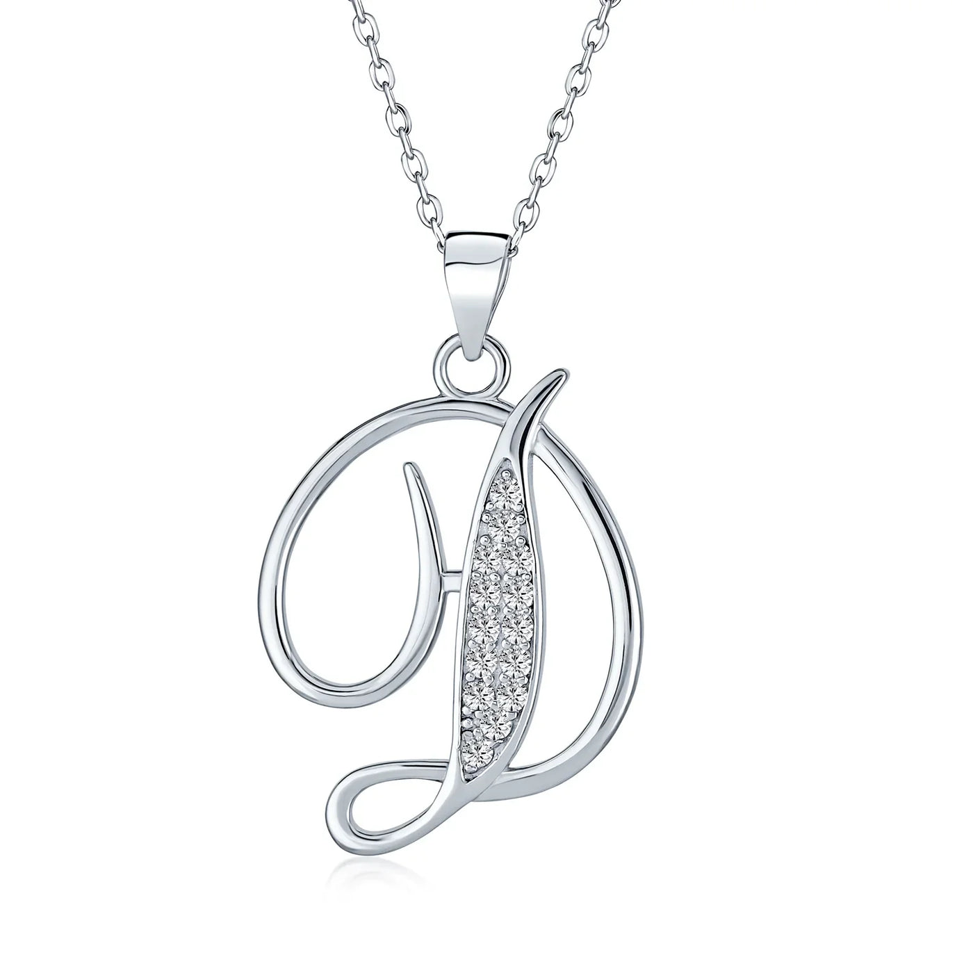 - This .925 Sterling Silver rhodium plated initial pendant sparkles with pave CZ stones, perfect for any occasion. Wear it casually or formally. Pair with other alphabet letters for a unique touch. Comes with a 16-inch chain, making it dangle beautifully. Ideal for birthdays, Mother's Day, or any special event. A stunning addition to any outfit and jewelry collection.